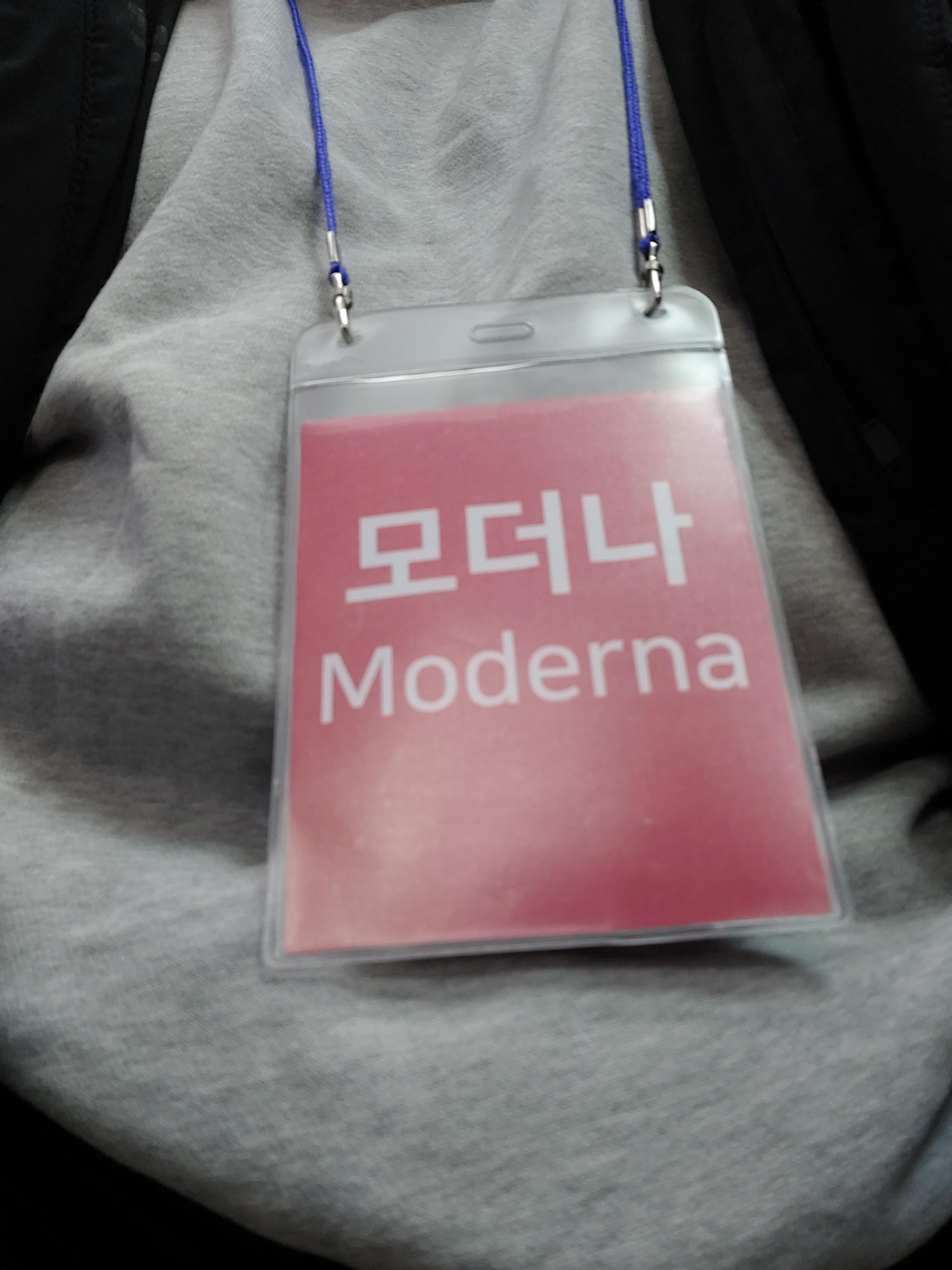 그리고 목걸이를 주시더라구요. 큰 병원이라서 그런지 화이자, 모더나 이런 목걸이를 주시더라구요. 1층에서 접수하고, 2층으로 올라와서 맞는 곳을 안내해주시는대로 따라가보았습니다.