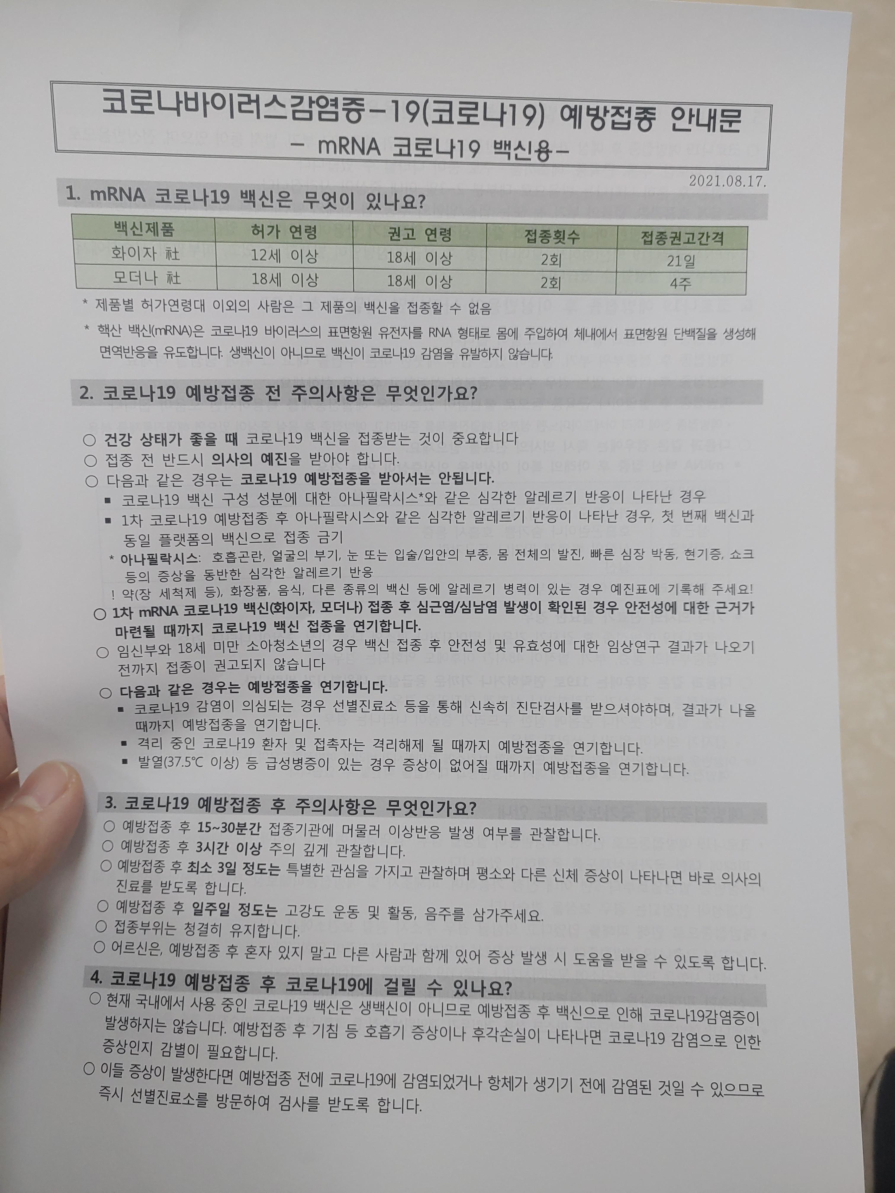 금방 끝나고 한 15~30분 정도 앞에 앉아서 경과를 보고 집에 가라고 하셔서 대기를 하다가 이제 집으로 와서 이렇게 간단하게 후기를 남겨보고 있는 상황입니다. 앉아있는 동안 특이사항은 없었는데 뭔가 얀센 때랑은 조금 다른 느낌이기도 했습니다. 특별히 뻐근하거나 열이 살짝 난다거나 하지는 않았지만 뭔가 느낌이 있는듯하게 없는듯한 그런 느낌이랄까요 ㅎㅎ 여튼 별다른 사항 없으니까 간호사 선생님께 말씀드리고 집으로 왔습니다.