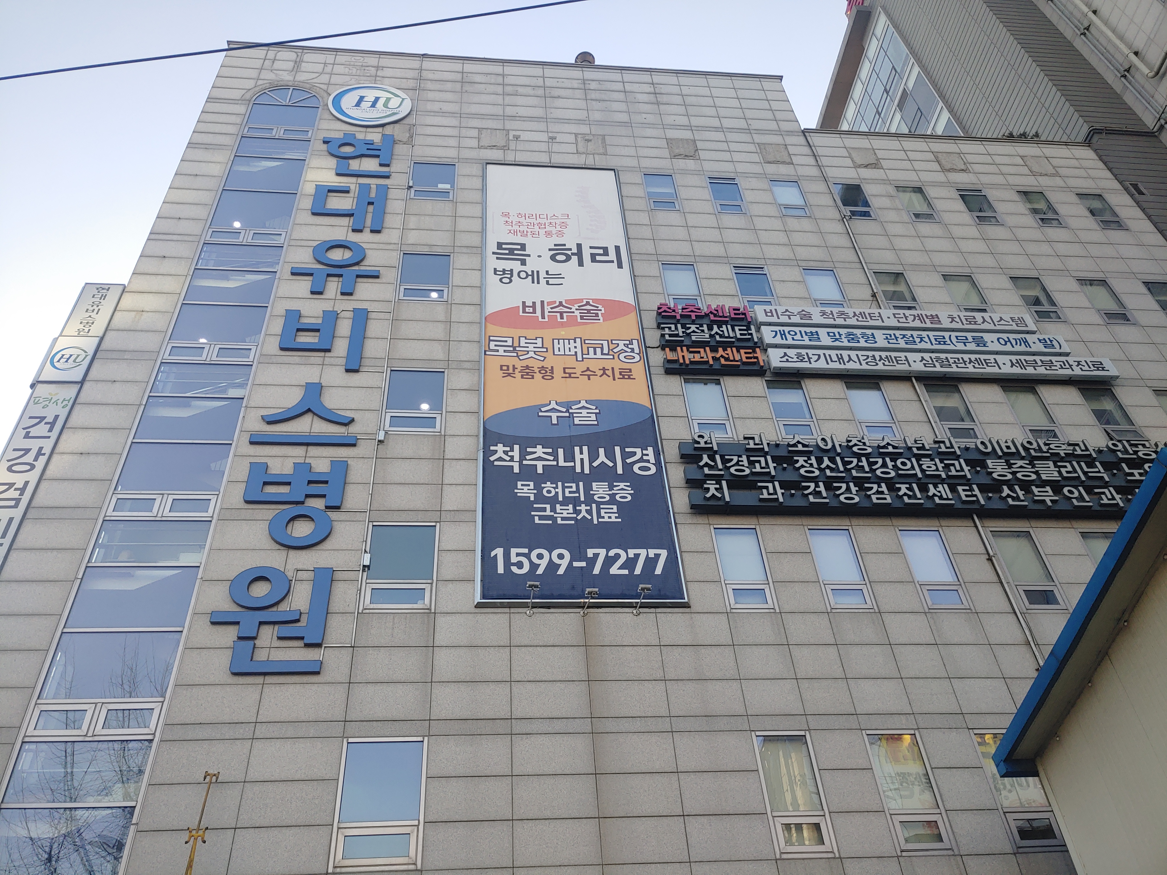현대유비스병원은 예전에 한두번 정도 와봤던 곳인데 이 근처에서는 꽤 큰 병원이에요. 병원은 따로 뭐 ㅎㅎ 딱히 잘 아는게 없기 떄문에 여기에서 백신 맞고 왔다 정도로 사진 남겨봤습니다.