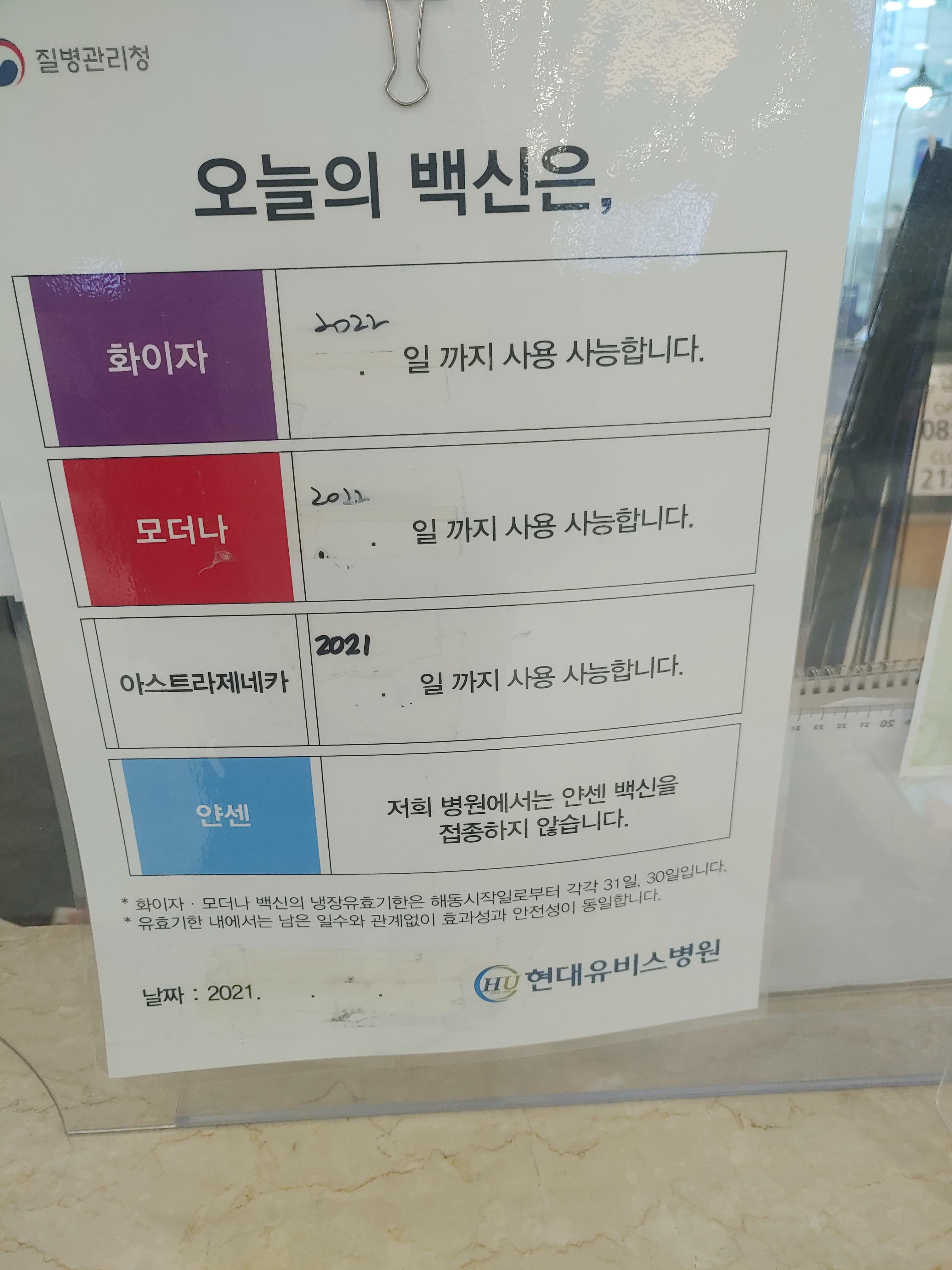 * 전화예약으로 현대유비스병원에서 얀센 부스터 샷 모더나 백신 후기