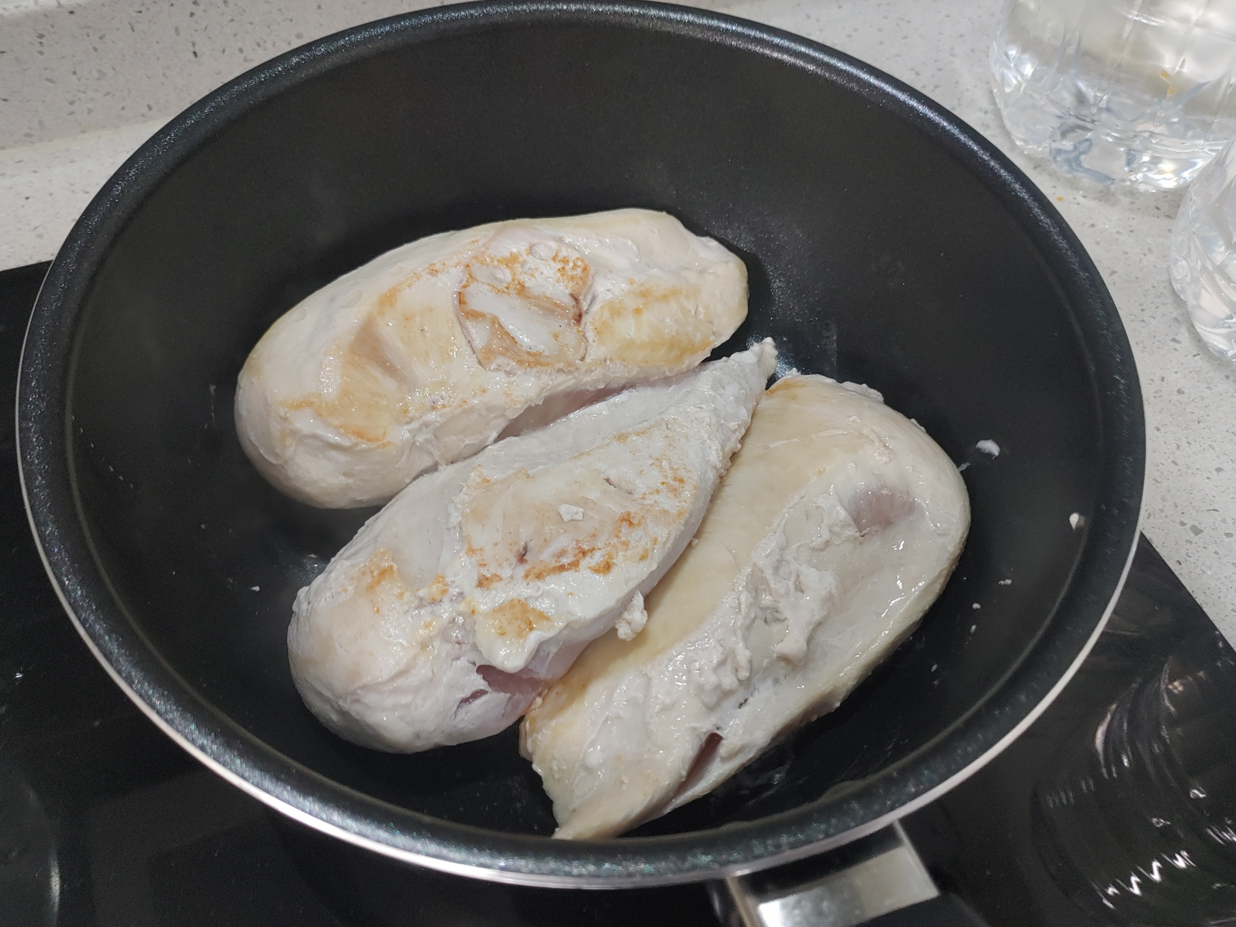 사실 닭가슴살을 이것저것 넣고 삶은 방법도 있는데요. 저는 개인적으로는 그냥 닭가슴살은 후라이팬에 구워서 먹는게 참 좋더라구요. 닭가슴살을 삶아 놓으면 다 못먹고 남은 닭가슴살은 나중에 냄새도 좀 나는 것 같고, 한번 차가워지면 다시 데워도 닭가슴살 특유의 비린맛이 느껴질 때도 있더라구요. 아무리 닭가슴살을 사랑하는 저라도 ㅎㅎ 그런 경우에는 먹기가 좀 힘들어서 요새는 닭가슴살을 해동해놓고 몇덩이씩 그냥 후라이팬에 구워서 먹고는 해요.