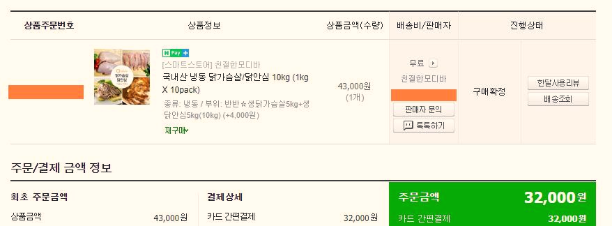 제가 개인적으로 자주 네이버에서 주문을 하는 모디바라는 곳이에요. 원래 닭가슴살은 훈제가 되어 있는 것으로 주문을 해서 먹고는 했는데, 생각을 해보니까 냉동으로 사서 챙겨놓는게 가성비로는 훨씬 좋더라구요. 보니까 이렇게 금액 딱보시는대로 ㅎㅎ 냉동닭가슴살 5kg와 냉동 닭안심살 5kg를 섞어서 10kg를 하면 3만2천원밖에 안되거든요.