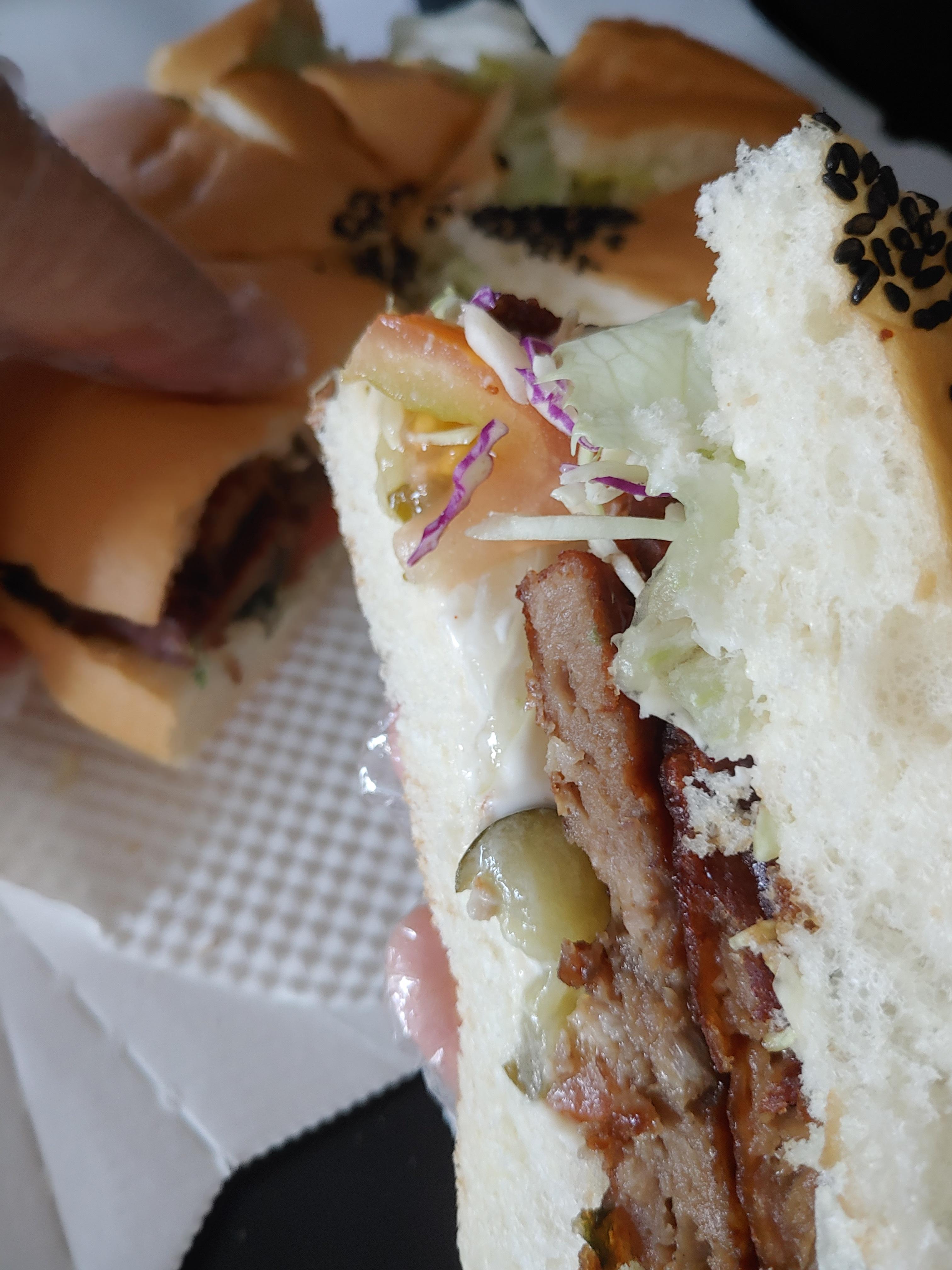 마지막으로 야채들은 양상추와 양배추들 그리고 피클, 토마토 이런 것들이 있는데 크게 감흥이 다가오지는 않았어요 ㅎㅎ 소스도 마찬가지로 패티의 맛을 조금 살짝 살려주는? 그런 부담없는 스타일이고 담백하고 고소한 맛의 패티가 정말 맛이 괜찮았던 것 같습니다. 다만 가격은 먹으면서도 좀 후덜덜하다 싶기는 하더라구요 ^^;;;