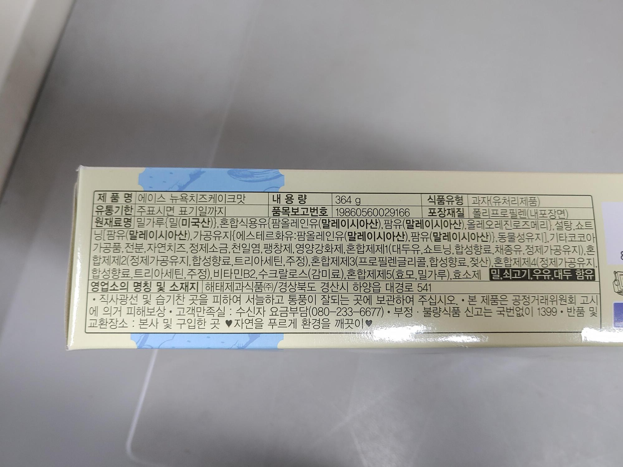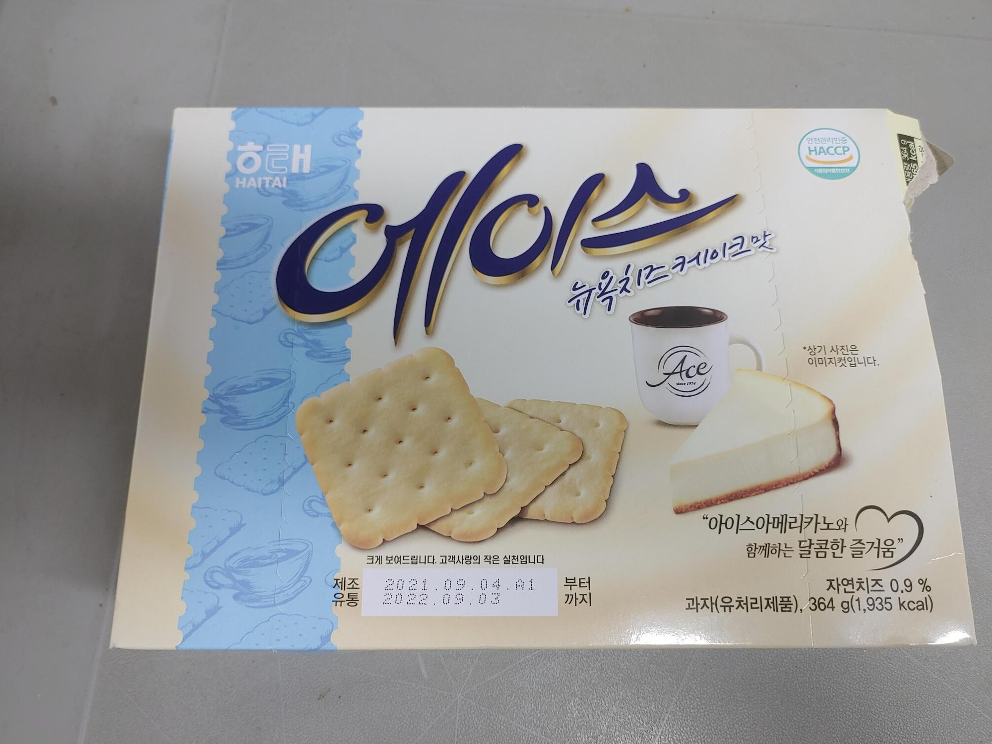 해태제과에서 나오는 에이스뉴욕치즈케이크맛인데요. 여러가지 재료들이 들어가는 것을 볼 수 있습니다. 기존 에이스에 자연치즈가 조금 추가되는 것 같더라구요.