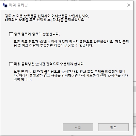 3) 프린터 노즐 청소 파워클리닝 진행