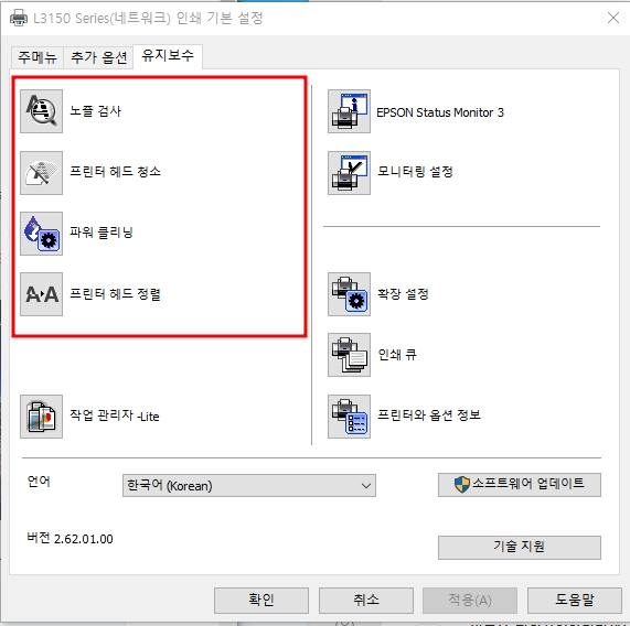 3. 프린터 노즐 청소 하기 : L3156 앱손 무한잉크 노즐막힘 해결 후기