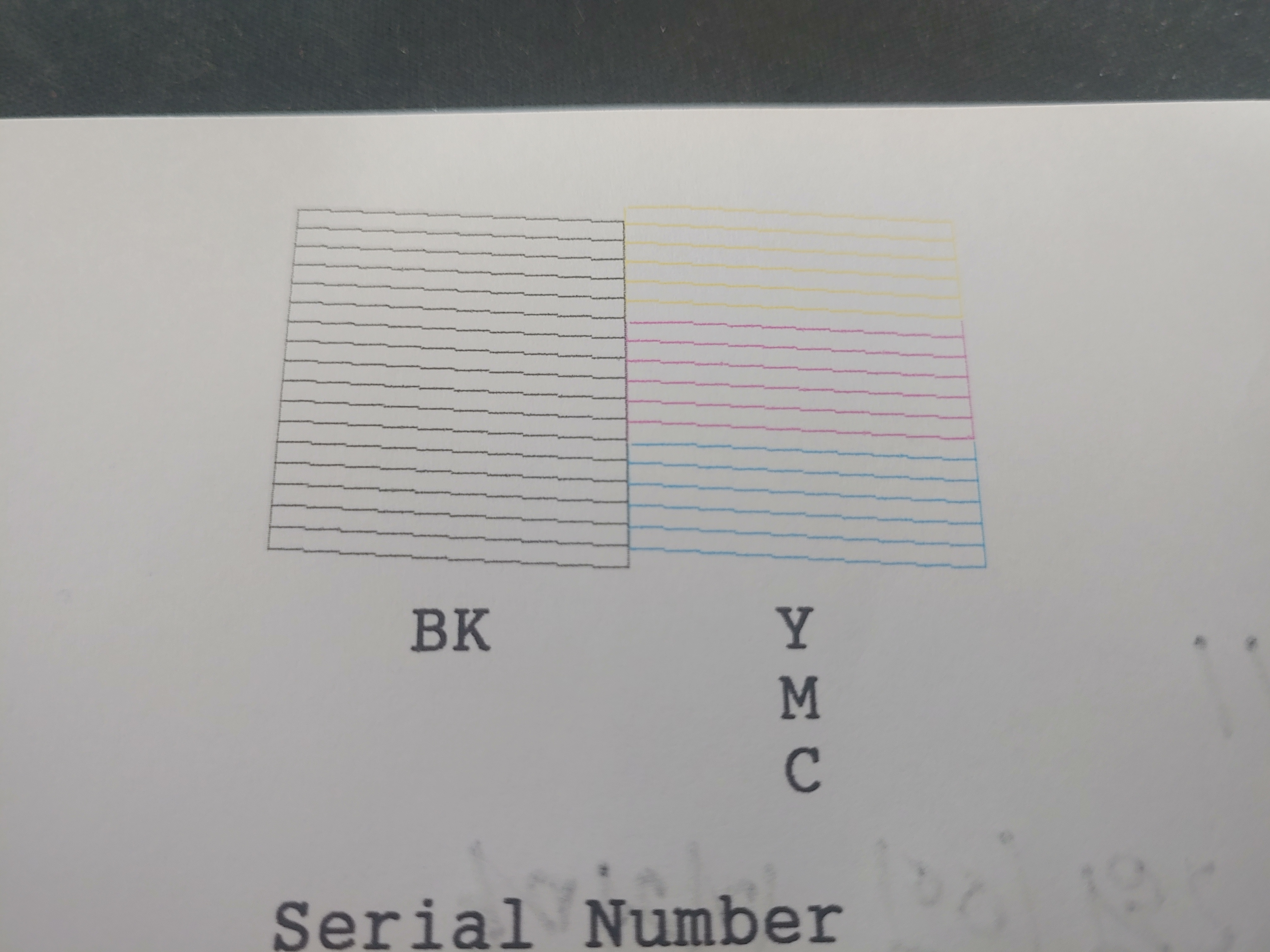 노즐검사를 진행하기 위해 인쇄버튼을 누르면 종이에 아래와 같이 인쇄가 되는 모습을 볼 수 있습니다.