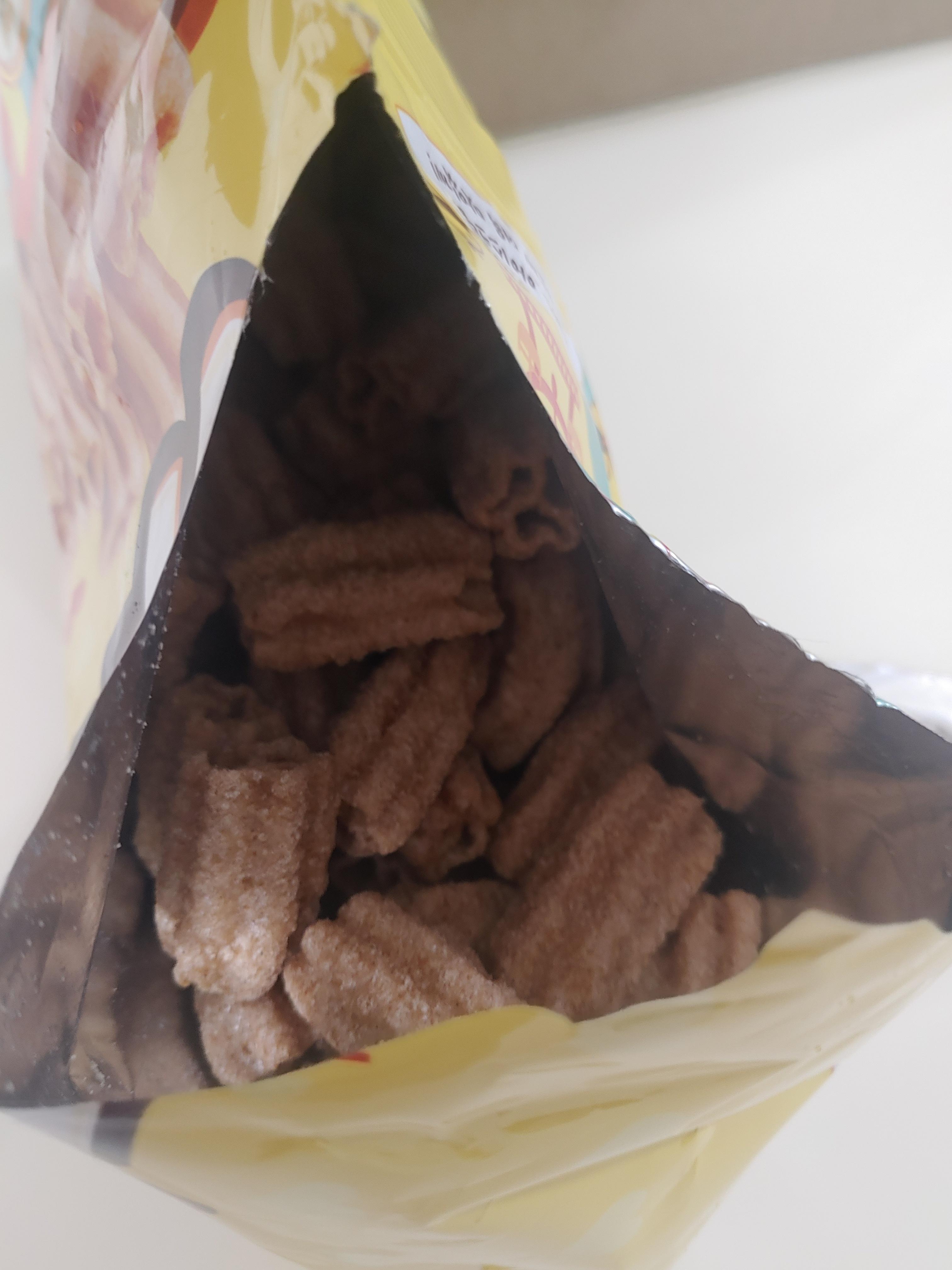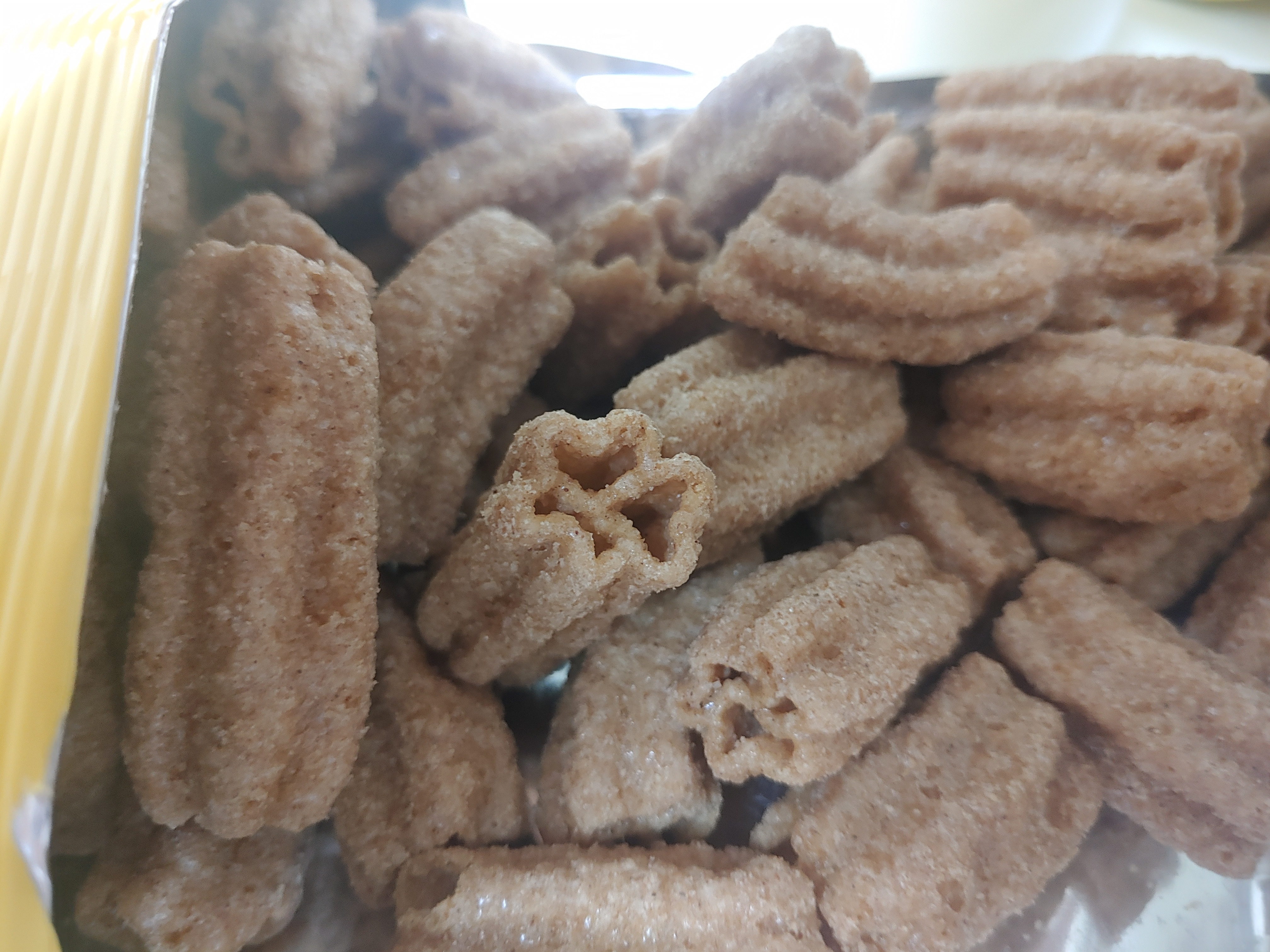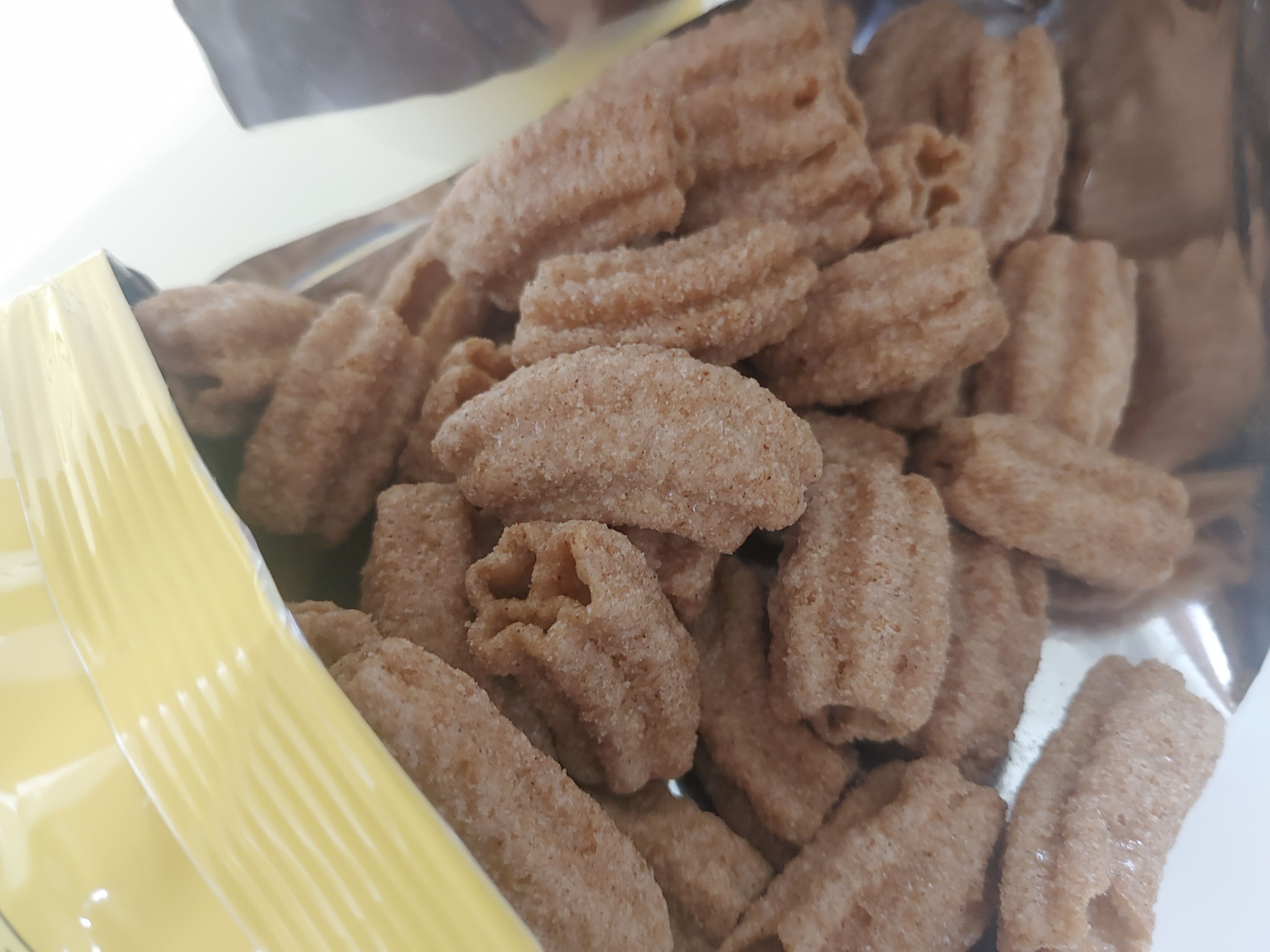 일단 츄러스 과자는 상당히 특색이 있는데요. 딱 봉투를 열면 정말 향이 장난 아니에요. 뭔가 시나몬 향의 향긋한 그런 특유의 향이 확 나구요. 그리고 달달함이 엄청 커요. 진짜 달다!! 생각이 딱 드는 과자에요. 그리고 약간 과자 짱구 같은 그런 느낌도 살짝 있기도 하구요. 약간 빵으로 된 원래 츄러스를 먹는 느낌도 살짝 있는 것 같으면서 많이 또 다른 느낌으로 다가오는 과자라고 말씀드릴 수 있을 것 같습니다.