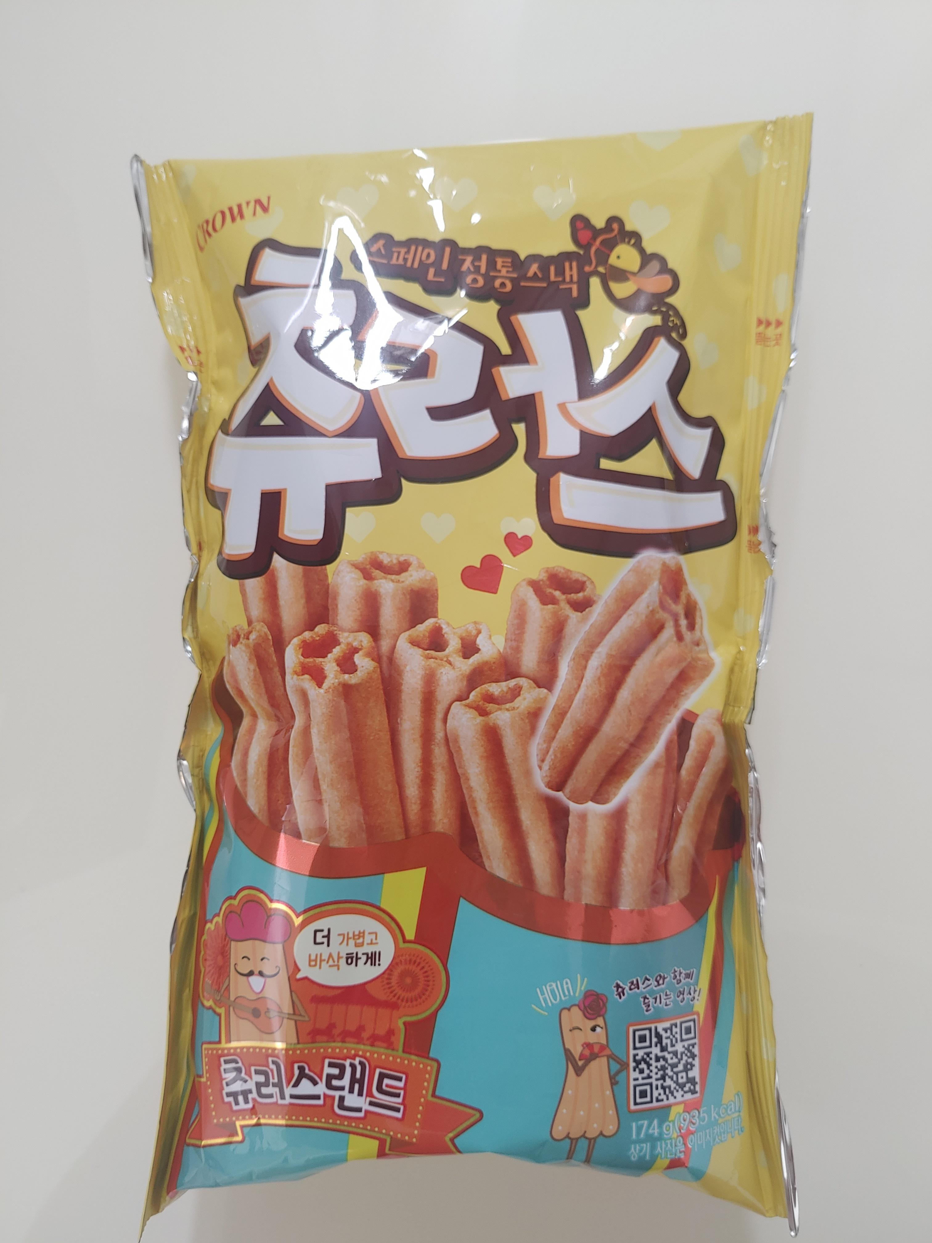 개인적으로 달달한 과자가 생각나면 꼭 생각나는 과자가 있어요. 바로 크라운에서 나오는 스페인 정통스낵 츄러스라고 하는 과자인데요!! 몰론 길쭉하게 튀긴 빵 자체의 그 츄러스는 아니지만 과자로 나온 츄러스 과자에요. 개인적으로 일단 시나몬 맛과 그 특유의 향이 너무너무 좋더라구요. 그리고 달달한 그런 맛이라서 그런지 쭉쭉 들어가는 그런 과자라서 한번 최애과자로 꼽아봤습니다.
