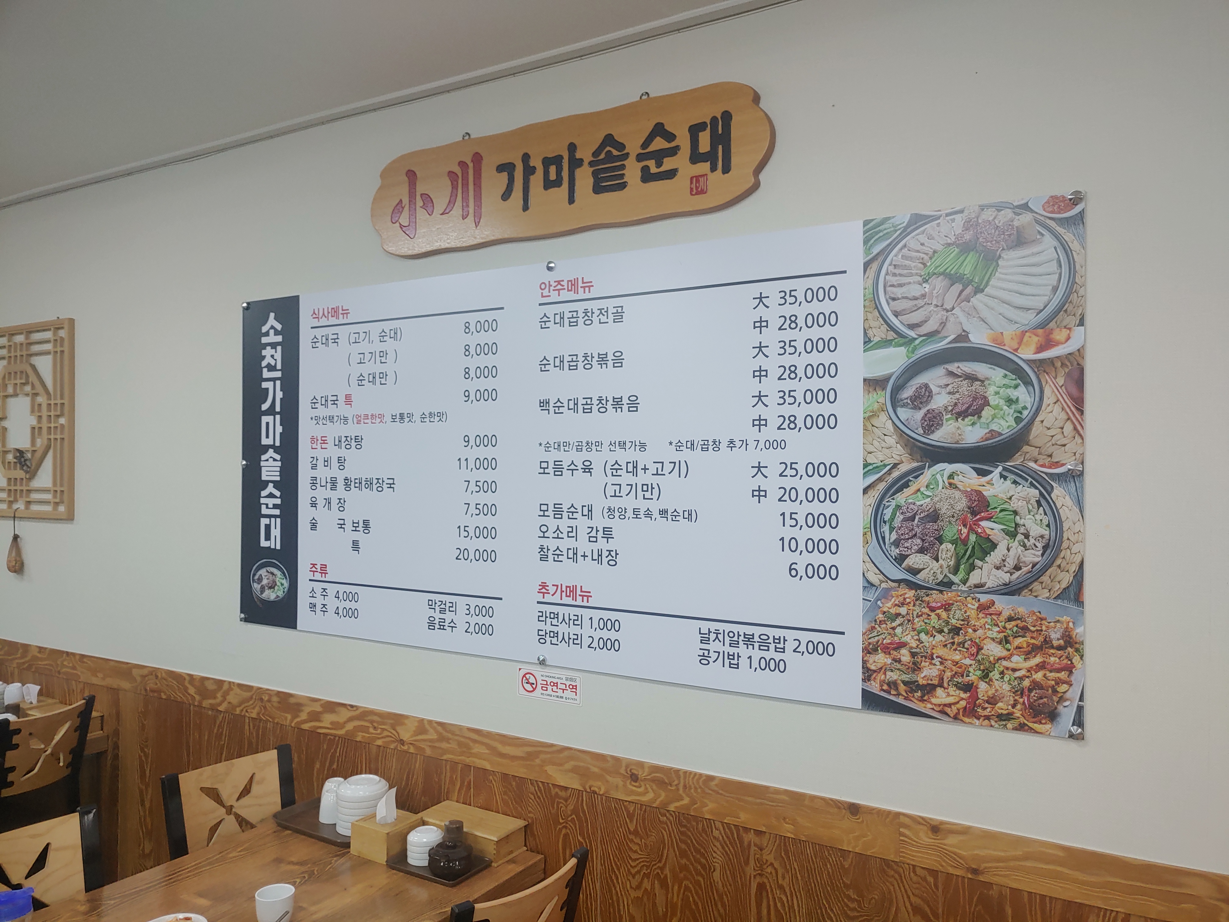 소천 가마솥 순대는 순대국 8천원 정도, 고기만/순대만도 선택가능하구요. 순대국 특은 9천원이었습니다. 그외에 곱창전골부터 순대곱창볶음등 메뉴들도 있고, 모듬수육과 모듬순대 (청양, 토속, 백순대) 등이 있었는데요. 이번에 가져온 것은 특순새국과 모듬순대였어요!!