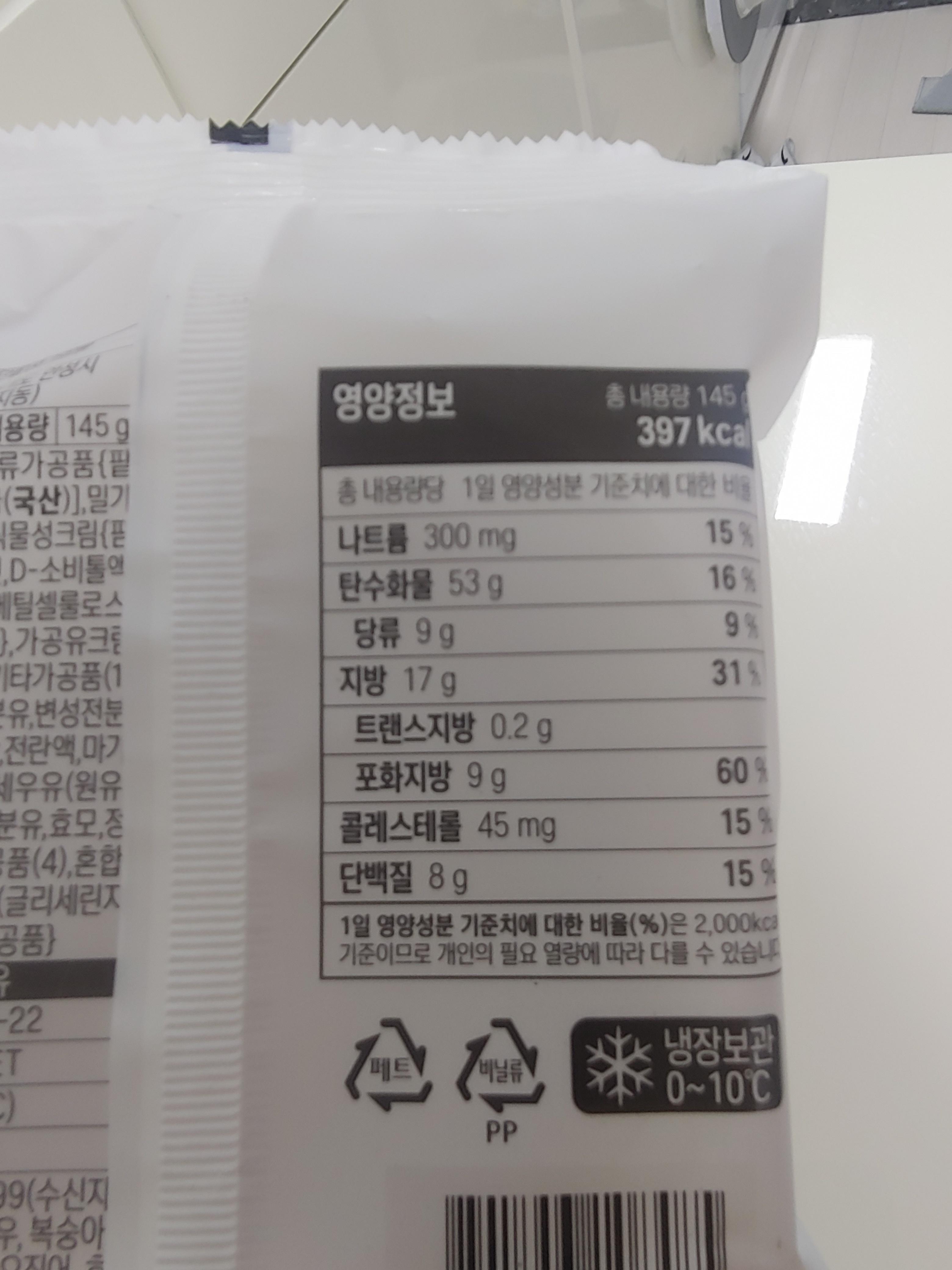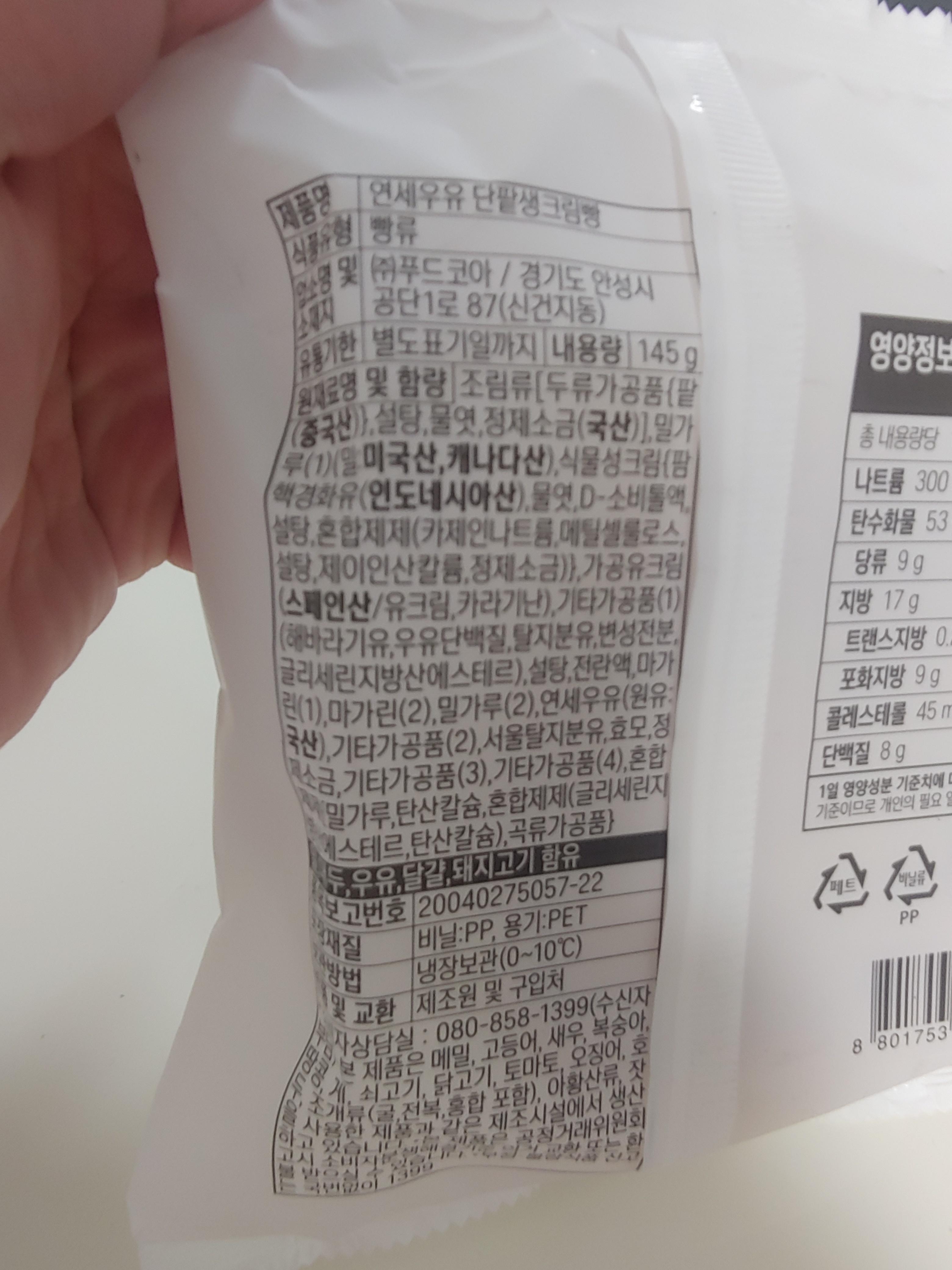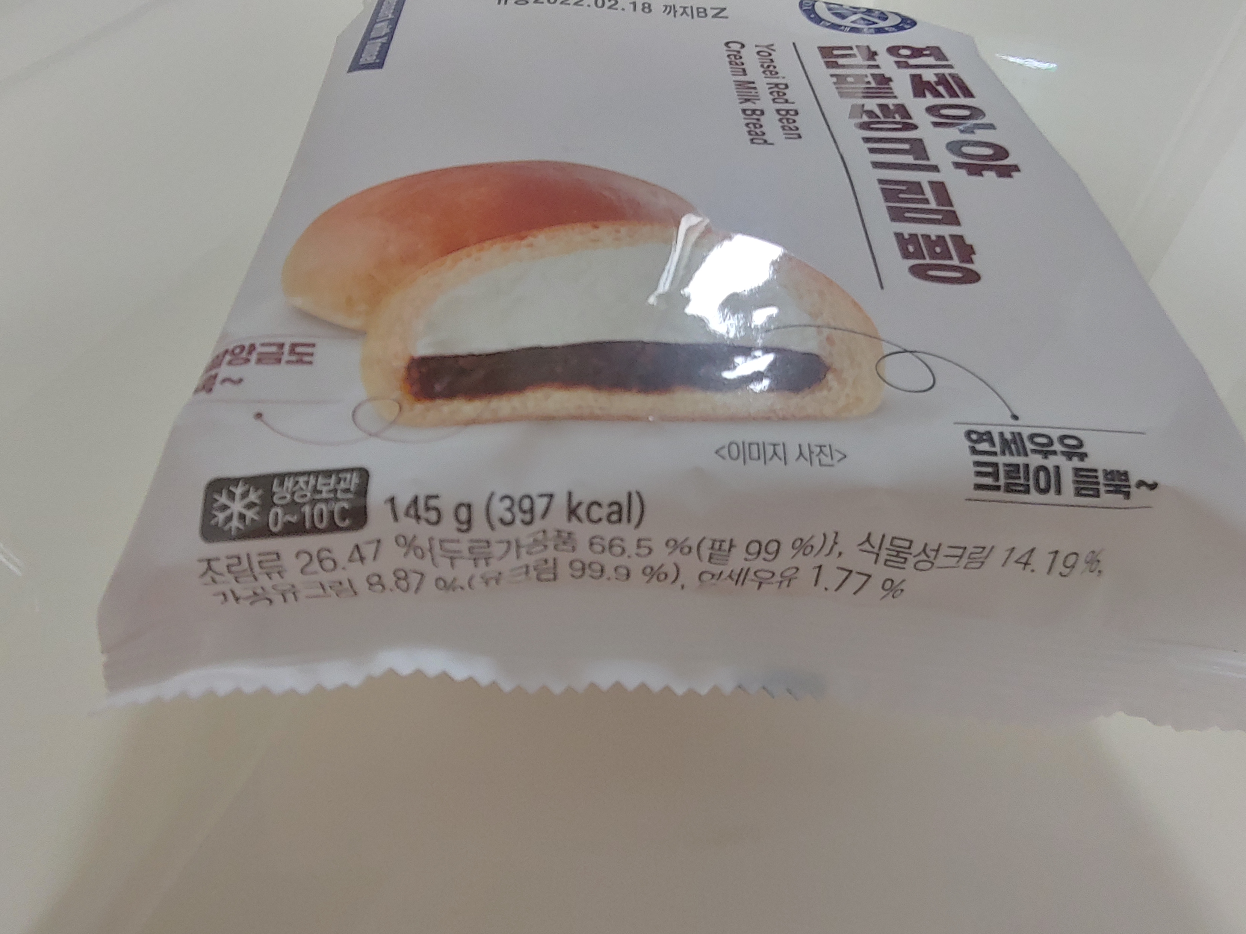 칼로리는 145g 에 397kcal 로 칼로리는 꽤 있는 편이구요. 팥과 생크림으로 구성된 빵이라고 보시면 될 것 같습니다.