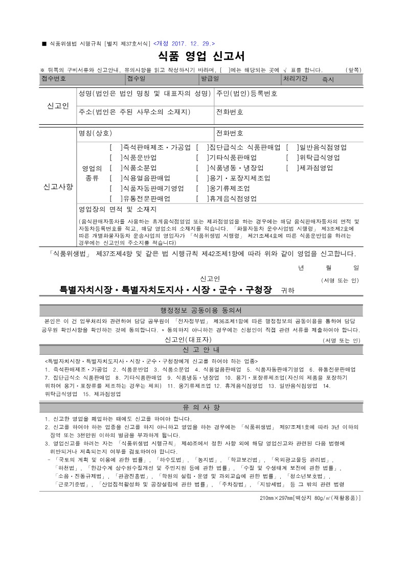 * 식품영업신고서