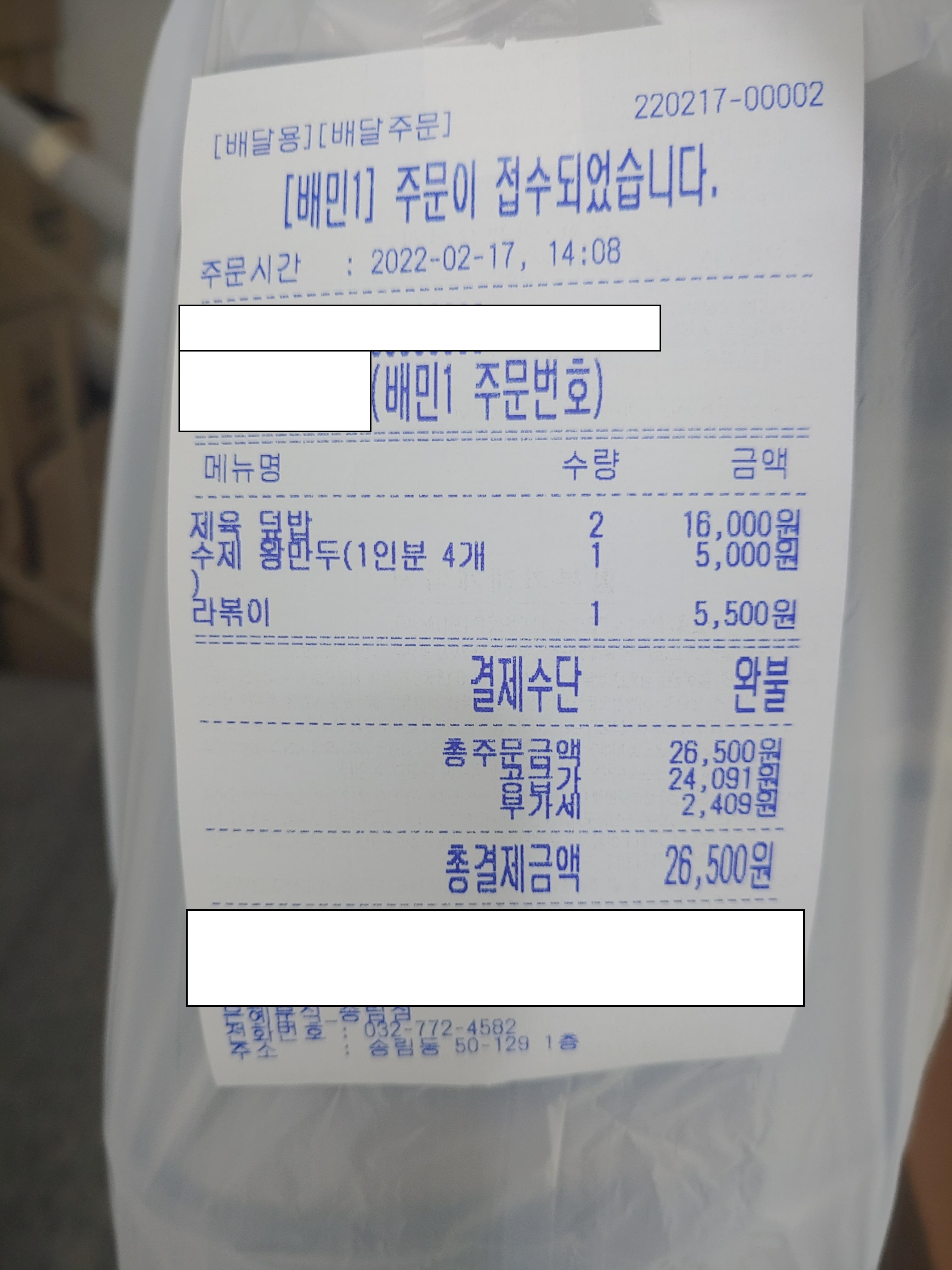 송림동에서 꽤 거리가 있는 곳으로 주문을 했는데도 배민1 이라서 그런지 엄청 따뜻하고 금방 도착을 했습니다. 개인적으로 배민1도 나름 괜찮구나 생각은 했는데 사실 배달팁이 요새 좀 부담되는 경우들이 좀 있었는데요. 오히려 덮밥맛집 은혜분식은 꽤 배달비도 저렴하고 좋더라구요.