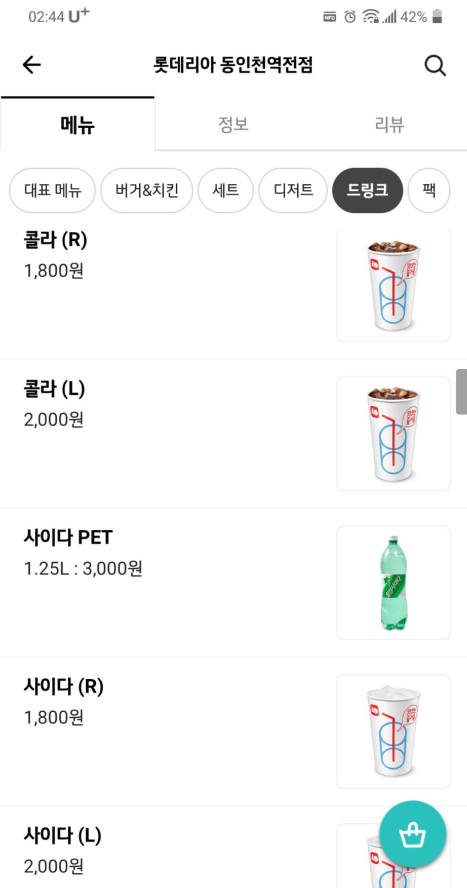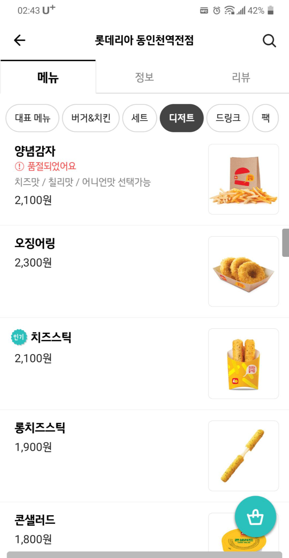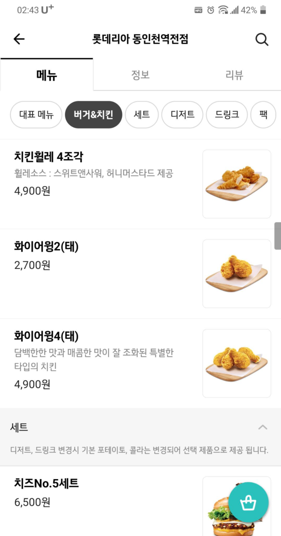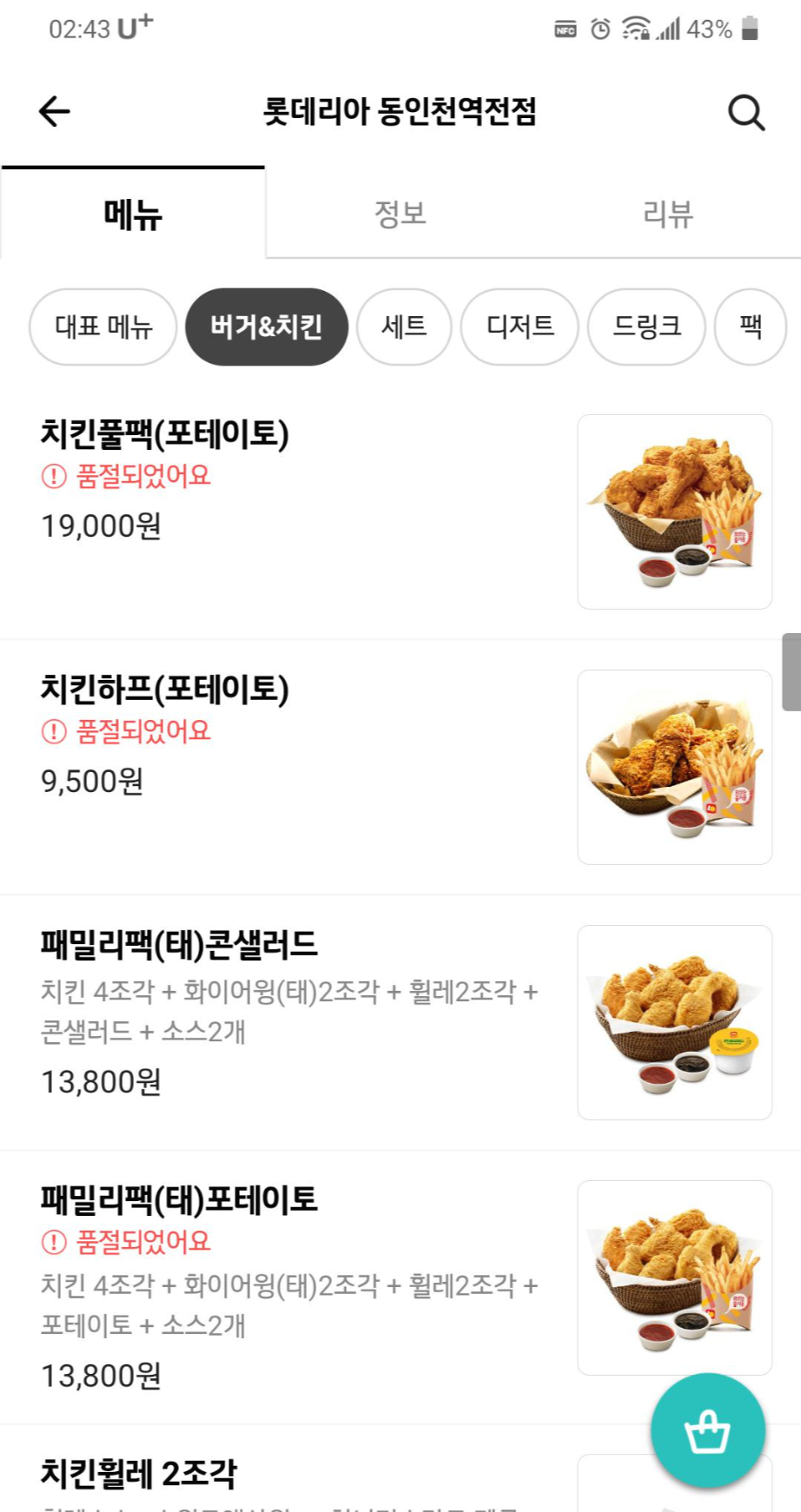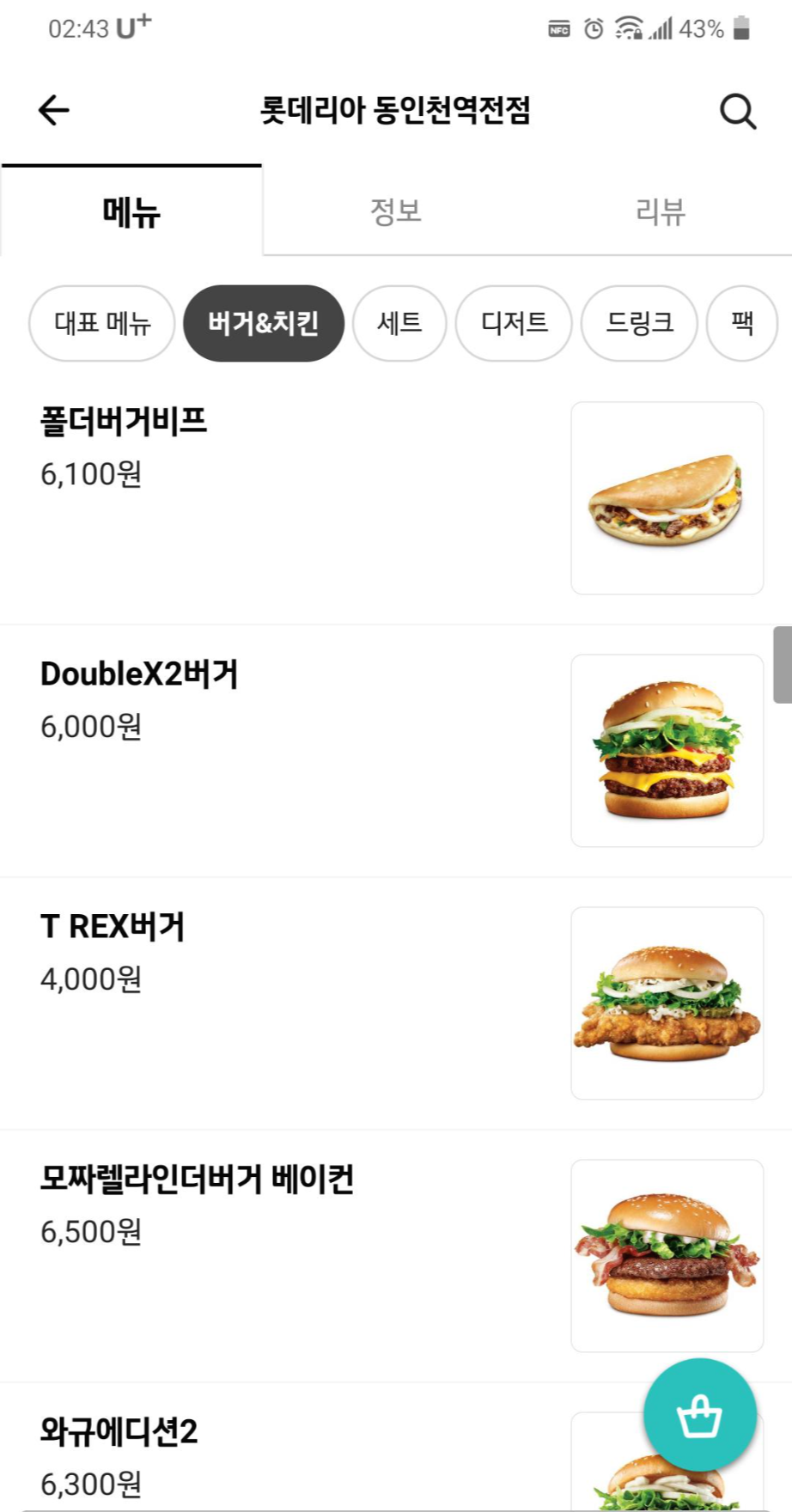 * 배민 동인천 롯데리아 정보와 메뉴