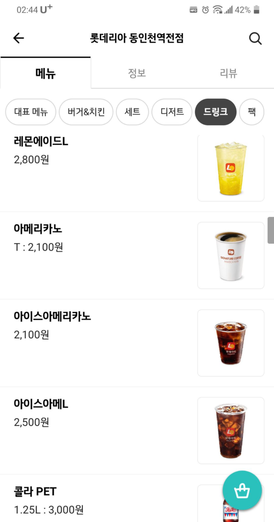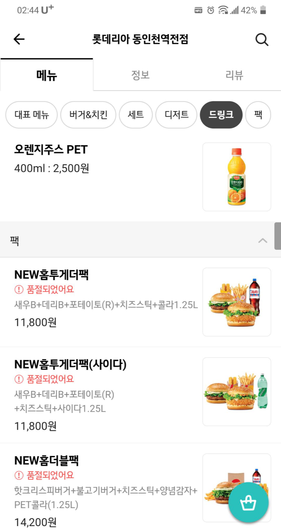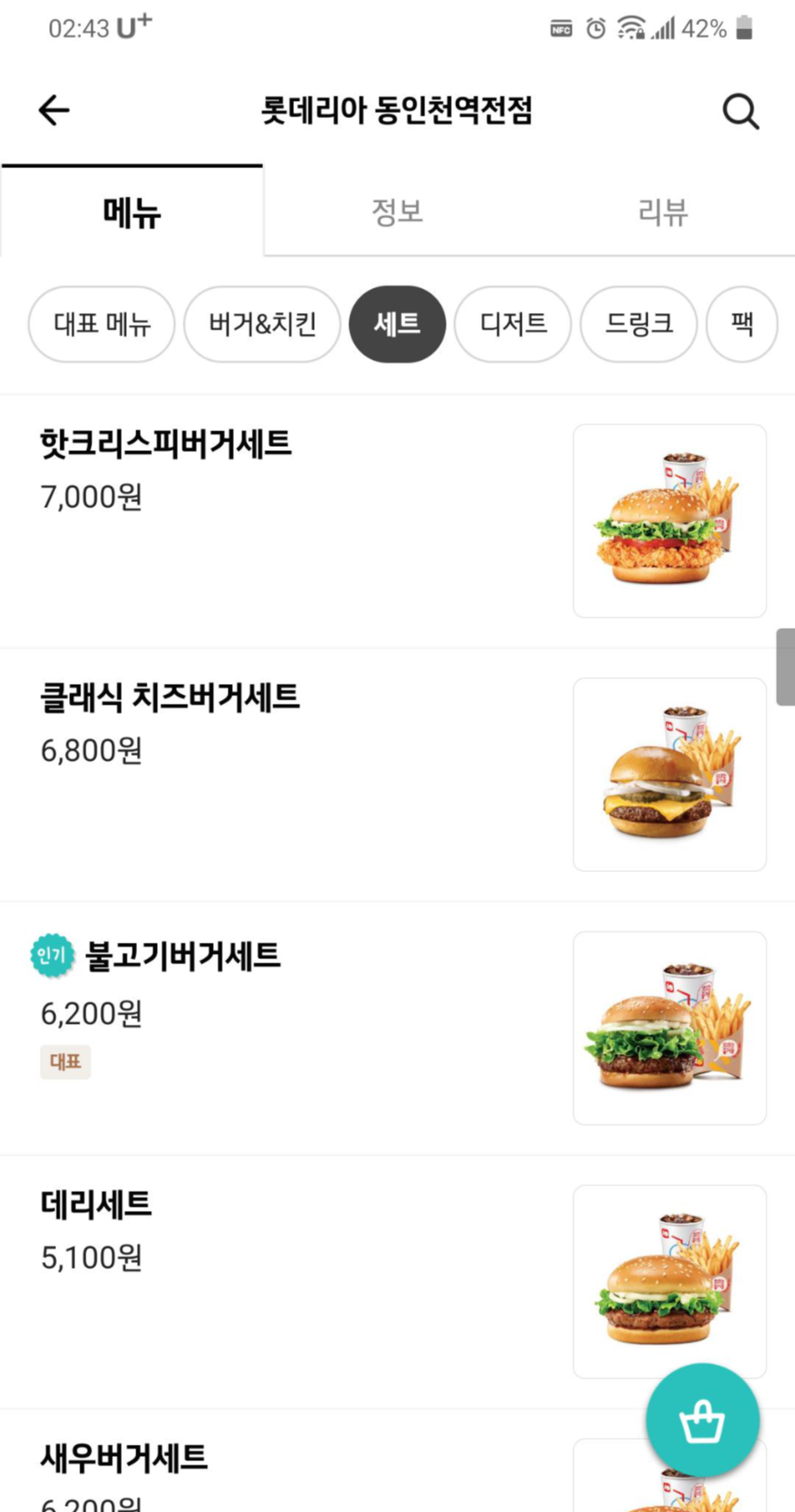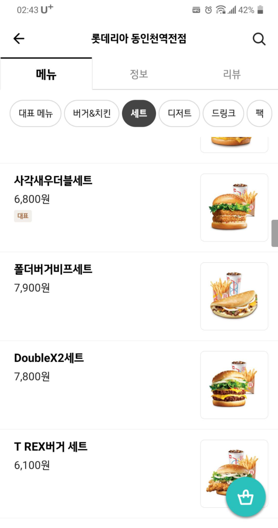 * 배민 동인천 롯데리아 정보와 메뉴