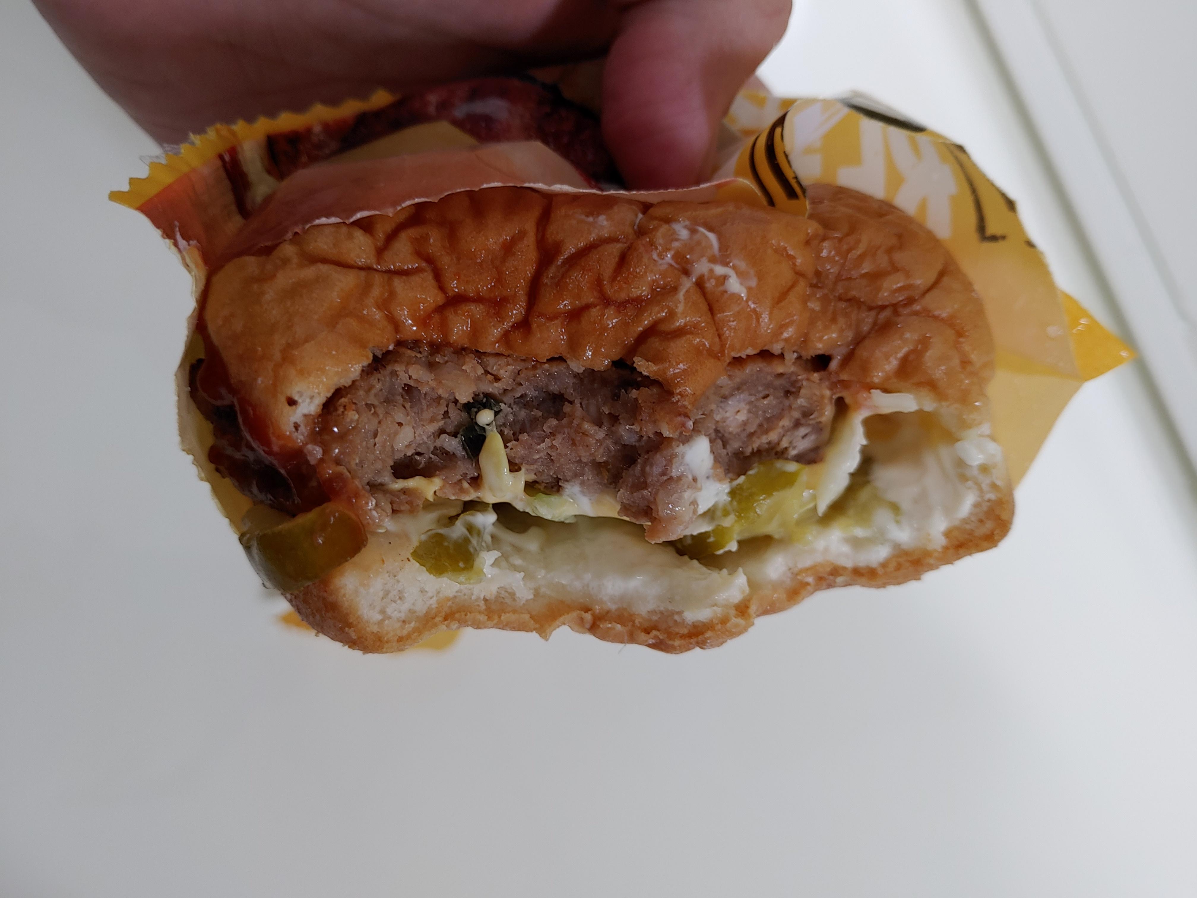 그리고 두번째로 특색있던 점은 패티가 정말 두꺼워요. 일반적으로 다른 햄버거들 패티가 아니라 약간 함박스테이크? 그런 느낌의 완전 두꺼운 패티가 들어가 있는데요. 그래서 그런지 더 두꺼운 듯한 느낌의 햄버거가 되서 엄청 맛있더라구요. 먹는 맛이 있다? 이런 느낌이랄까요 ㅎㅎ 몰론 달달하고 새콤한 소스들까지 전체적으로 정말 초딩입맛에 JMT 100점짜리 느낌의 햄버거였습니다.