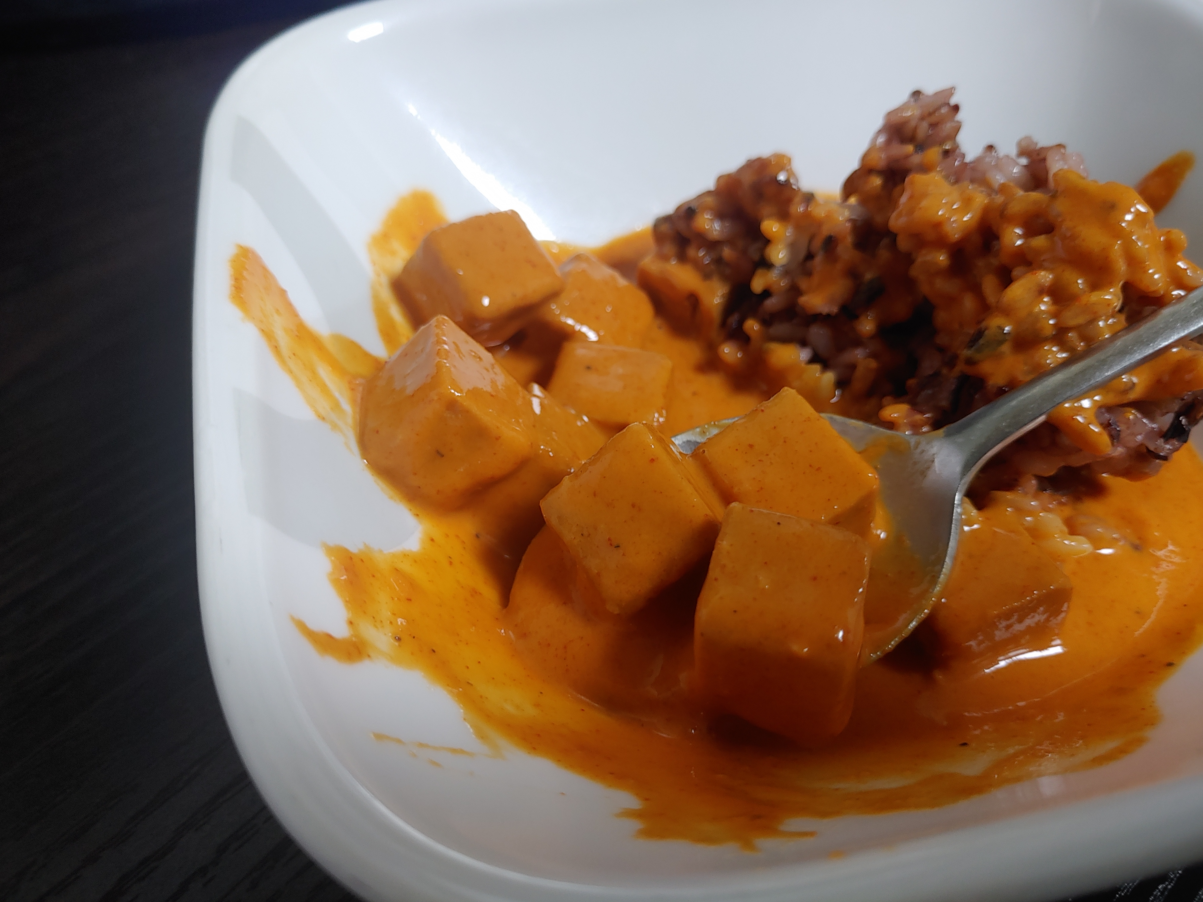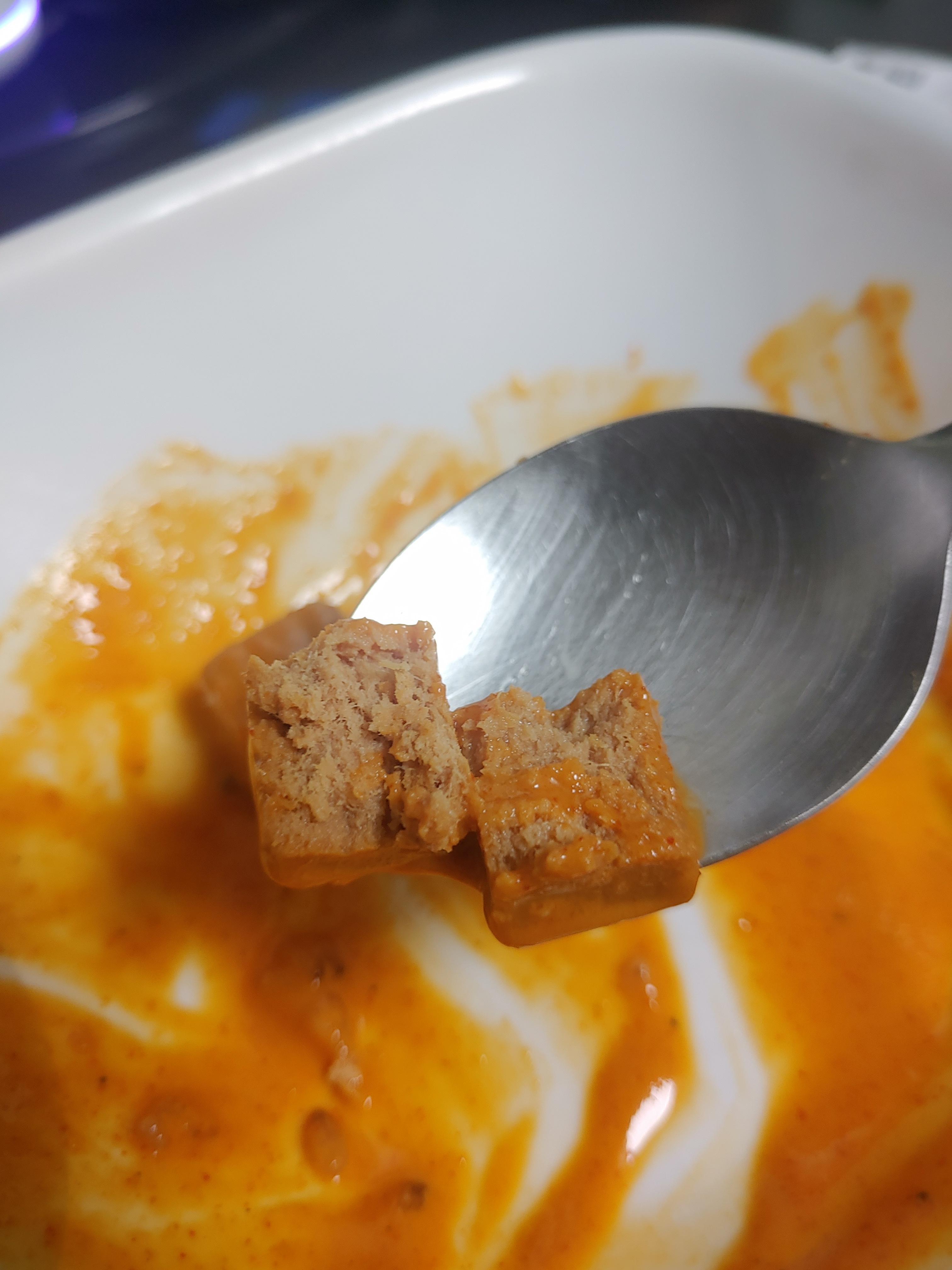 밥을 조금 가져와서 말아봤는데 꽤 맛있더라구요. 고추참치를 약간 더 업그레이드 한느낌? 약간 동원참치의 고추참치를 더 진하게 로제소스와 이렇게 저렇게 만들어낸 그런 느낌을 받기도 했습니다. 밥이랑 잘 어울리기도 하더라구요.