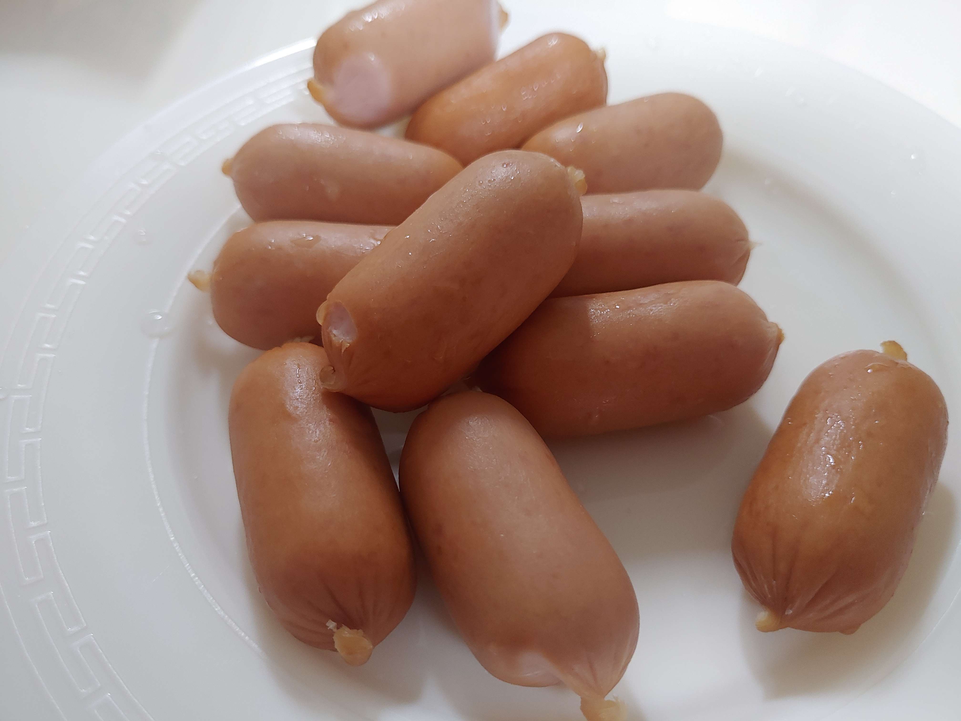 동원 통그릴 비엔나는 일반 소시지에 비해서 상당히 두툼한 편이에요. 그렇다고 해서 캠핌용 완전 두툼한 소시지 느낌은 아니고 딱 그 중간에 있는 듯한 그정도의 무게느낌이더라구요. 뭔가 칼집을 내면 더 맛있을 것 같은 느낌의 두툼한 소시지인데요. 가위로 칼집을 내고 좋고, 절반을 딱 잘라서 먹기에도 뭔가 먹을게 있다는 느낌이 들어서 좋더라구요. 아무래도 소시지들 너무 작으면 ㅎㅎ 식감이 좀 별로라 약간 두툼하게 먹는 것을 선호하는 저 같은 사람들이 딱 좋아할만한 크기로 나와서 좋더라구요.