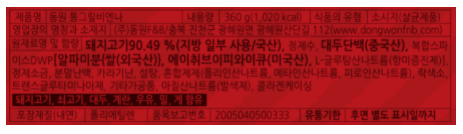 동원 통그릴 비엔나는 내용량 360g씩 담겨져있고, 소시지인데요. 돼지고기가 90.49% 로 높은 돼지고기 함량을 가지고 있어요. 그외에 다른 내용들은 사진에 간단히 ㅎㅎ 살펴보실 수 있구요.