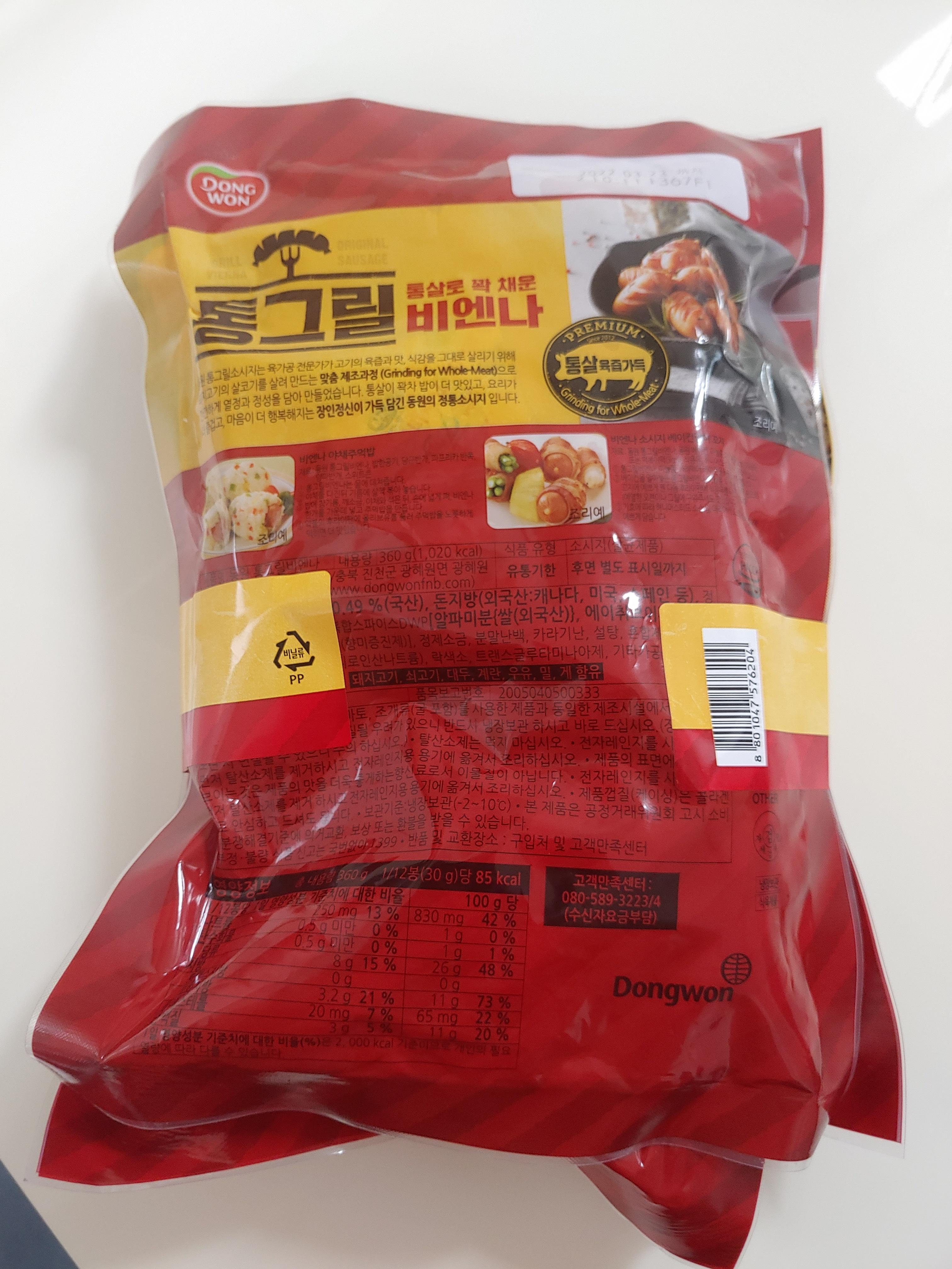 동원 통그릴 비엔나는 이마트에서 360g X2 묶음으로 행사를 하고 있었는데요. 가격은 7980원이었어요. 네이버 장보기 이마트에도 동일한 가격인 것 같더라구요. 네이버등에서 검색해보면 조금 더 저렴하게 파는 곳들도 있는 것 같습니다.