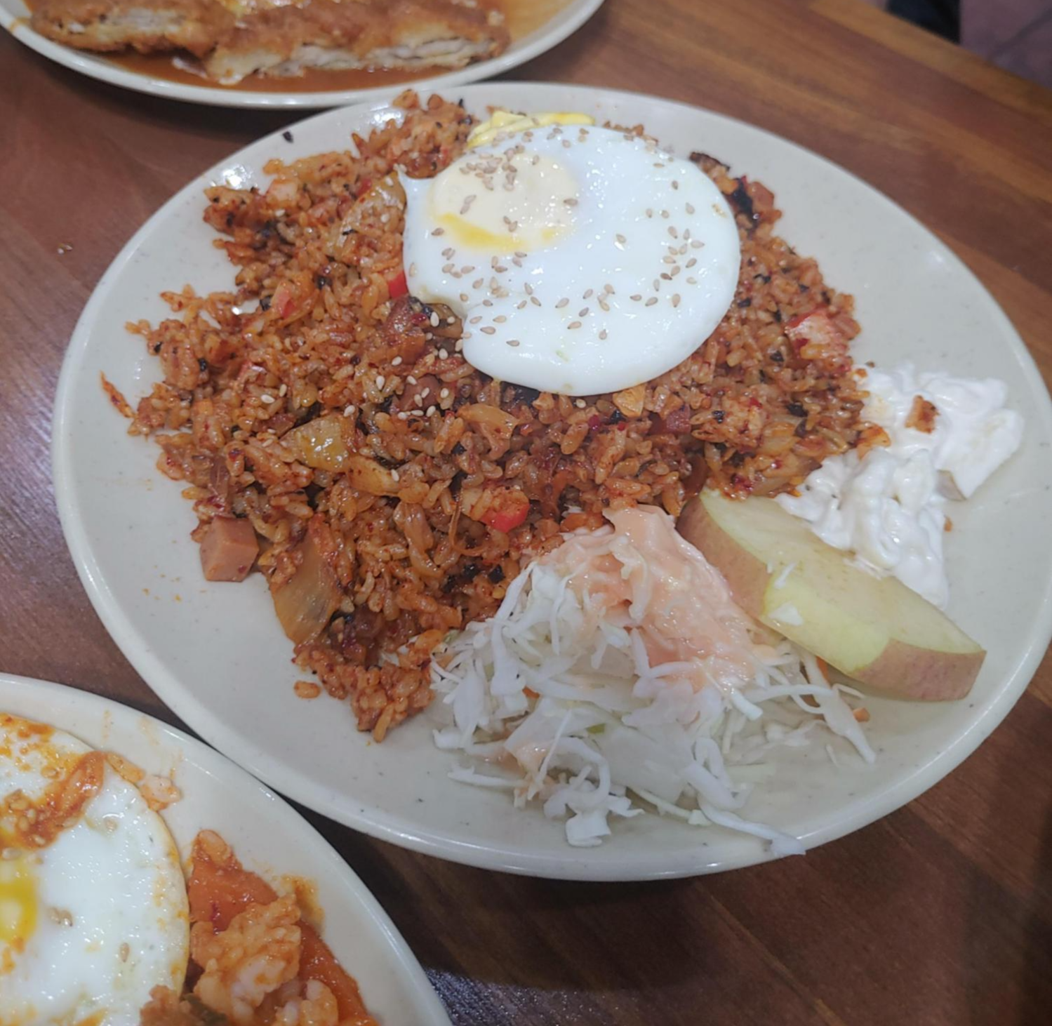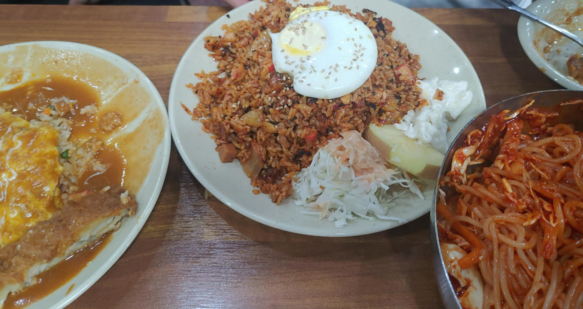 김치볶음밥은 약간 어린이 입맛에 딱 맞는 김치볶음밥인데요. 김치와 기름이 잘 조화되면서도 맛살이 들어 있어서 특유의 맛이 색다르게 다가오는 맛이에요. 한번씩 생각나는 김치볶음밥도 정말 좋죠