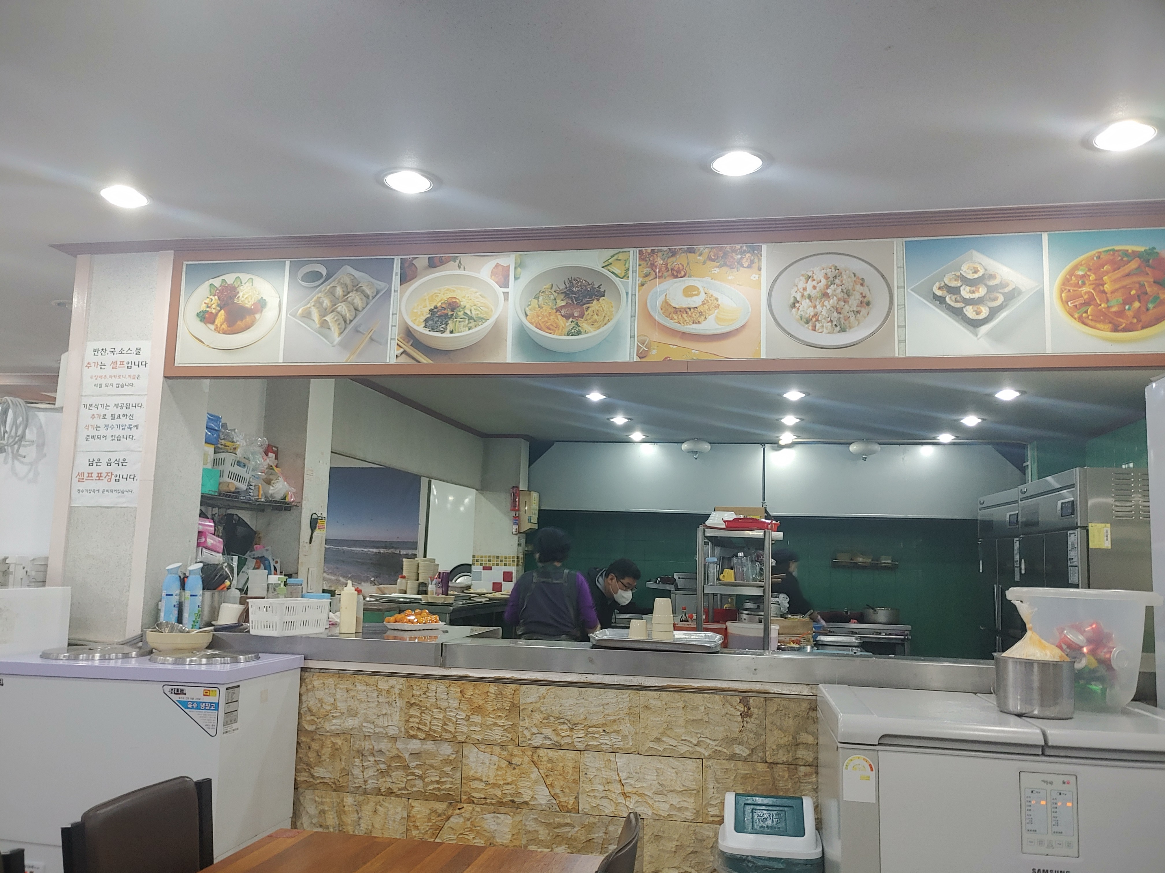 내부에 사람 많으셔서 못찍었고, 간단하게 이렇게 담아봤습니다. 음식들이 분식답게 금방 나오는 편이에요. 이것저것 주문하시면 오픈형 주방에서 조리가 되서 나와요. 딱 들어오면 그래서 그런지 맛있는 냄새들이 솔솔나요 ㅎㅎ 주변에 돈까스도 그렇고 막 음식들 올라와 있는 모습보면 놀라기도 하구요