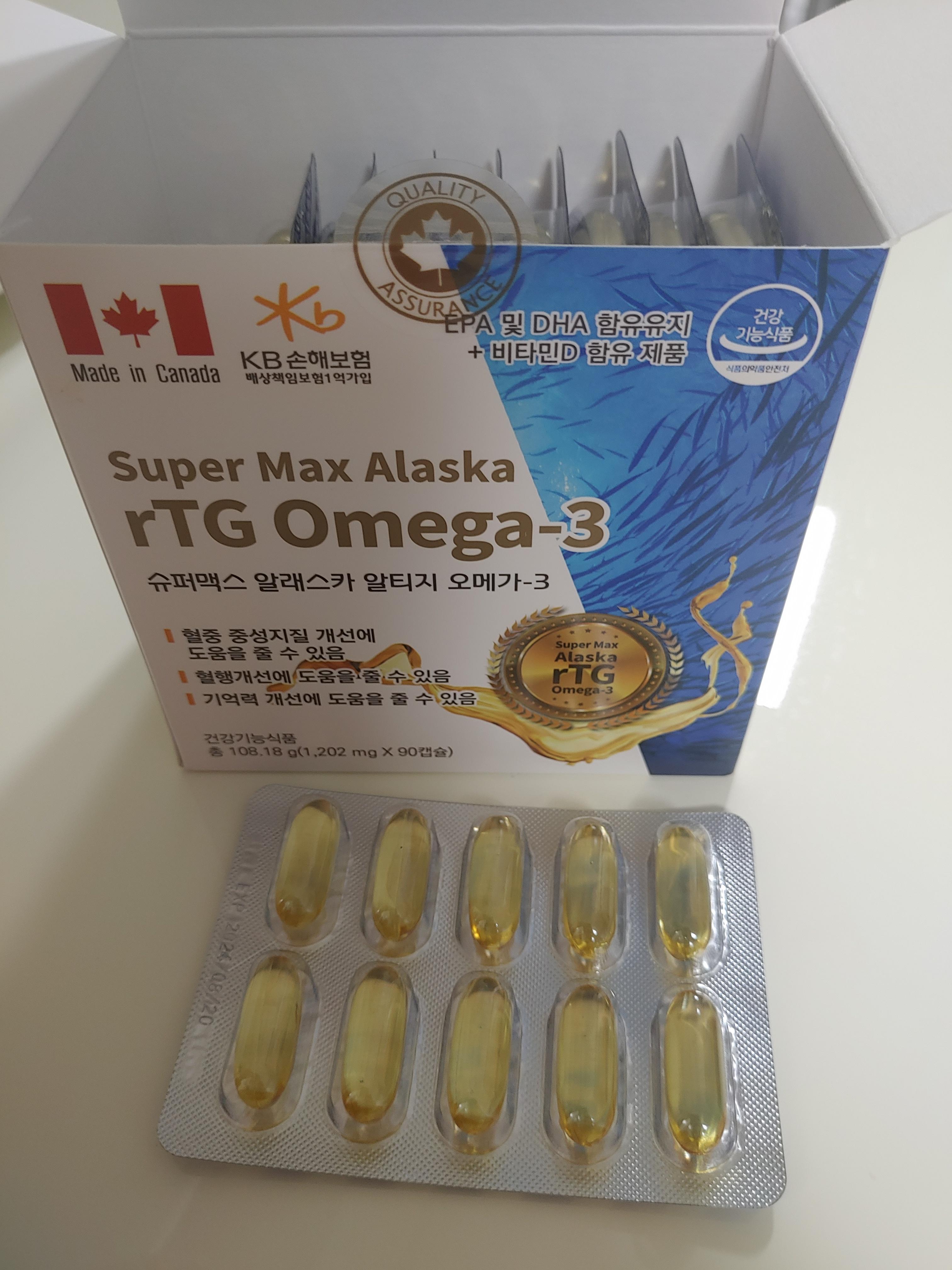 Super Max Alaska rTG Omega-3 슈퍼맥스 알래스카 알티지 오메가3는 수많은 오메가-3 건강기능식품중의 하나인데요. 비슷한 제품이 인터넷에 검색이 잘 안되서 ^^;; 어머니께서 어디서 사오셨는지는 잘 모르겠더라구요. 예전에 먹던 제품에 이어서 먹고 있는 오메가3 인데요. 식품이력관리시스템에는 나오는 것으로 봐서는 문제는 없는 제품인데 요새는 아마 다른 제품들이 플러스, 골드 이래서 나오는 것 같더라구요.
