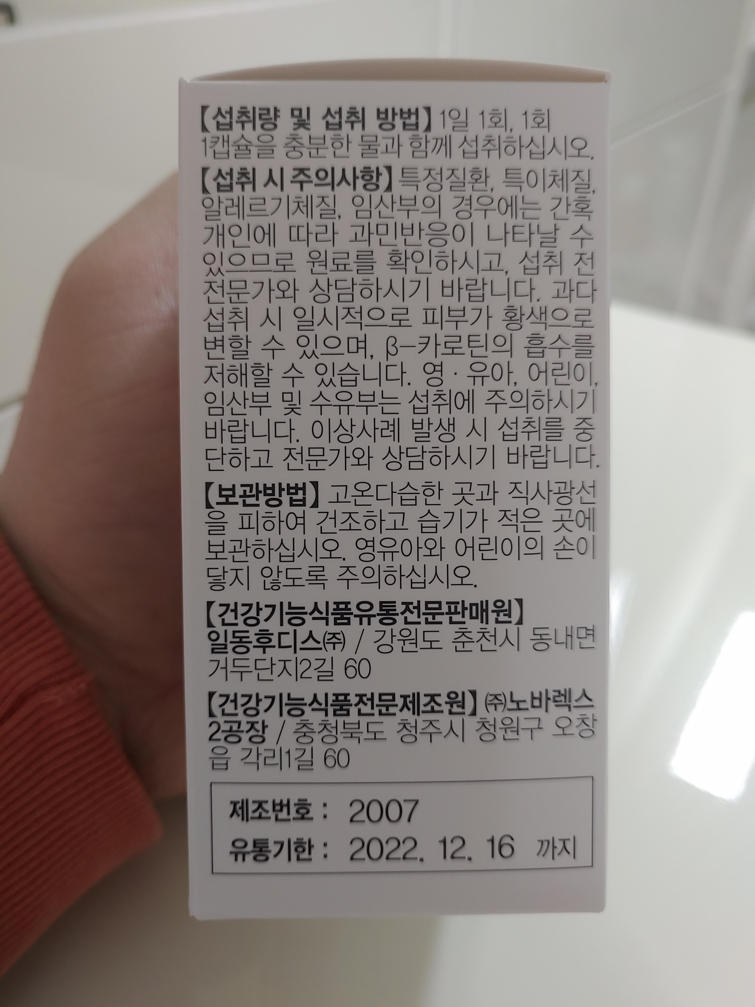 주의사항으로는 특정질환 및 특이체질, 알레르기체질, 임산부등의 경우에는 과민반응이 있을 수 있으므로 주의를 하도록 하고 있어요. 또한 과다섭취시에는 루테인 부작용으로 피부가 황색으로 변할 수 있으며, B-카로틴의 흡수를 저해할 수 있다고 합니다. 영유아 어린이는 섭취에 꼭 주의를 해야하구요.
