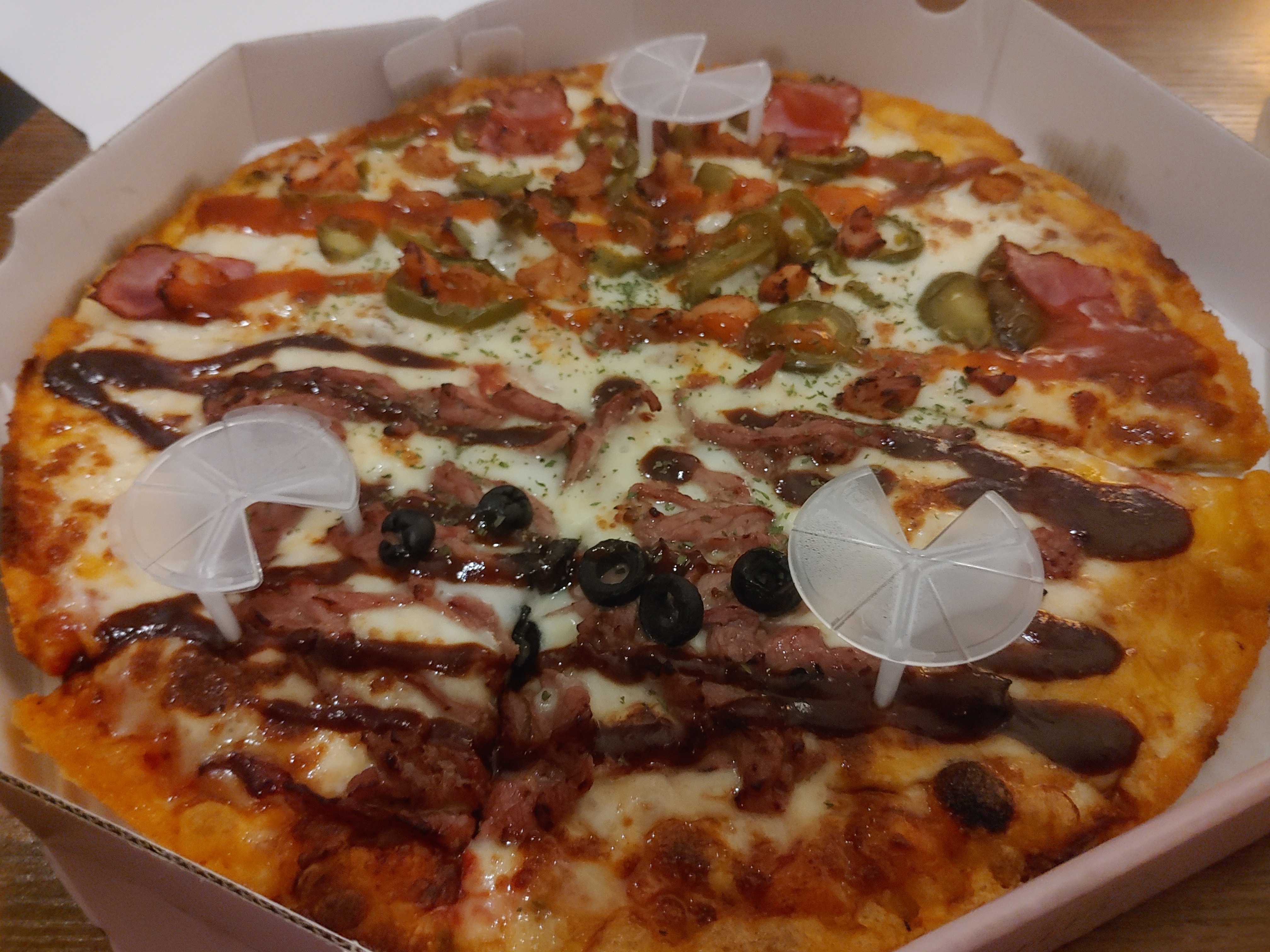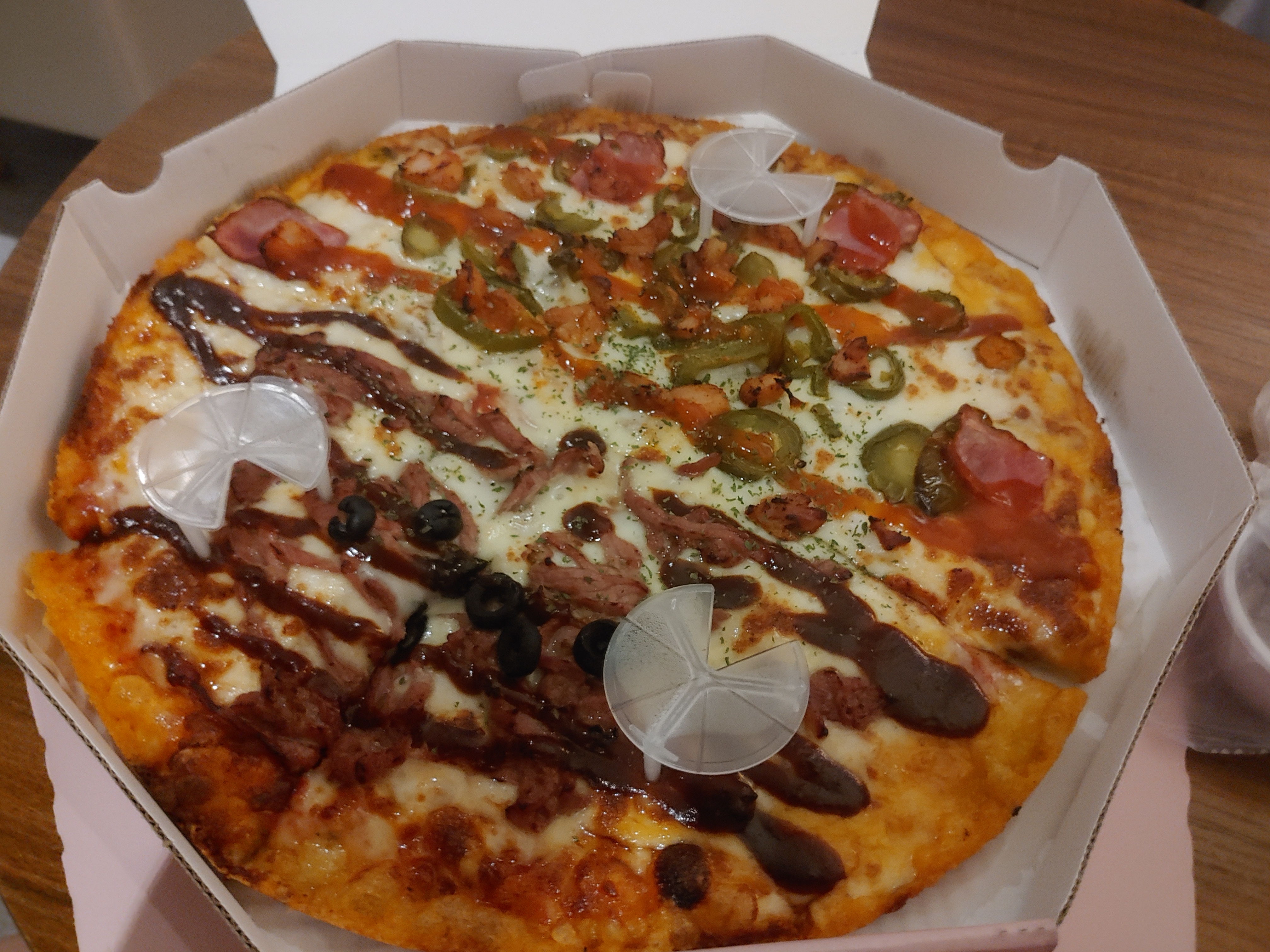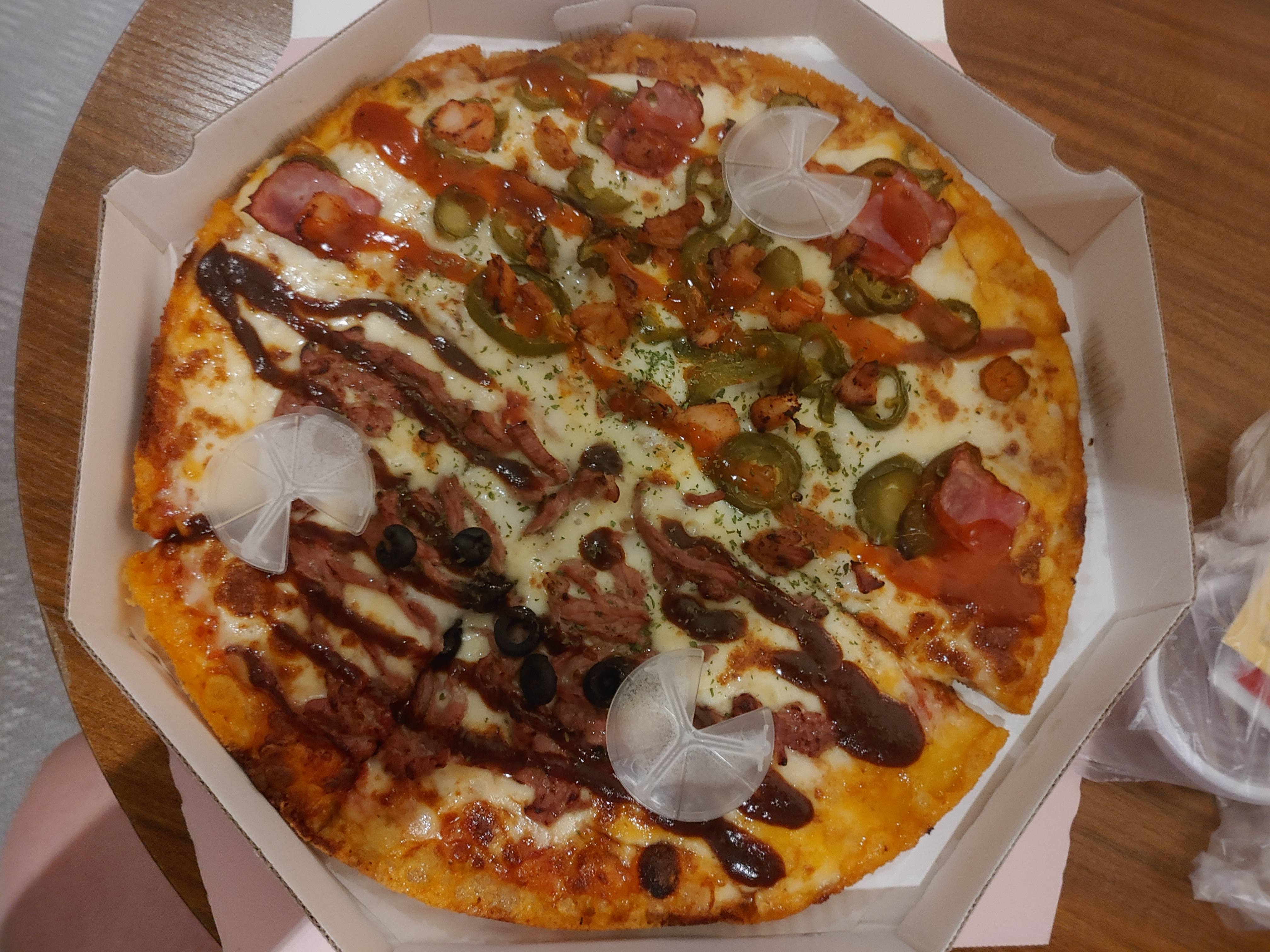 배달 주문하고 금방 도착을 했고, 따뜻하게 한번 더 포장이되서 왔더라구요. 깔끔하게 온 것으로 봐서는 나쁘지 않아보였습니다 ㅎㅎ 그리고 피자향이 꽤 좋더라구요.