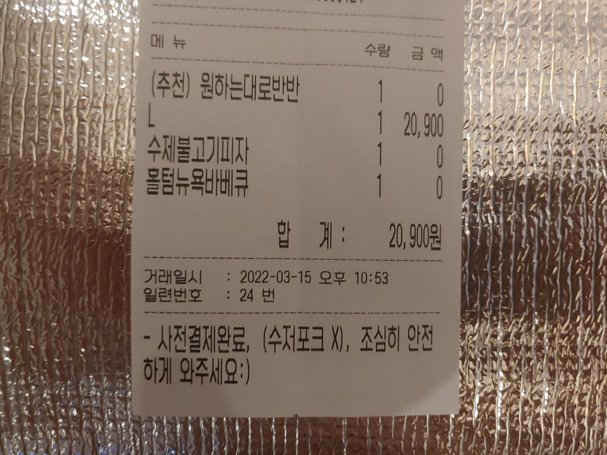 피자플렉스 주안간석점은 주안에 위치했는 곳인데요. 가까운 곳이고 배달팁도 없고 해서 주문을 했습니다. 그리고 보니까 피자가 특이하게 원하는대로 반반 토핑이 가능한게 특징이더라구요. 가격은 20,900원이었고, 수제불고기 피자와 홀텀뉴욕바베큐로 골라봤습니다.