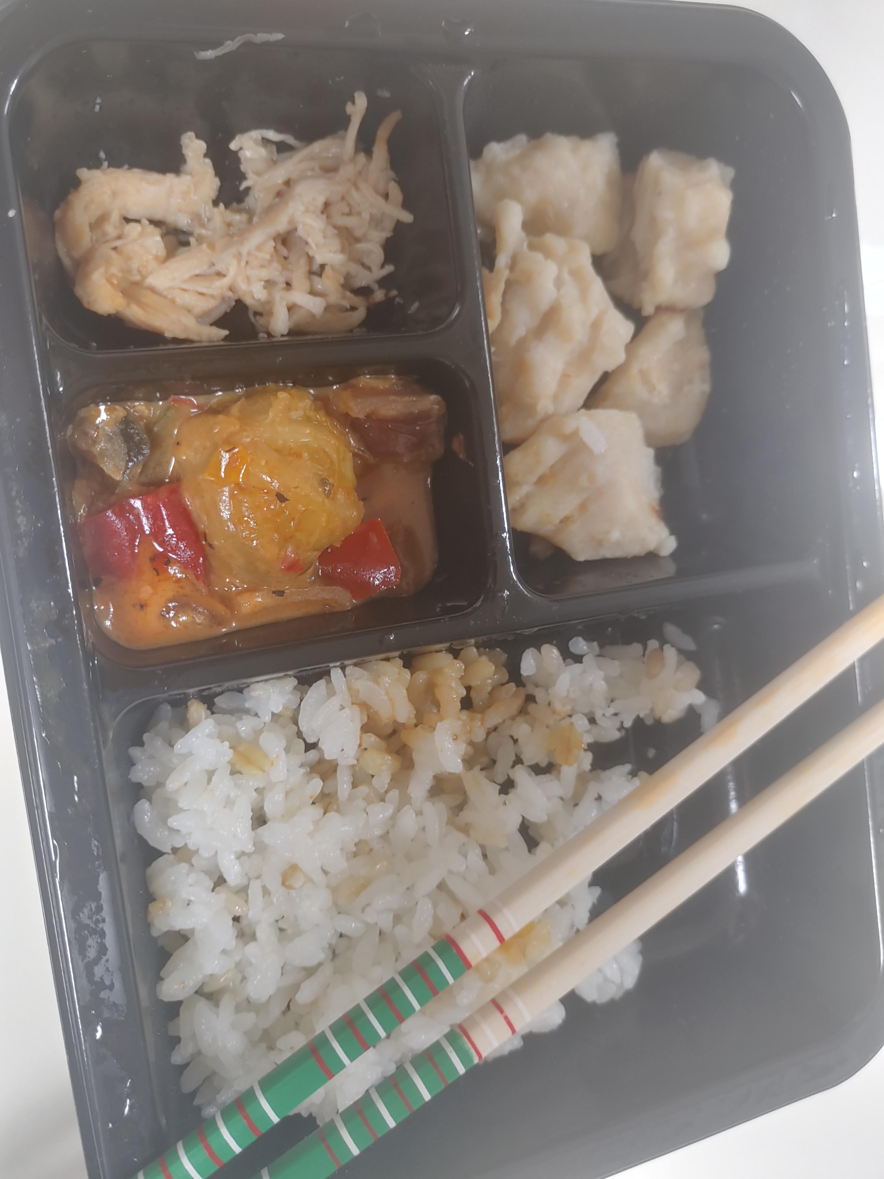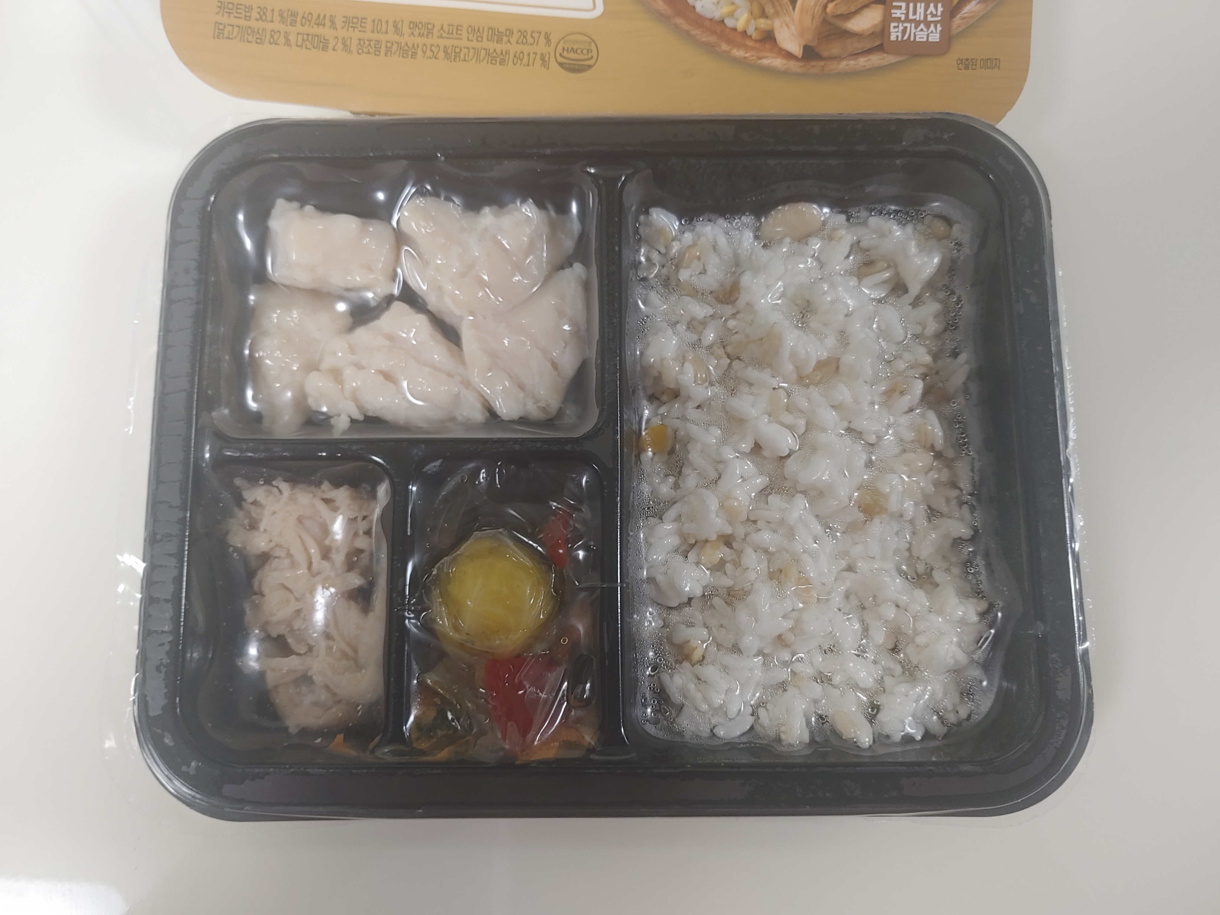 일단!! 데우고 나서 맛은 나쁘지 않았습니다!! 그냥저냥 먹을만 하다는 느낌을 받았어요. 밥도, 닭가슴살도, 전체적으로 짭잘하고 간편하게 한끼 떼우는 용도로는 크게 나쁘지 않더라구요. 하지만 원래 양이 적게 나와서 다이어트를 하는 도시락이지만 그만큼 충실한 느낌입니다!!