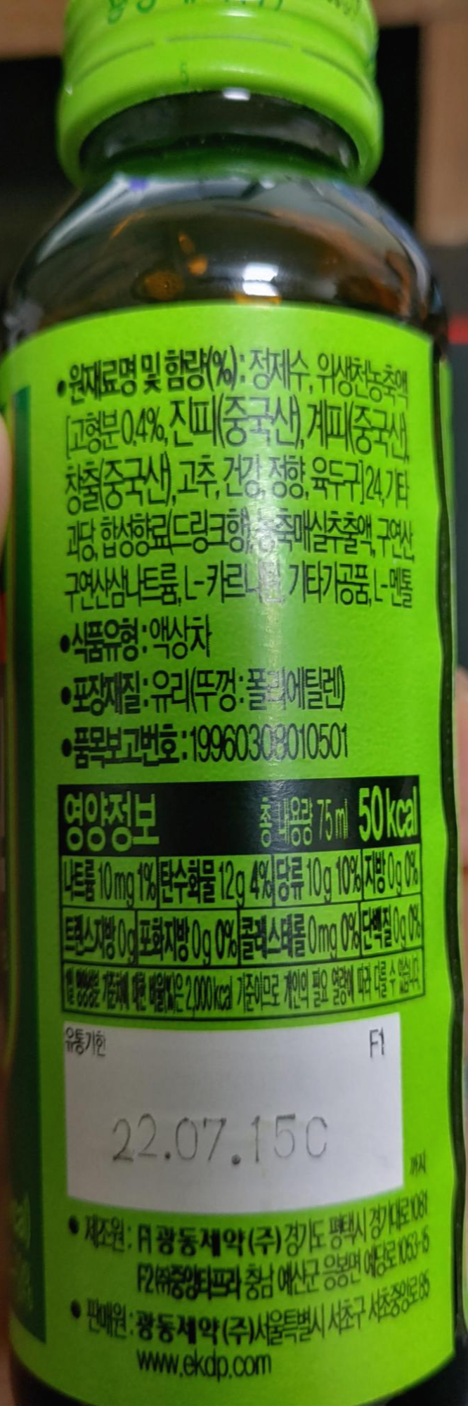 일단 광동 위생천은 75ml 이구요. 칼로리는 50Kcal이라고 나와 있네요.