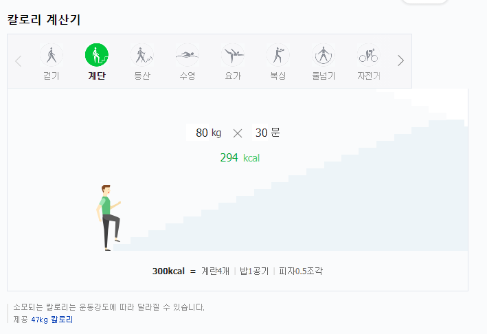 30분 정도 계단 오르기를 하는 경우에는 약 294 Kcal(칼로리)를 소모된다고 하는데요. 이것은 빨리 걷기와 줄넘기보다 30~50% 정도의 칼로리 소비가 높은 부하 운동으로 높은 칼로리 소모를 통해서 다이어트에도 상당히 도움이 될 수 있습니다.