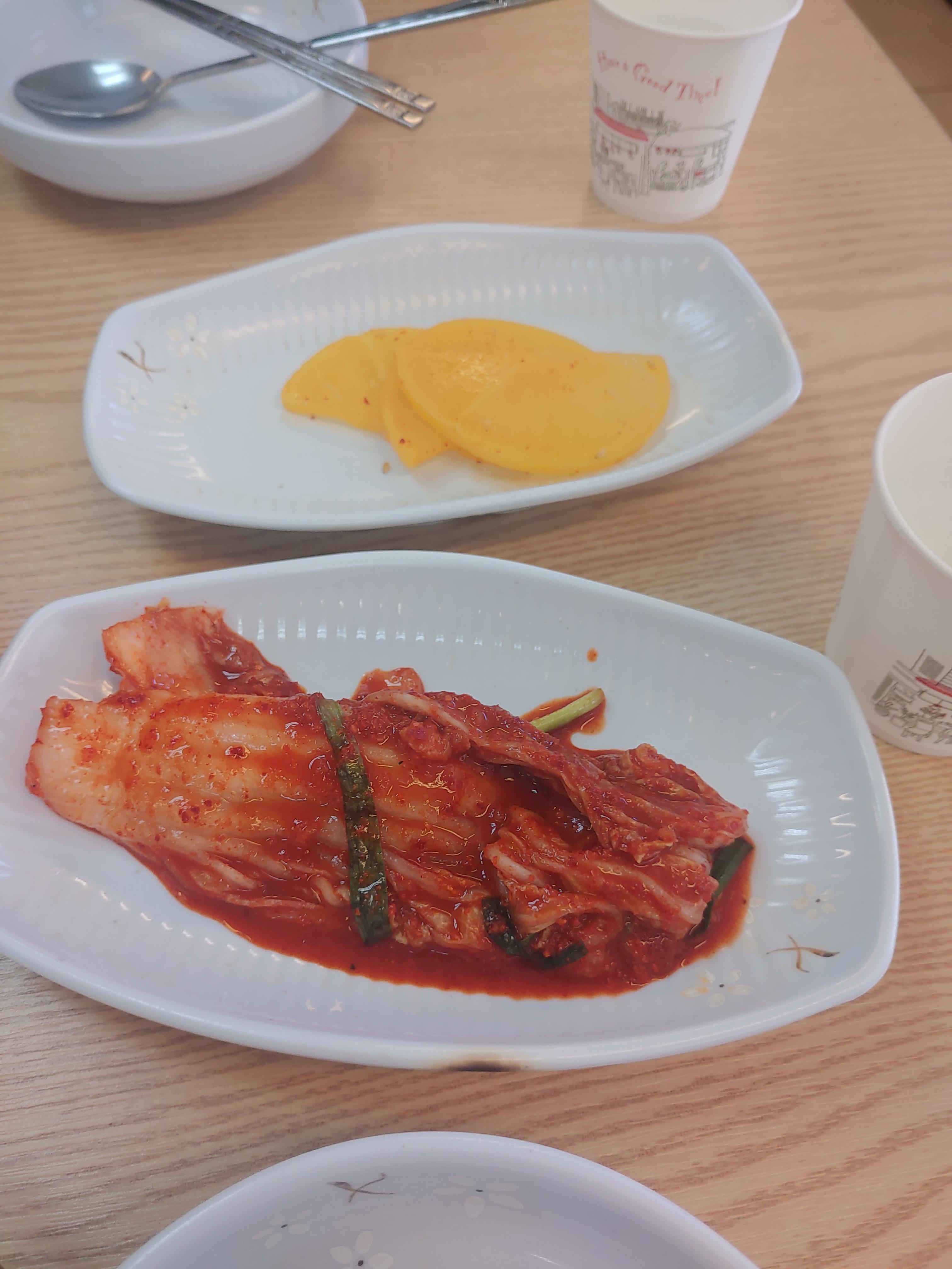 단무지와 김치가 반찬으로 나오구요. 단무지가 상당히 맛있습니다 ㅋ 생각보다 달짝지근하면서도 양념을 살짝 해놔서 단짠단짠으로 얼큰한 국물에 먹기 좋은 단무지에요.