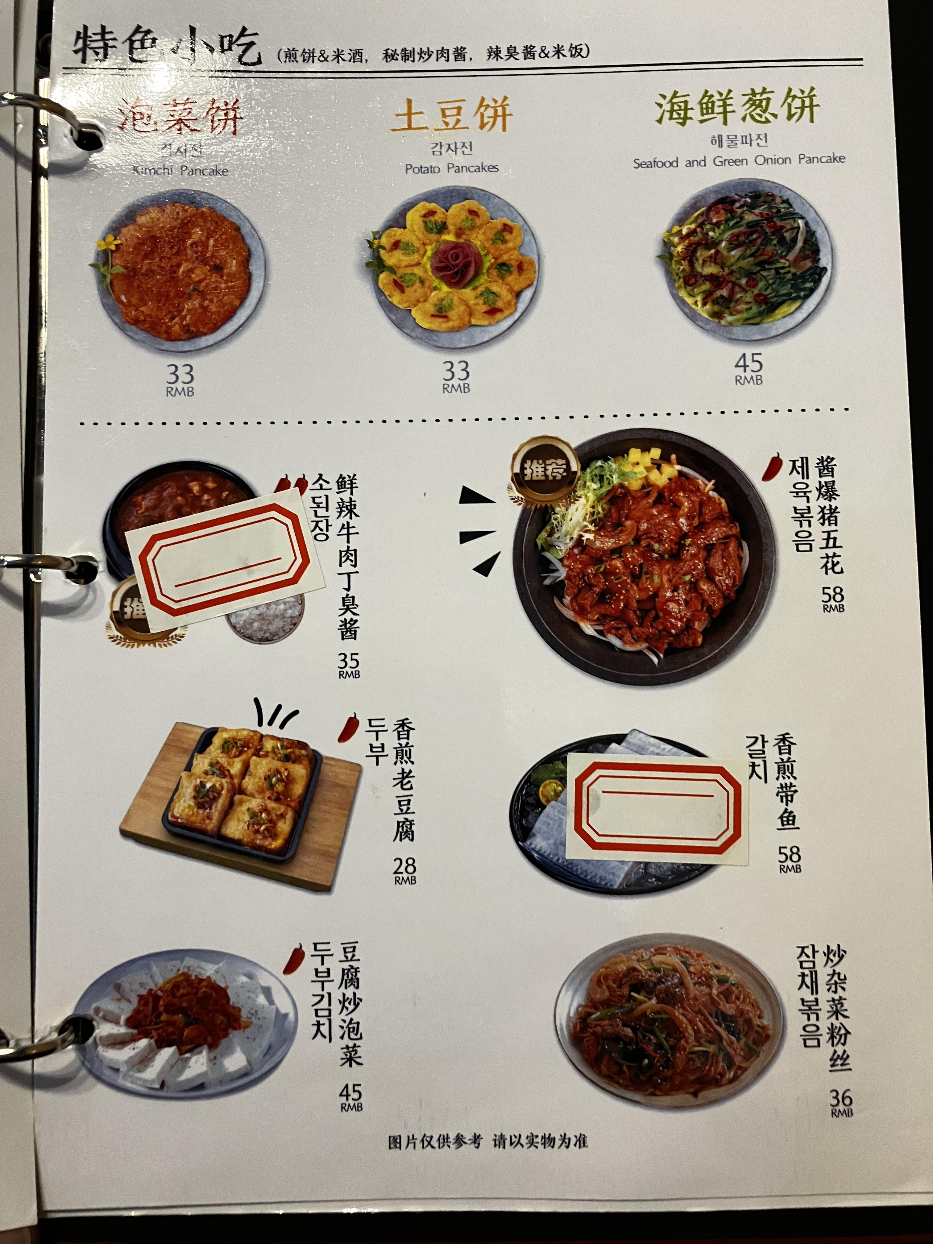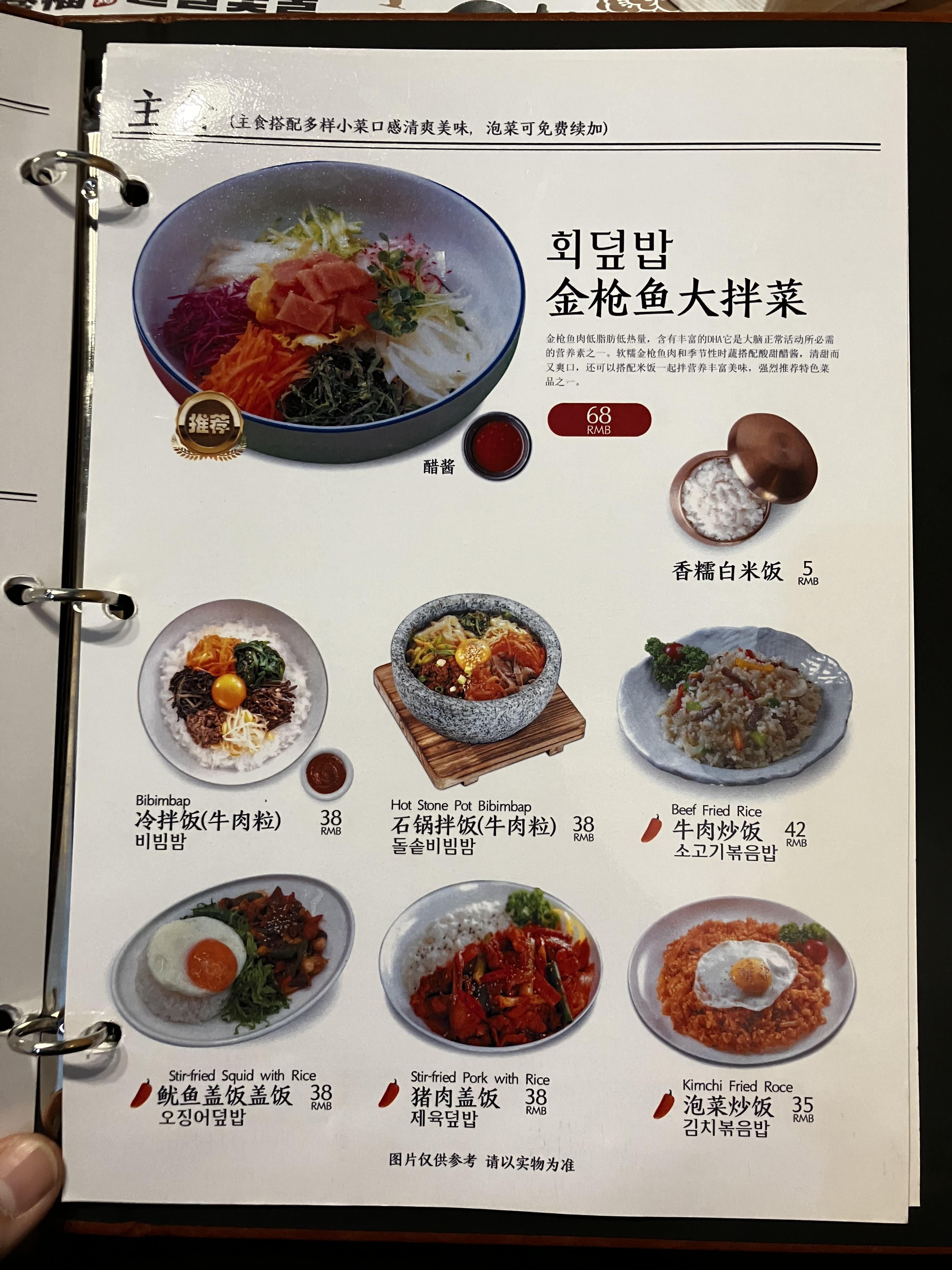 중국 생활을 하다보면 한국의 맛이 생갈 날때가 많아요. 아무래도 중국음식 특유의 향신료가 강한 이유도 있고 계속해서 먹어오던 한국의 맛들이 간혹 생각이 나는데요. 그럴때는 주변에 괜찮은 한국식당이 있다면 알아두면 좋아요. 다만 중국에서 한국식당은 가격이 좀 있는 편이라 ㅎㅎ 그래도 한번씩 들려서 여러가지 음식들을 먹을 수 있는 곳이에요.