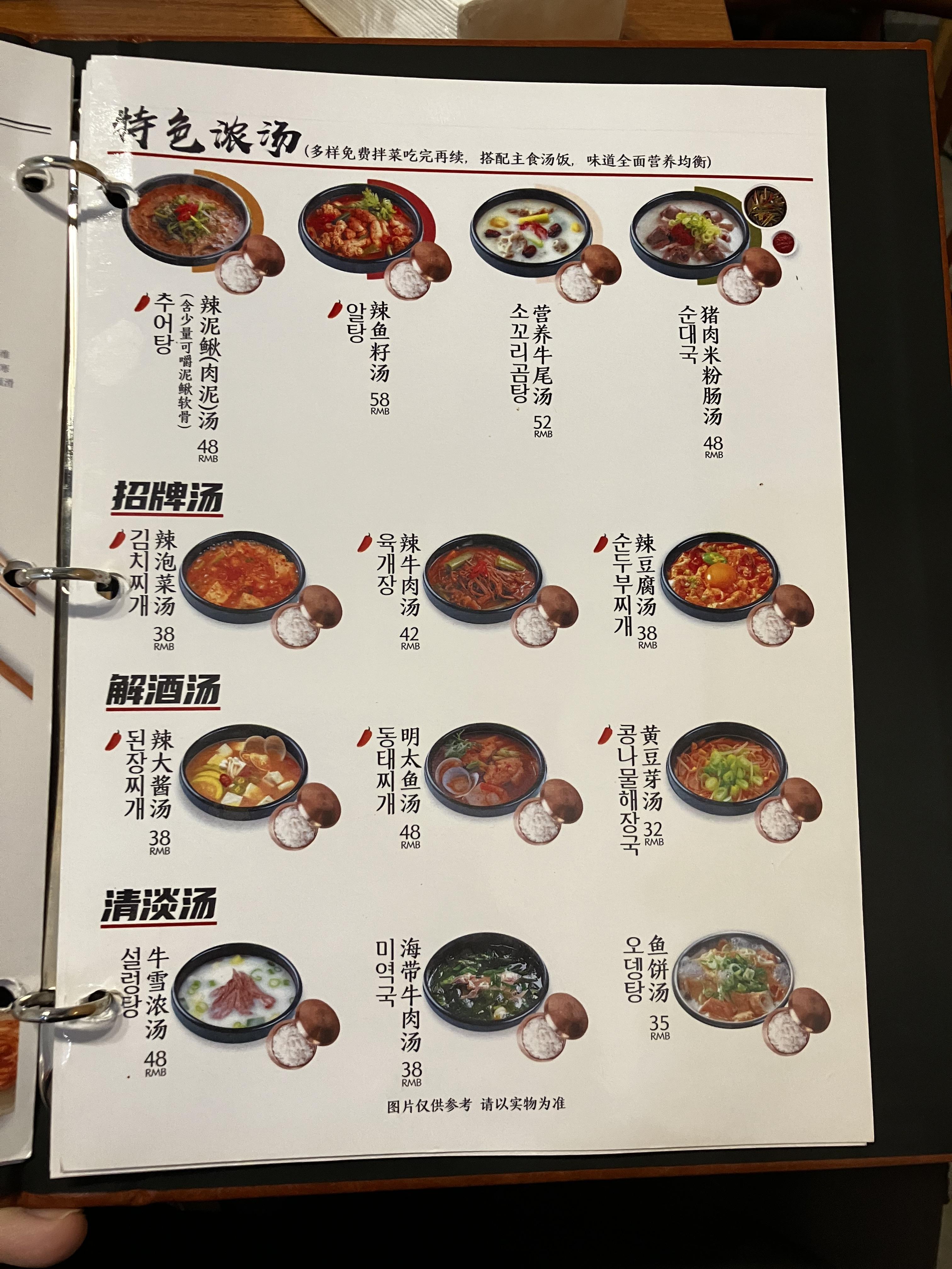 종류가 정말 다양한데 족발도 있고, 오삼불고기도 있고 ㅎㅎ 한국에서 보는 메뉴들도 정말 많더라구요. 여기에 아래 보시면 순대국과 같은 것들도 있고, 김치찌개, 된장찌개, 순두부등등 정말 다양한 종류들이 있기도 하구요.