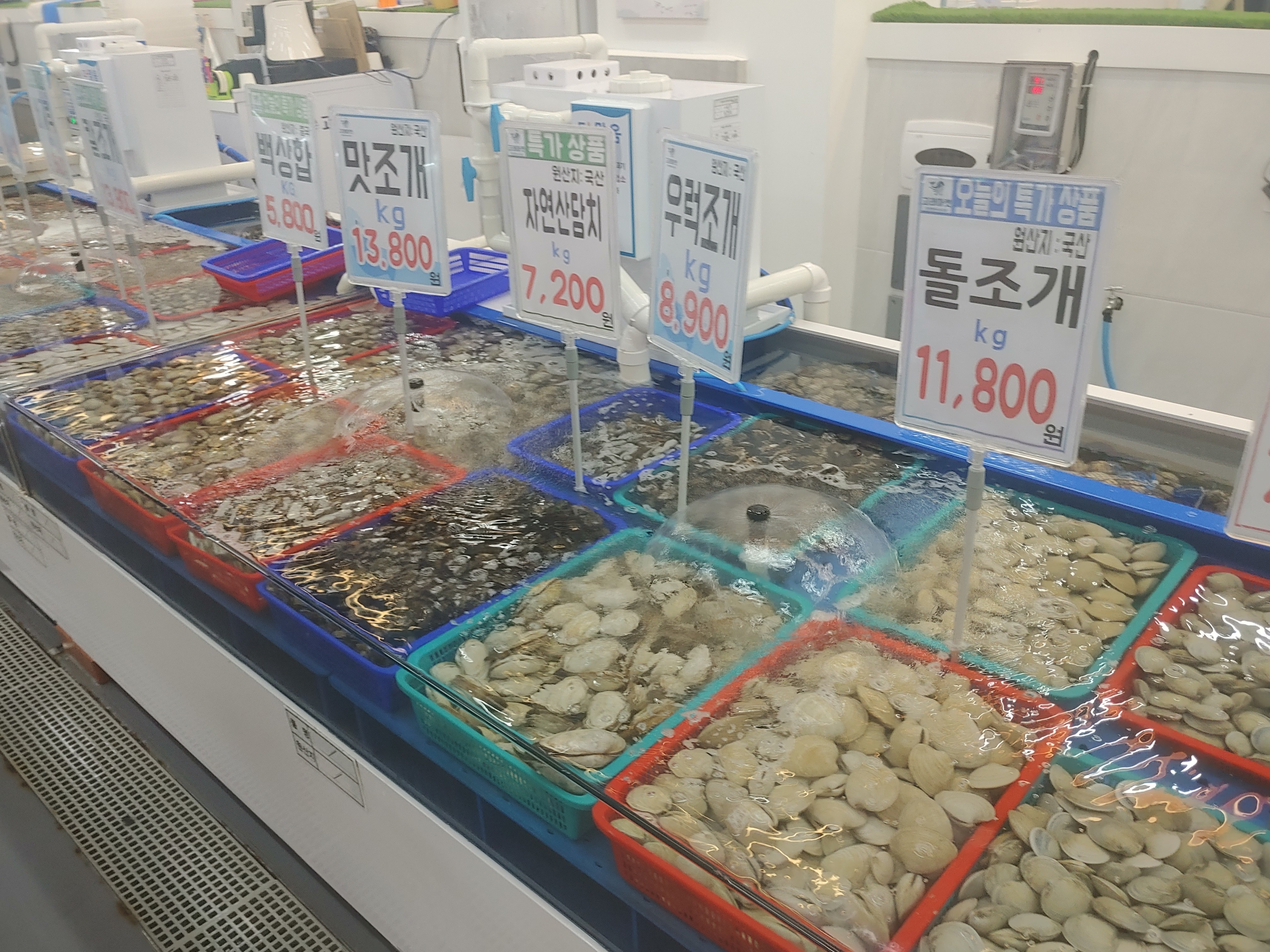 수산시장이 일단 확실히 깔끔하다는 점은 정말 좋았어요. 다른 수산시장들 보면 좀 위생적으로 애매하다 싶은 느낌이 들때도 있는데 여기는 그런것은 없고 좋더라구요. 새롭게 생긴곳이라 그런지 엄청 깨끗하기도 했구요.
