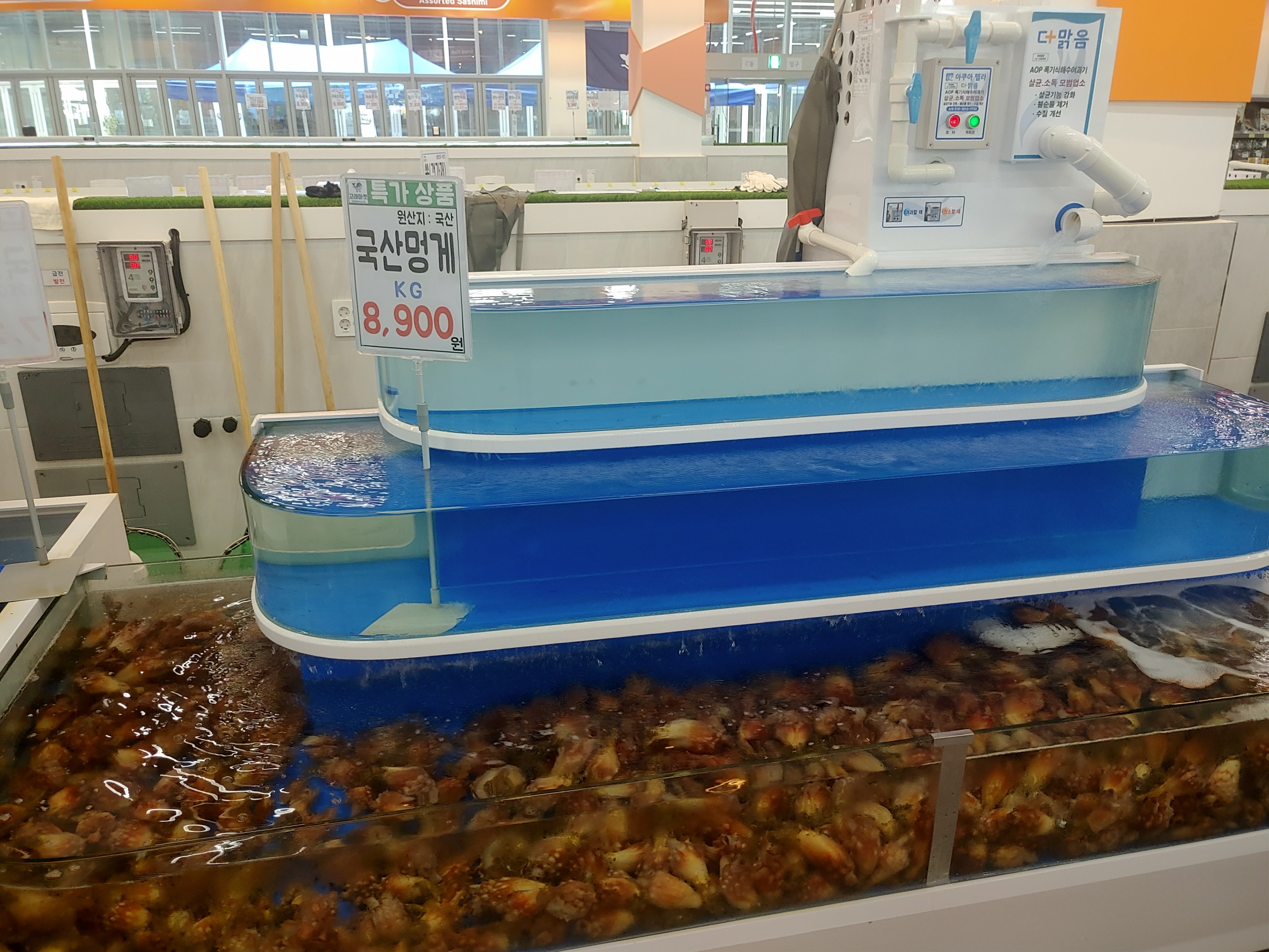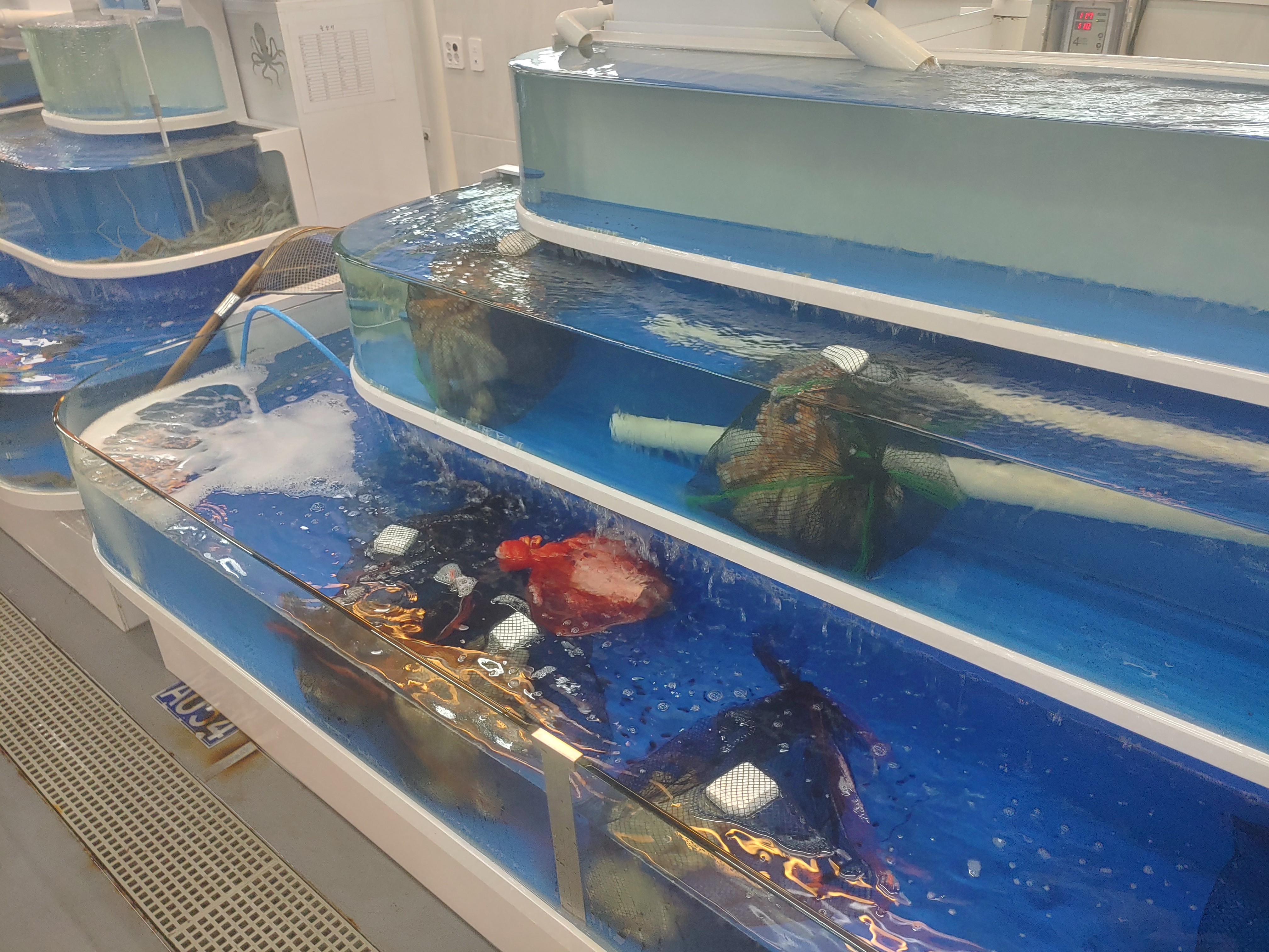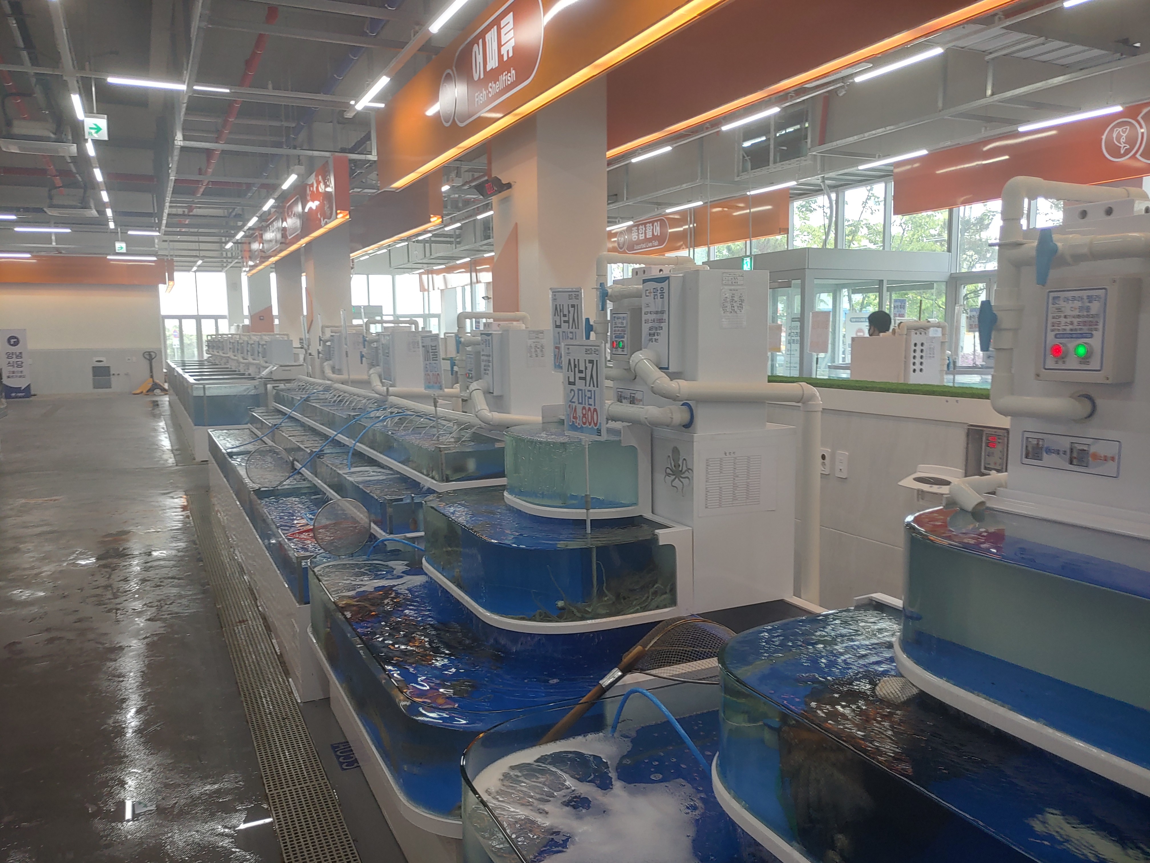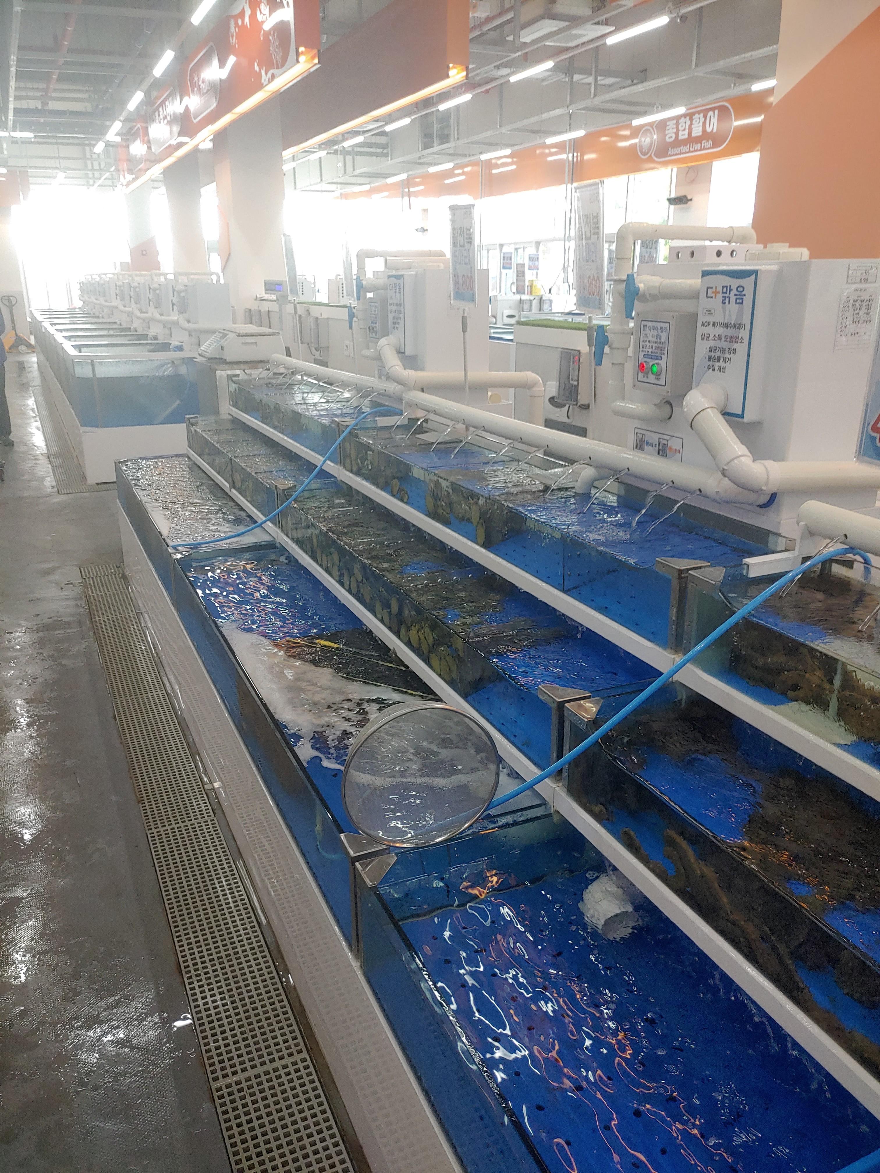 수산물들은 여러가지 다양해요. 광어 우럭과 같은 횟감부터 돔 같은 조금 비싼 횟감도 있구요, 낚지와 장어와 같은 것들도 있고, 엄청 많아요. 매장별로 좀 넓직넓직해서 여러가지 구경하기에도 좋더라구요.