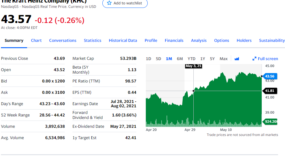 1. 크래프트 하인즈의 주식 개요 (티커 : KHC)