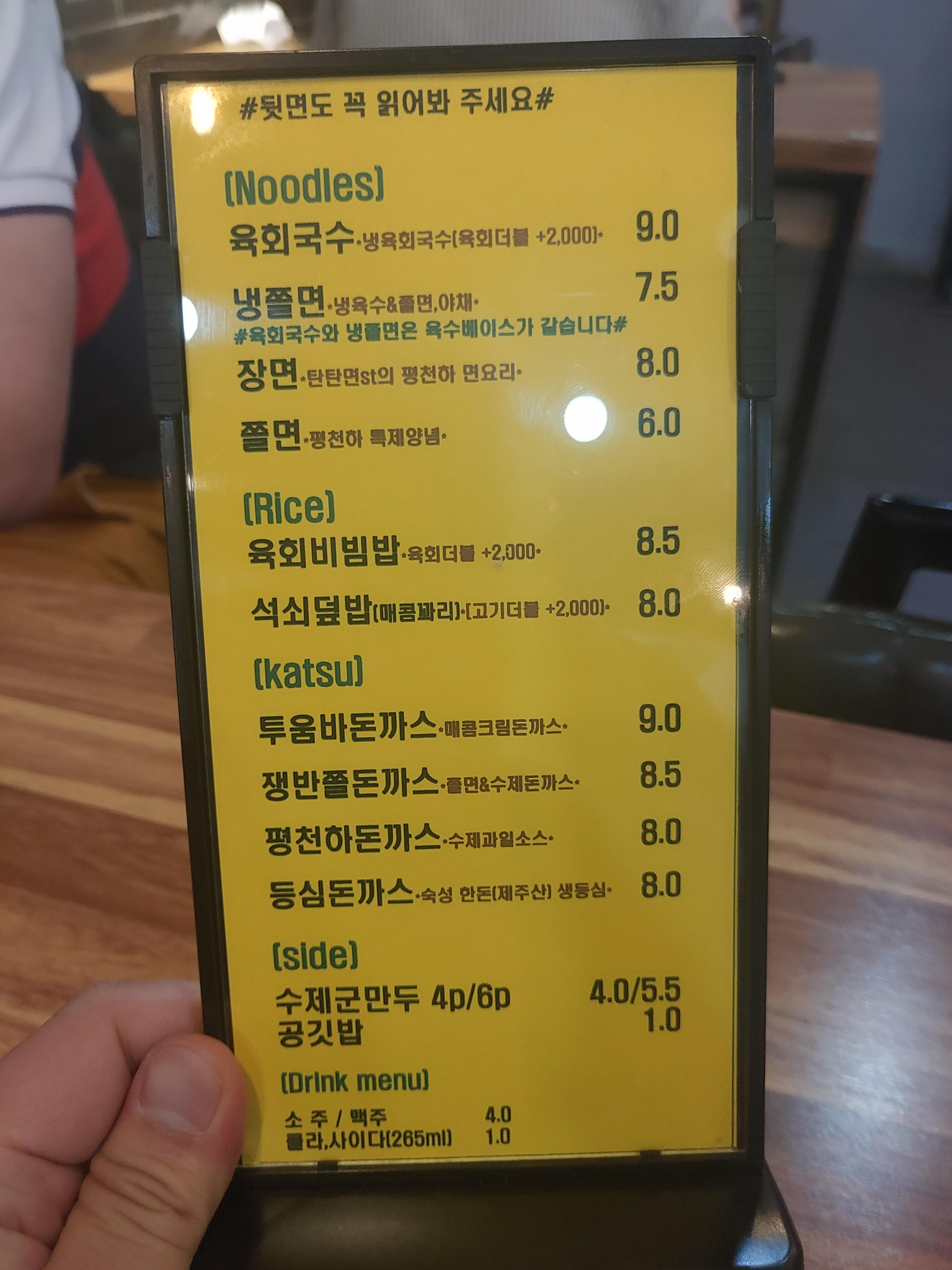 처음에 사실 큰 기대없이 들려봤던 곳인데, 제가 개인적으로 좋아하는 육회비빔밥을 판다는 점이 일단 좋았고, 돈까스 메뉴도 있고, 장면과 같은 색다른 메뉴들이 있던 곳인데요. 이번에 또 다녀와서 사진이랑 간단하게 담아봤습니다.