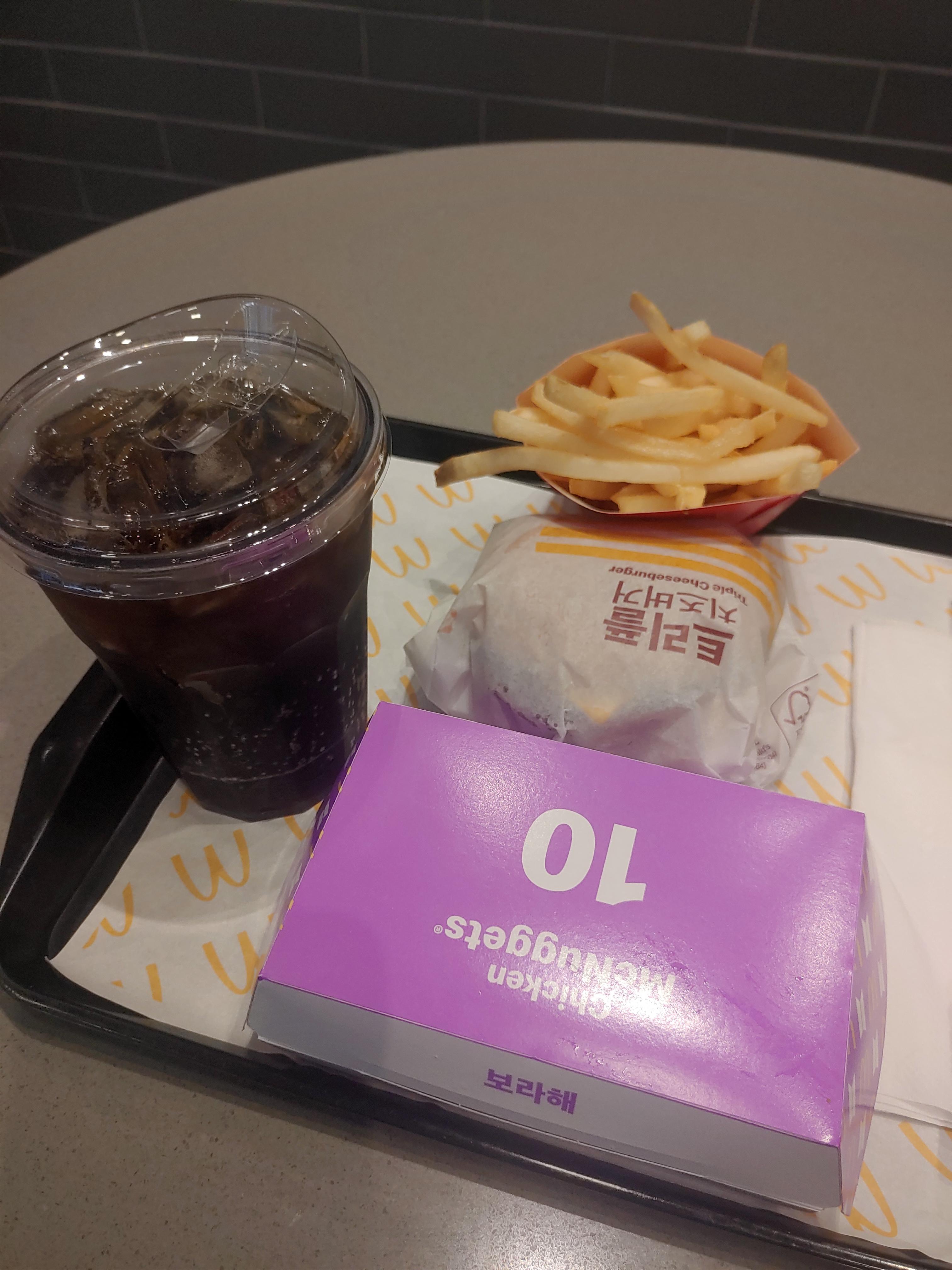 메뉴등장 !! 보라보라한 BTS 세트와 트리플 치즈버거가 등장을 했어요.