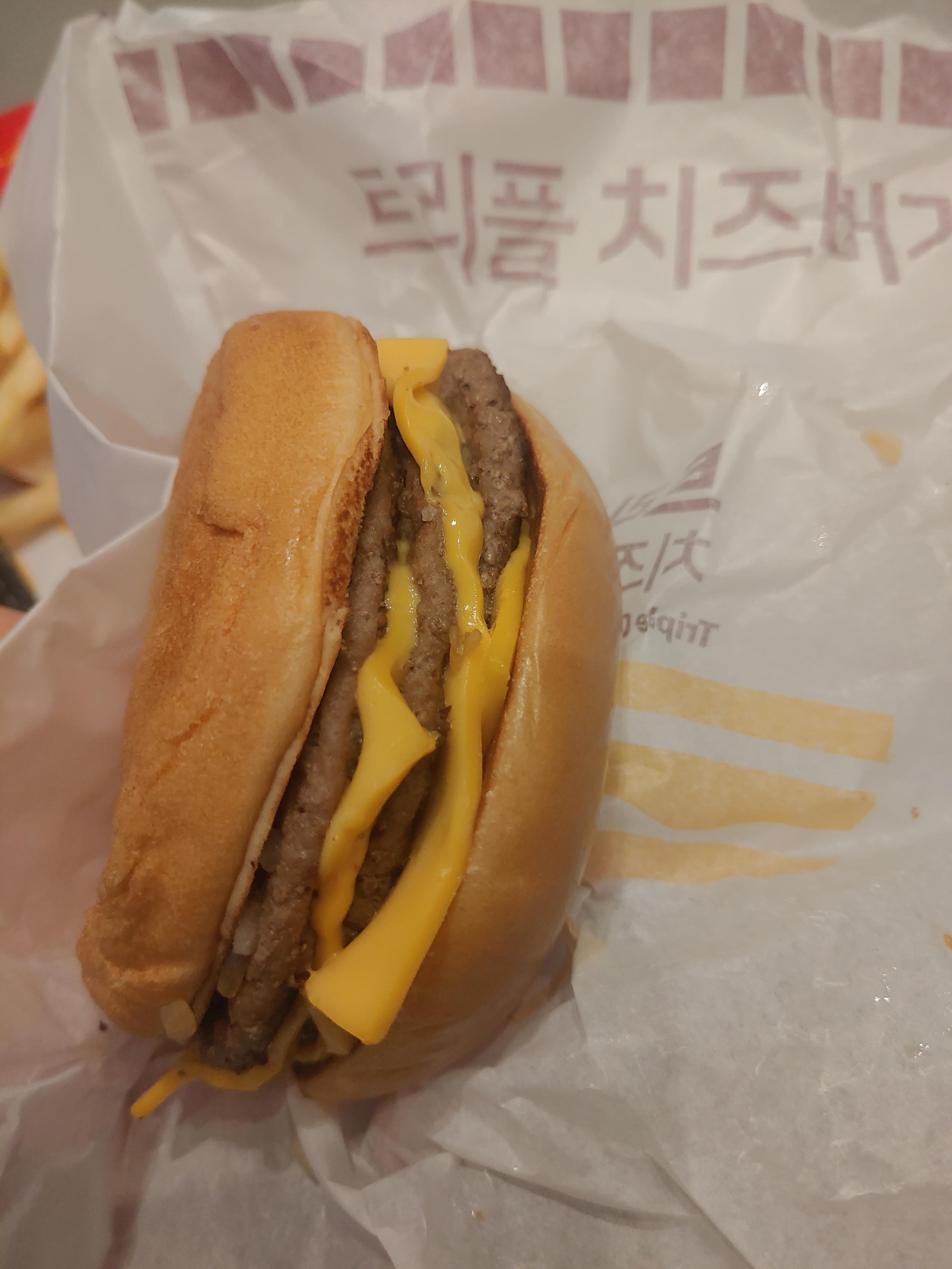 그리고 충격과 공포는 트리플 치즈버거 !!! 바로 가격이 5600원짜리 버거의 수준이에요 !!