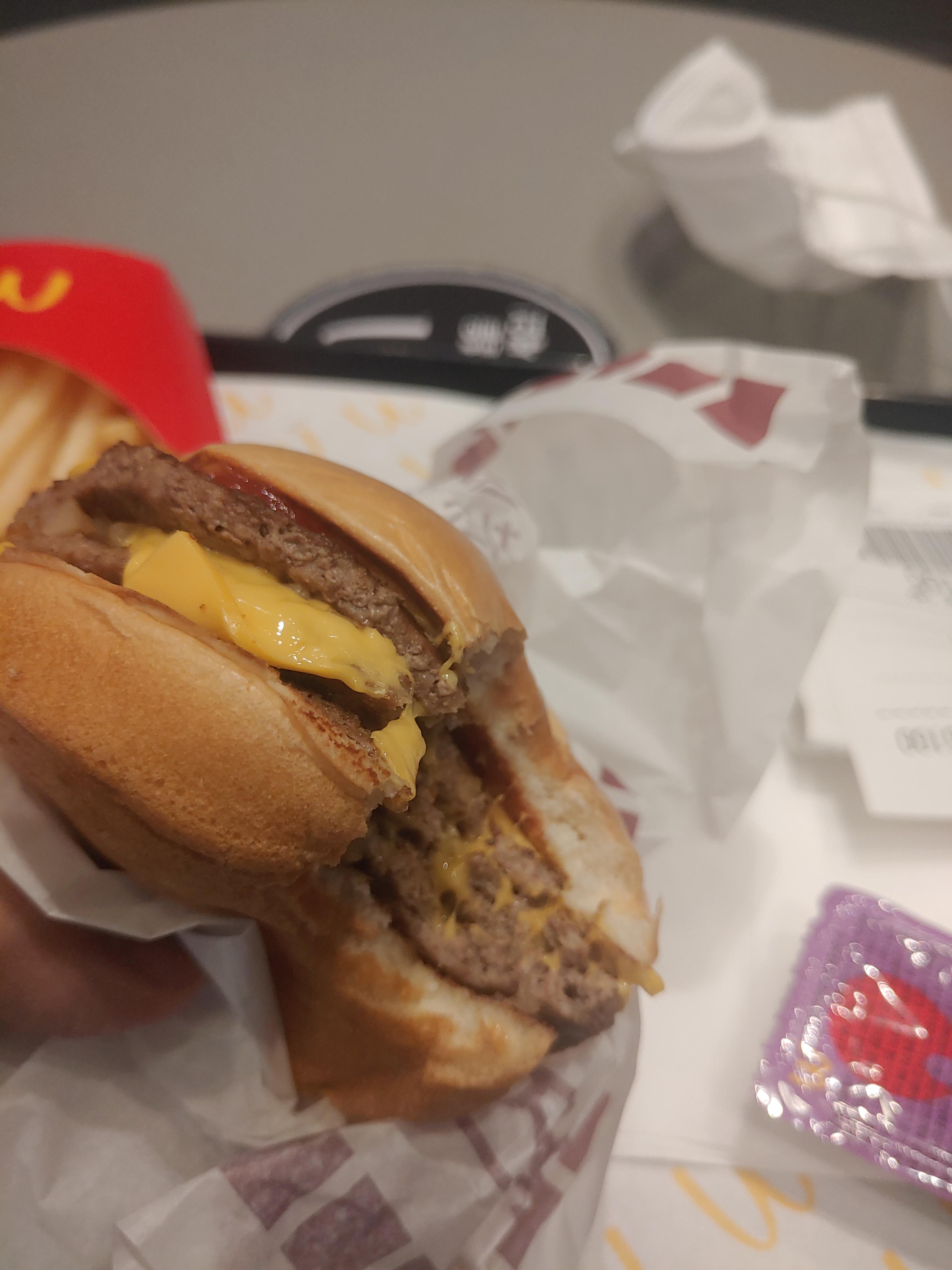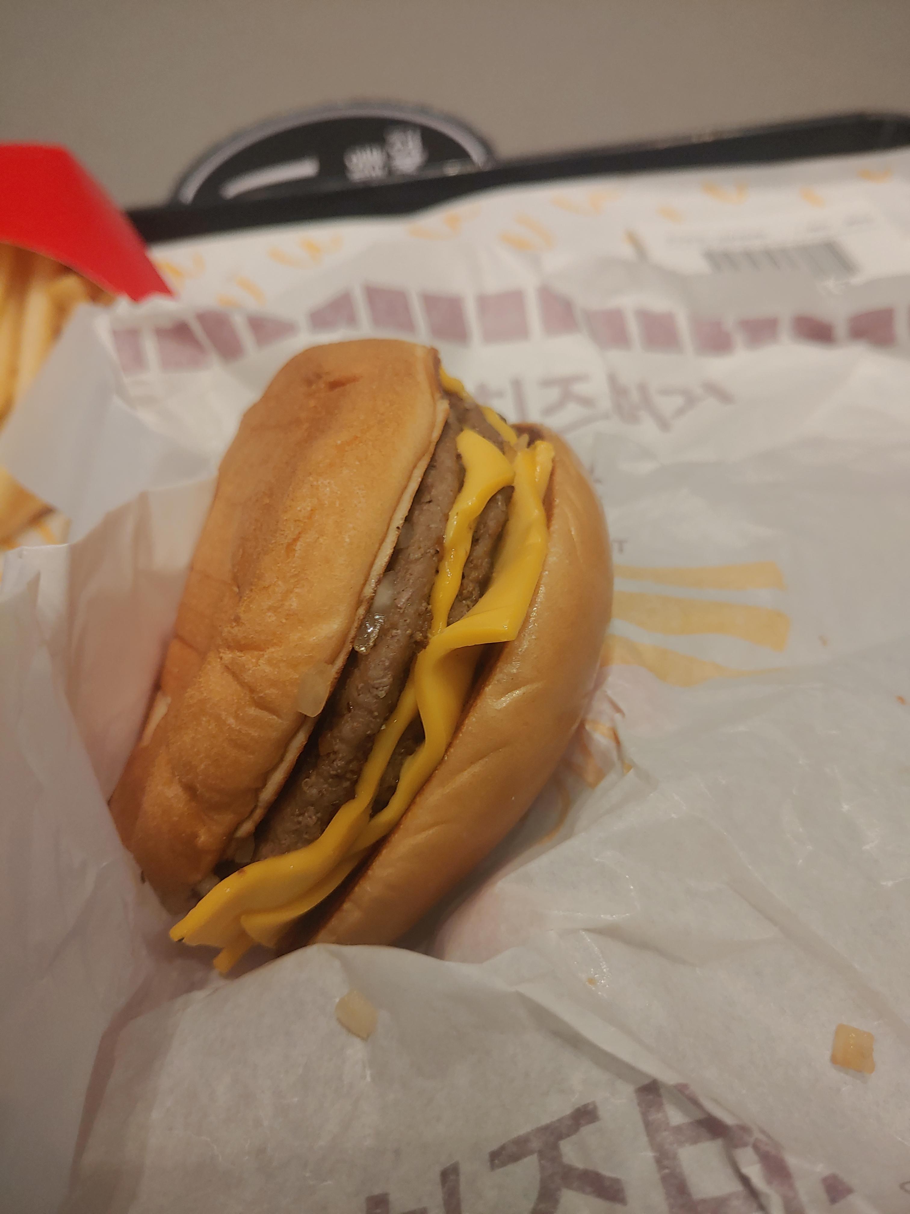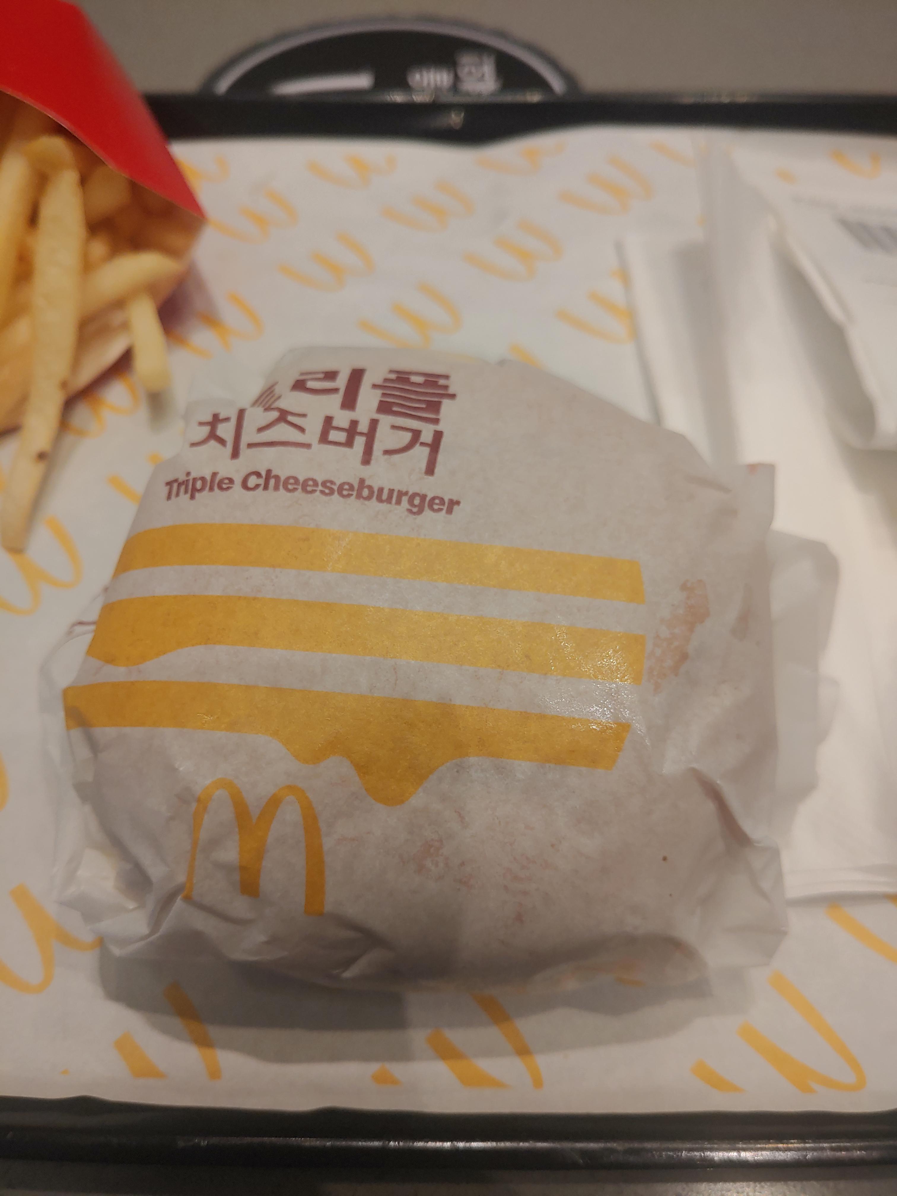 일단 버거가 아닌 맥너겟을 세트로 하는데 5900원이라는 놀라운 가격..... 블로그에 써볼까하고 먹는것 아니면 저것 먹고 배부를일은 없지 않겠어요?? 그래서 신메뉴인 트리플 치즈버거를 주문했어요. 이 치즈버거는 5600원짜리 버거에요.