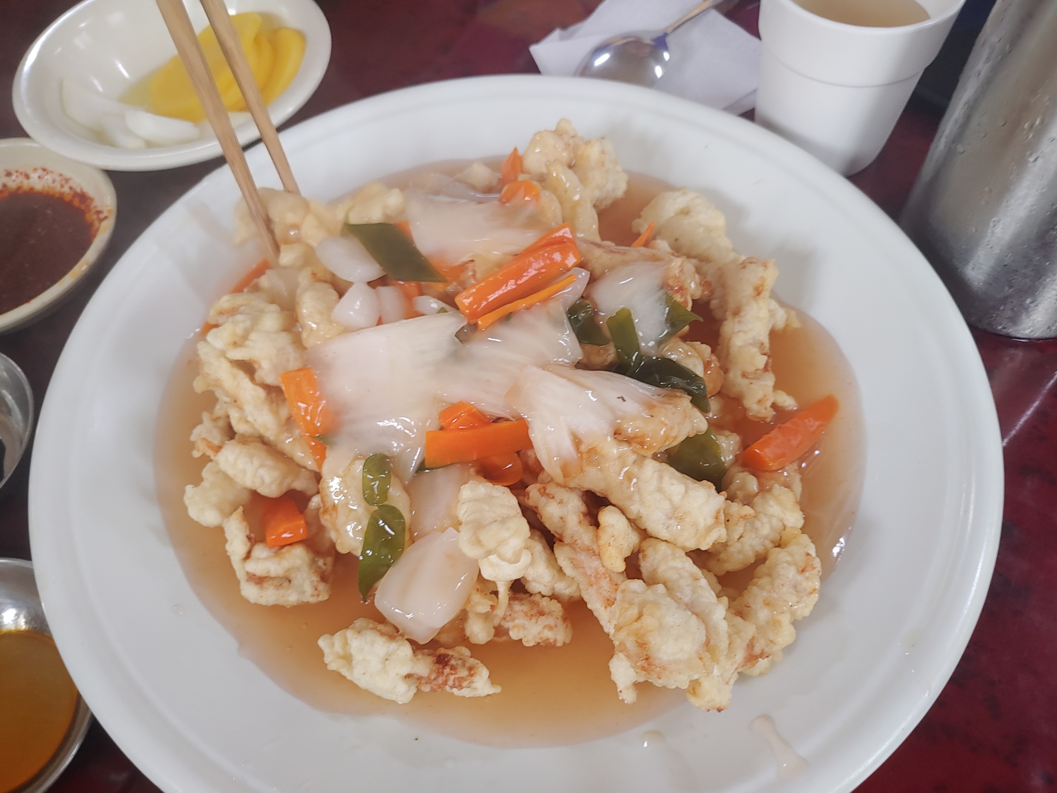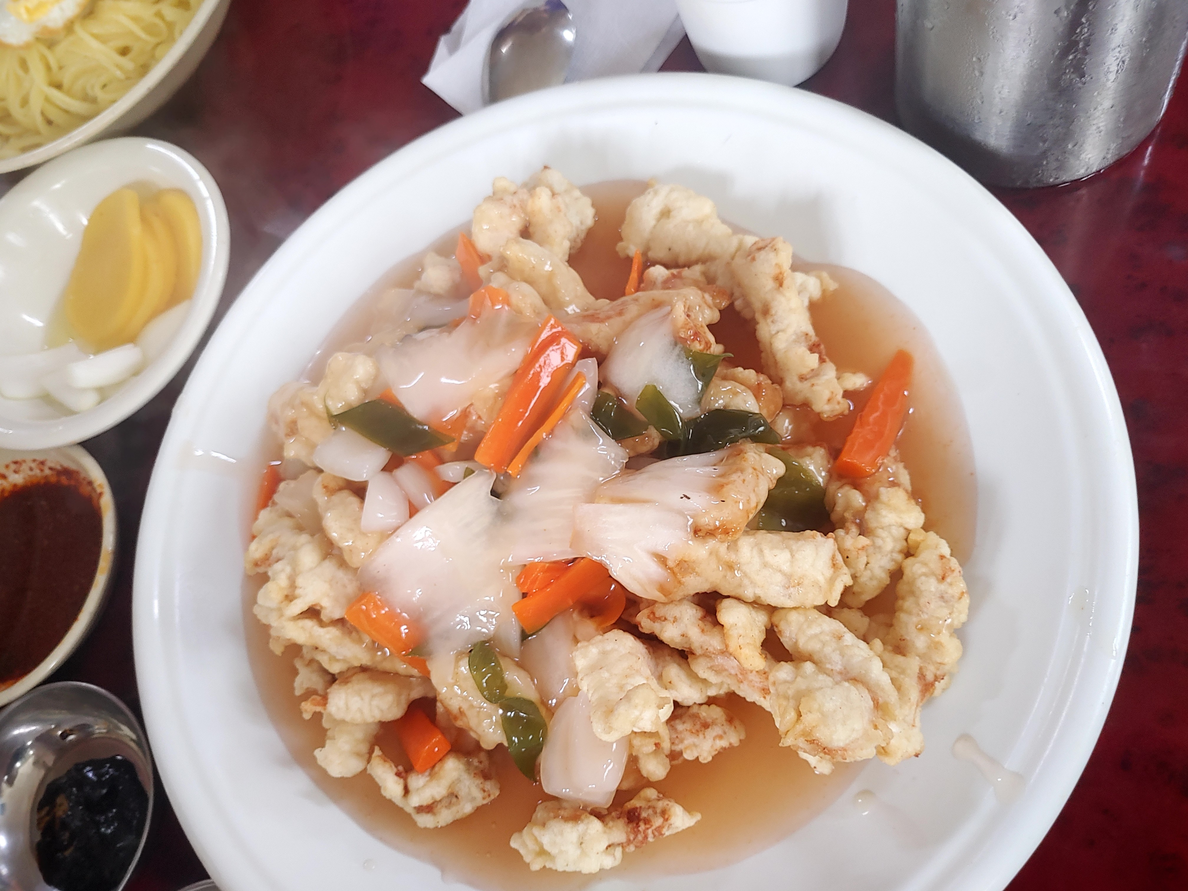 옆집의 미광 중화요리와 비교를 하면, 미광이 참 어린이 입맛에 맞춤이라면 여기는 보통 탕수육들의 깔끔한 맛을 잘 살린 곳 같은데요. 전체적으로 나쁘지는 않은데 개인적인 느낌에는 양이 좀 부족한 느낌이라 아쉽더라구요