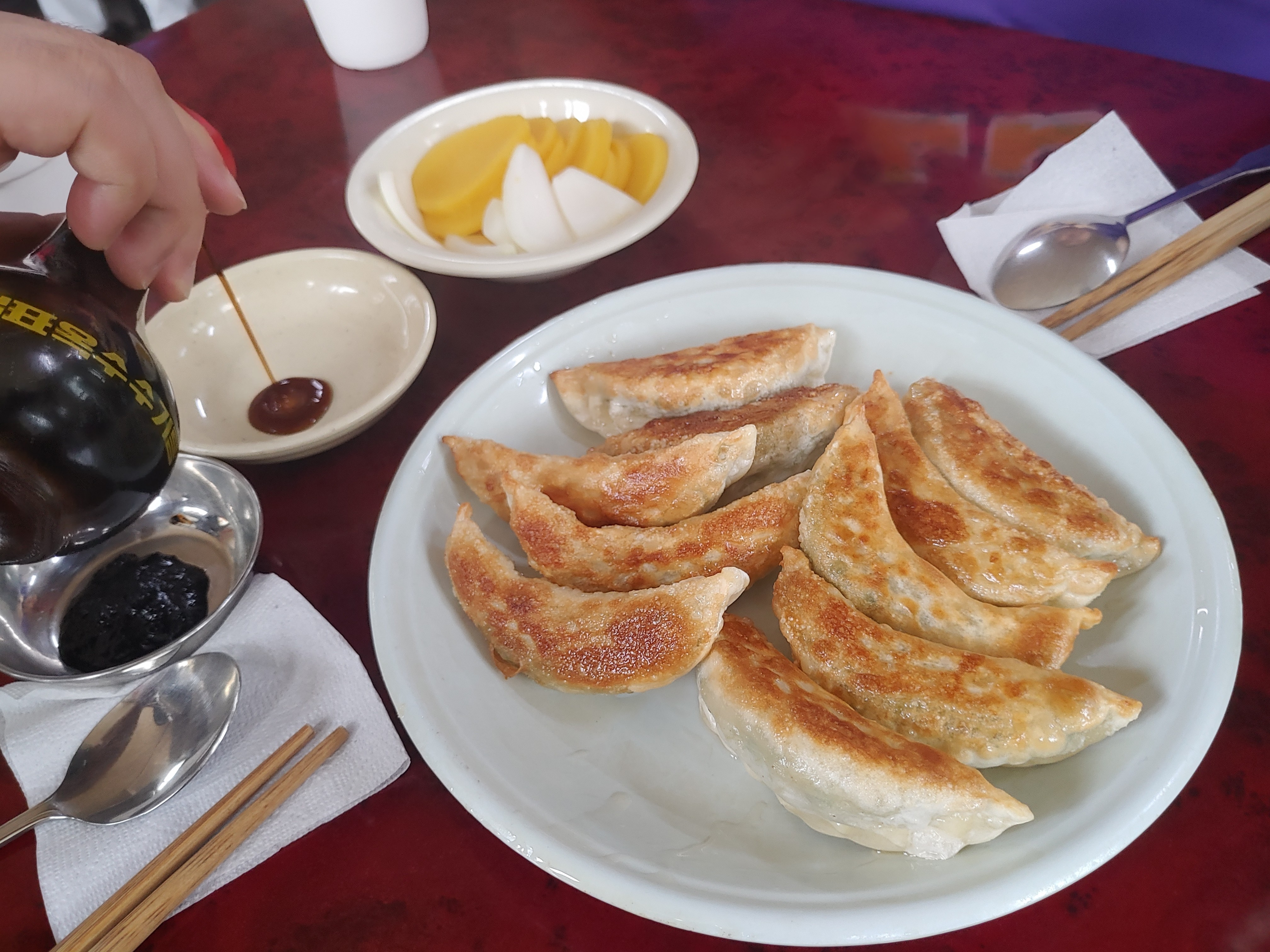 일단 시켰던 군만두!! 는 상당히 맛있었습니다. 군만두는 뭐든 맛있는 편이니까요 전체적으로 잘 구워지고, 바삭하고 속은 촉촉하고 고기와 잘 어우러진 만두피까지 전체적으로 깔끔하고 좋더라구요.