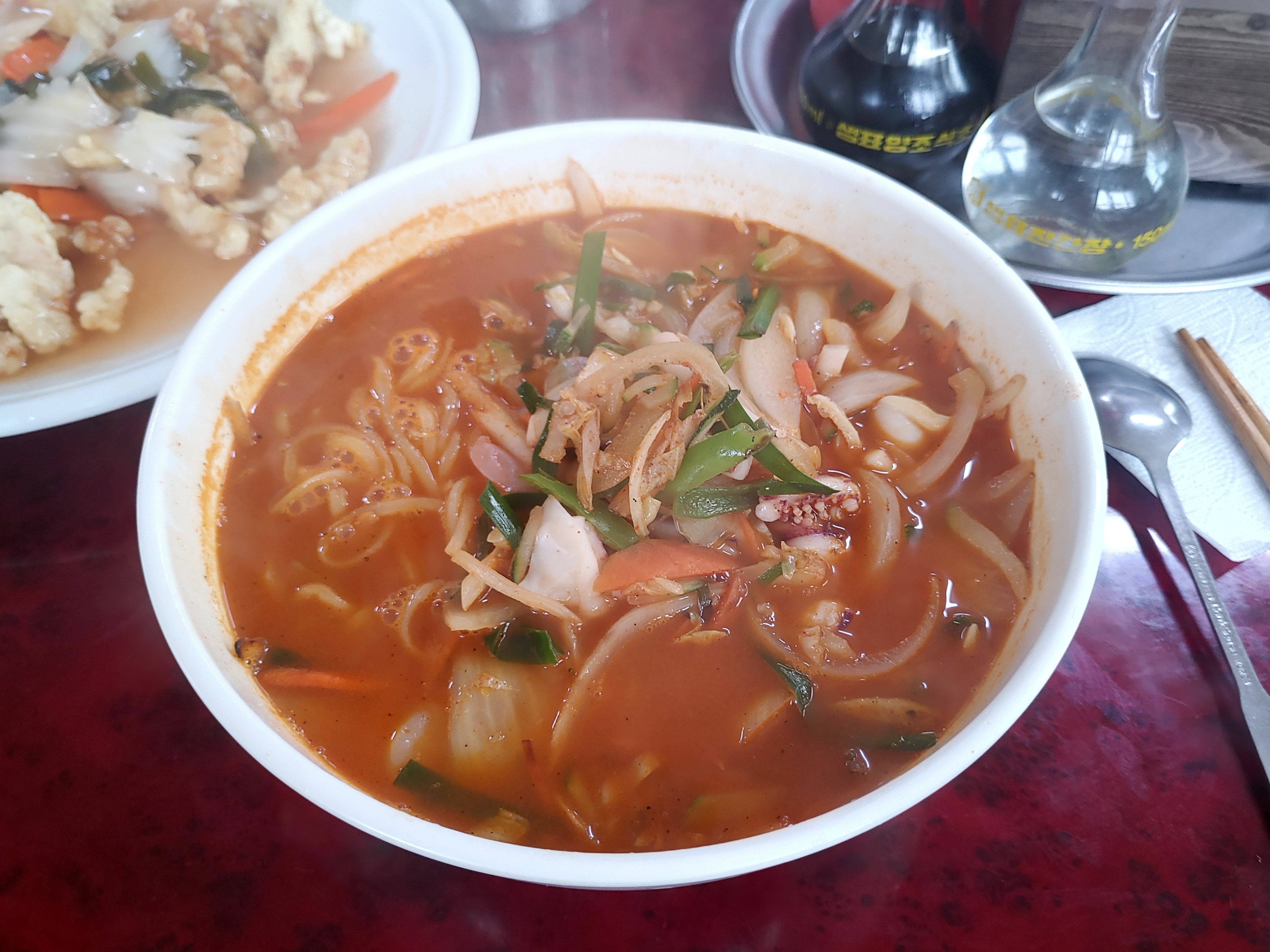 그리고 짬뽕은... 음.. 해물느낌이 강하게 나는 짬뽕인데 개인적으로 저와는 잘 안맞는 짬뽕인것 같았어요. 맛이 없다기 보다는 개인적으로 고기짬뽕 느낌을 좋아하는 편인데, 고기느낌이 전혀없는 해물짬뽕느낌이더라구요.