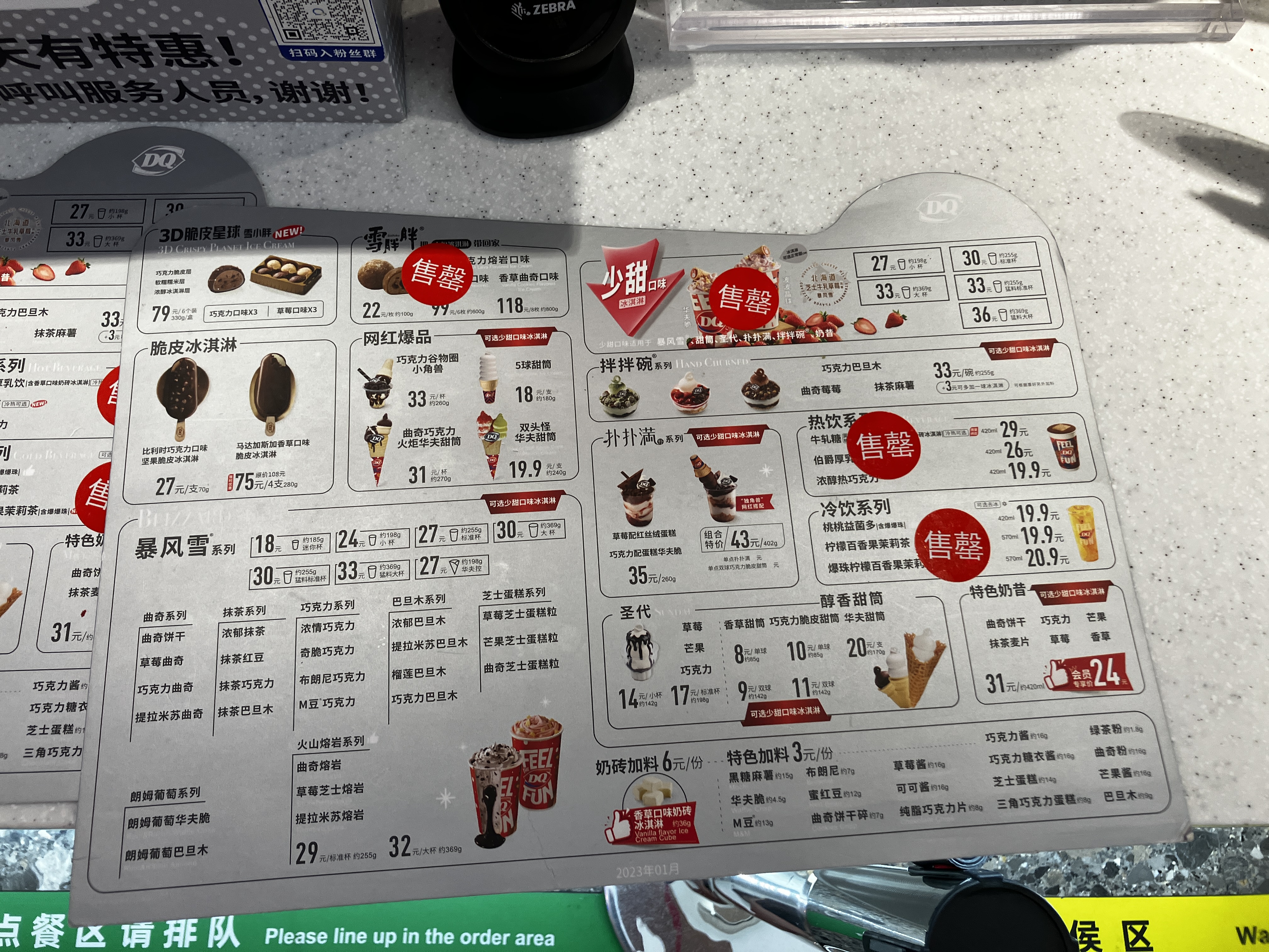 이곳 매장은 주하이에 있는 쇼핑몰에 있는 DQ인데요. 매장이 작은데도 알차게 많은 것들이 있어요. 주하이에는 DQ 매장이 번화가 이곳저곳 꽤 있는 편이에요. 아이스크림 케이크도 있고 달달한 다양한 종류의 아이스크림들을 만날 수 있는 곳이기도 합니다.