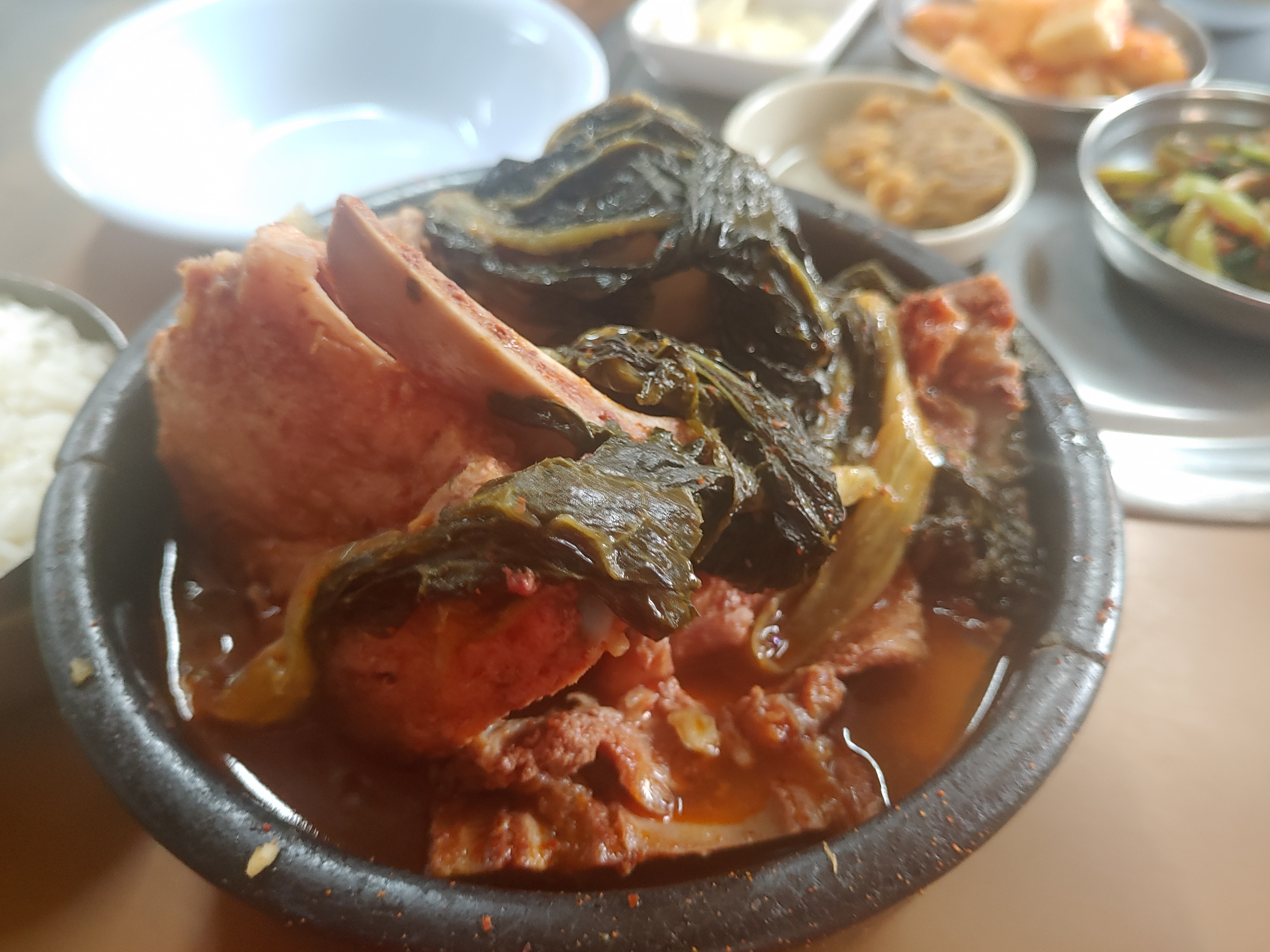 그리고 위에는 시래기가 있는데, 이 시래기가 또 뼈해장국을 더 맛있게 해주는 것이라는 생각이 들어요.