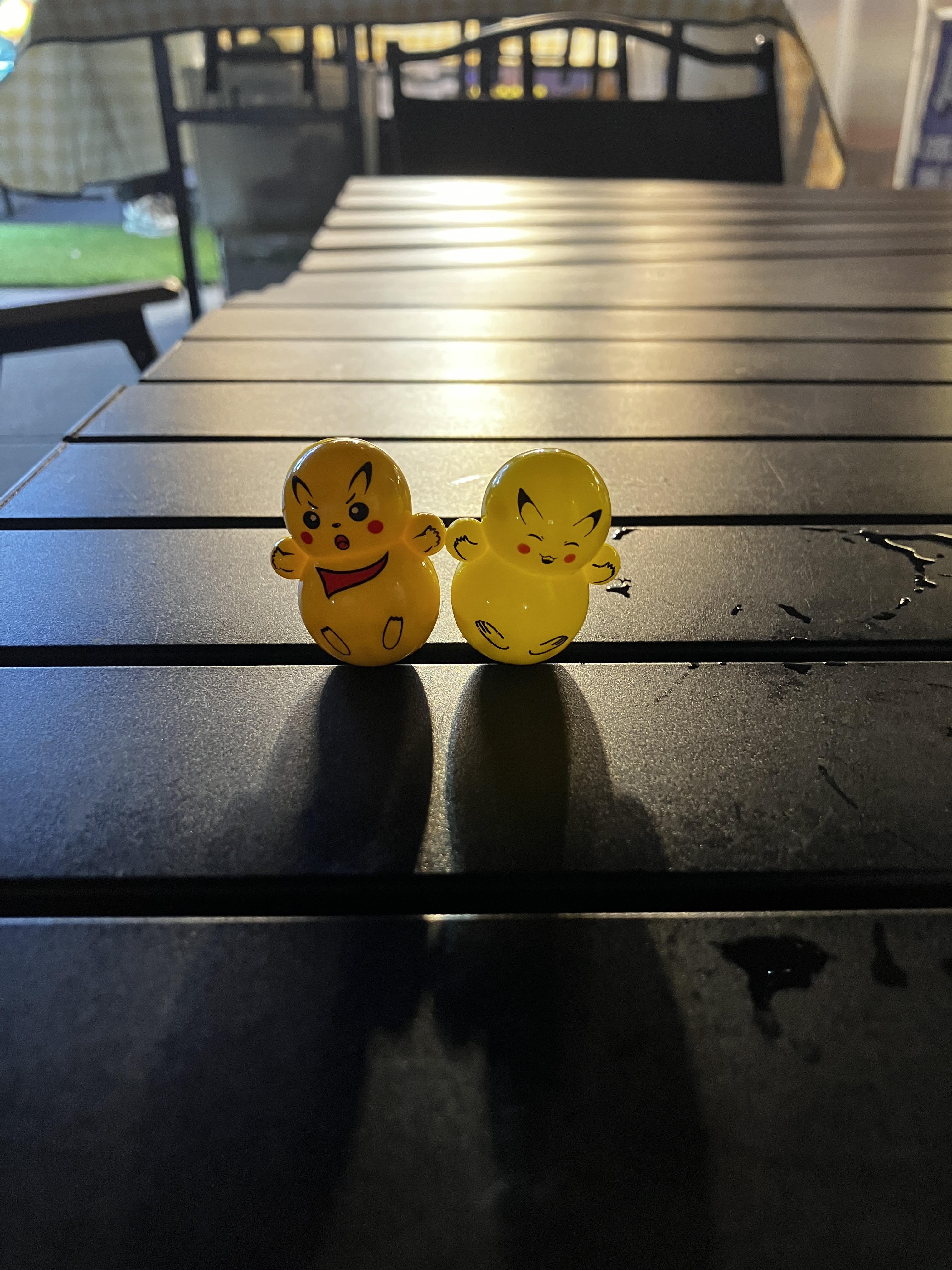 오뚜기 인형이라서 그런지 안쪽 바닥에 약간 무게감이 있어서 툭툭치면 뺑글뻉글 돌다가 다시 원상태로 오뚜기처럼 돌아오는 그런 작은 인형이었습니다. 작아서 그런지 굉장히 귀엽고 하더라구요. 옆에 친구와 함께 이렇게 인형 2개를 모아보니까 더 귀여웠습니다.