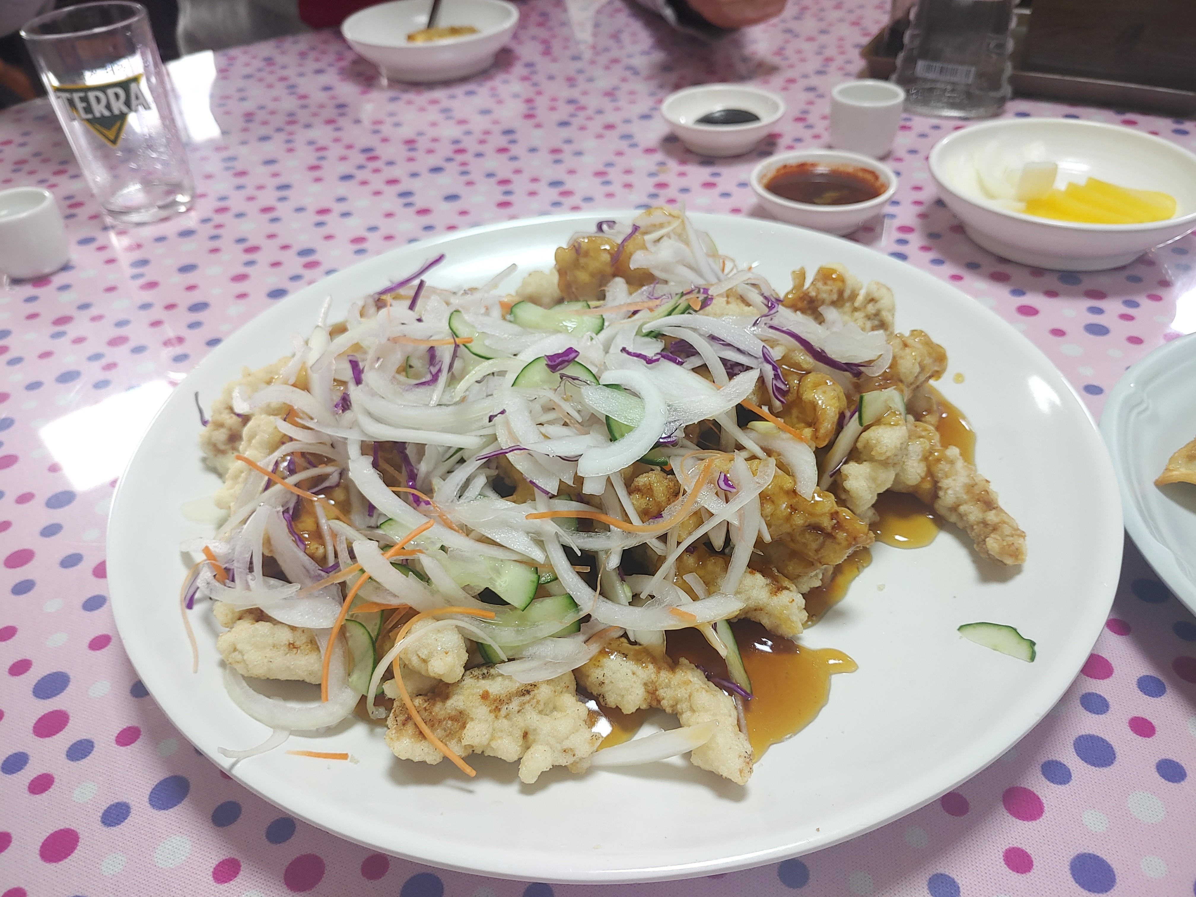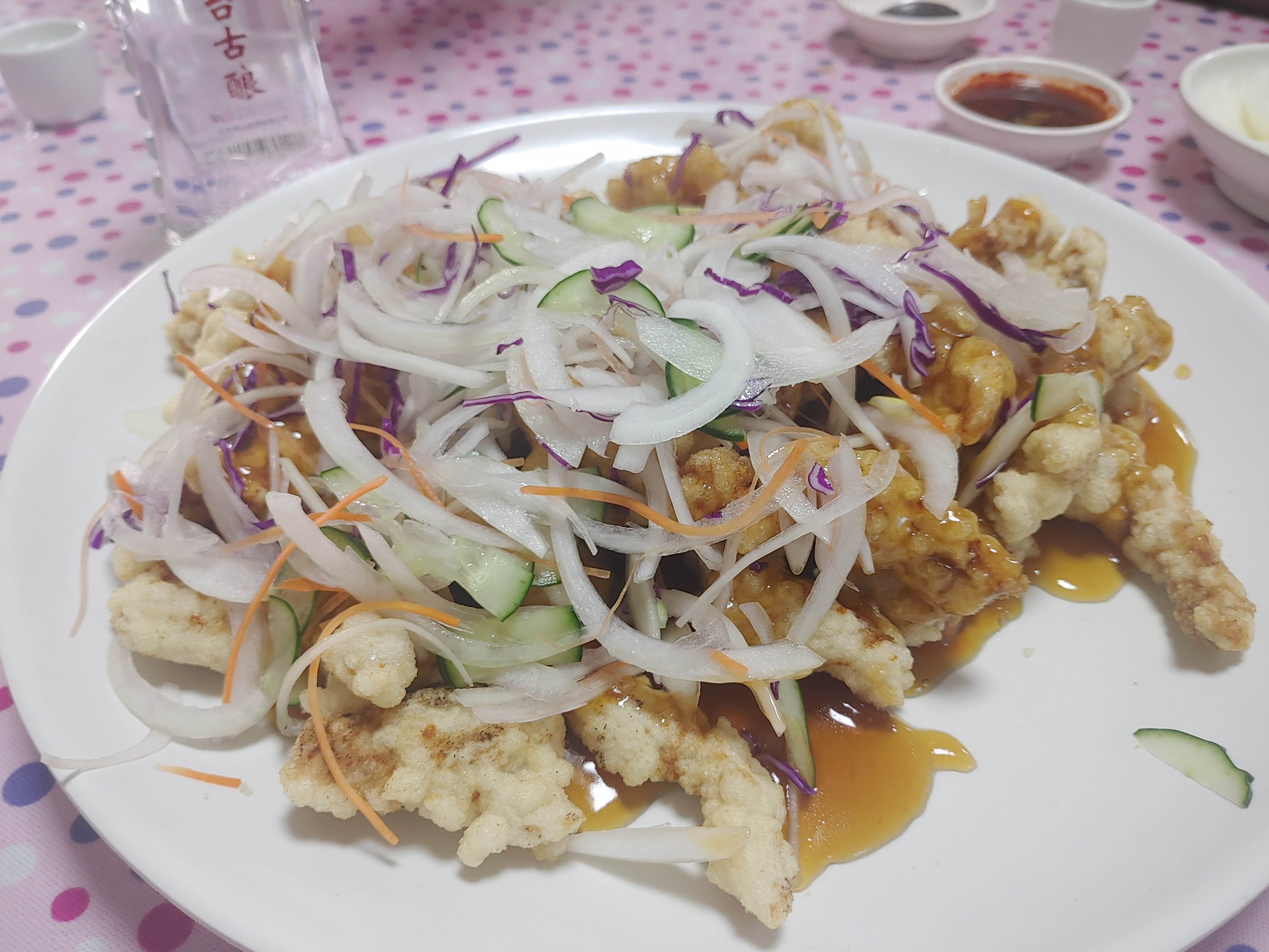 오랜만에 모여서 탕수육에 술한잔 ㅎㅎ 사실 탕수육이 찍먹이냐 부먹이냐를 구분하고 먹지는 않지만, 부먹파가 아니라 찍먹파이신분들도 여기 오셔서 이 탕수육의 바삭함에 뭐라고 하신 분들이 없을 정도로 굉장히 깔끔해요 !!